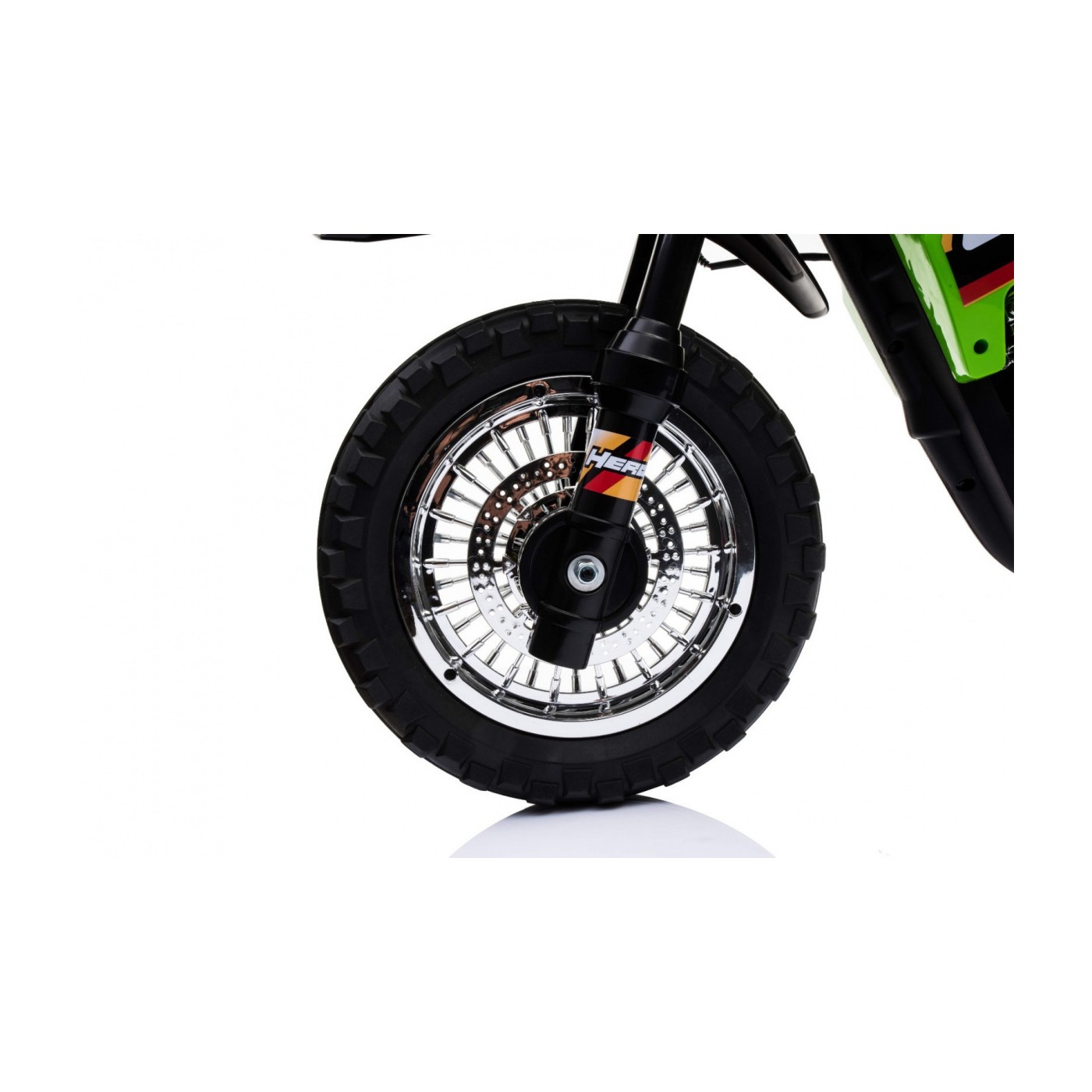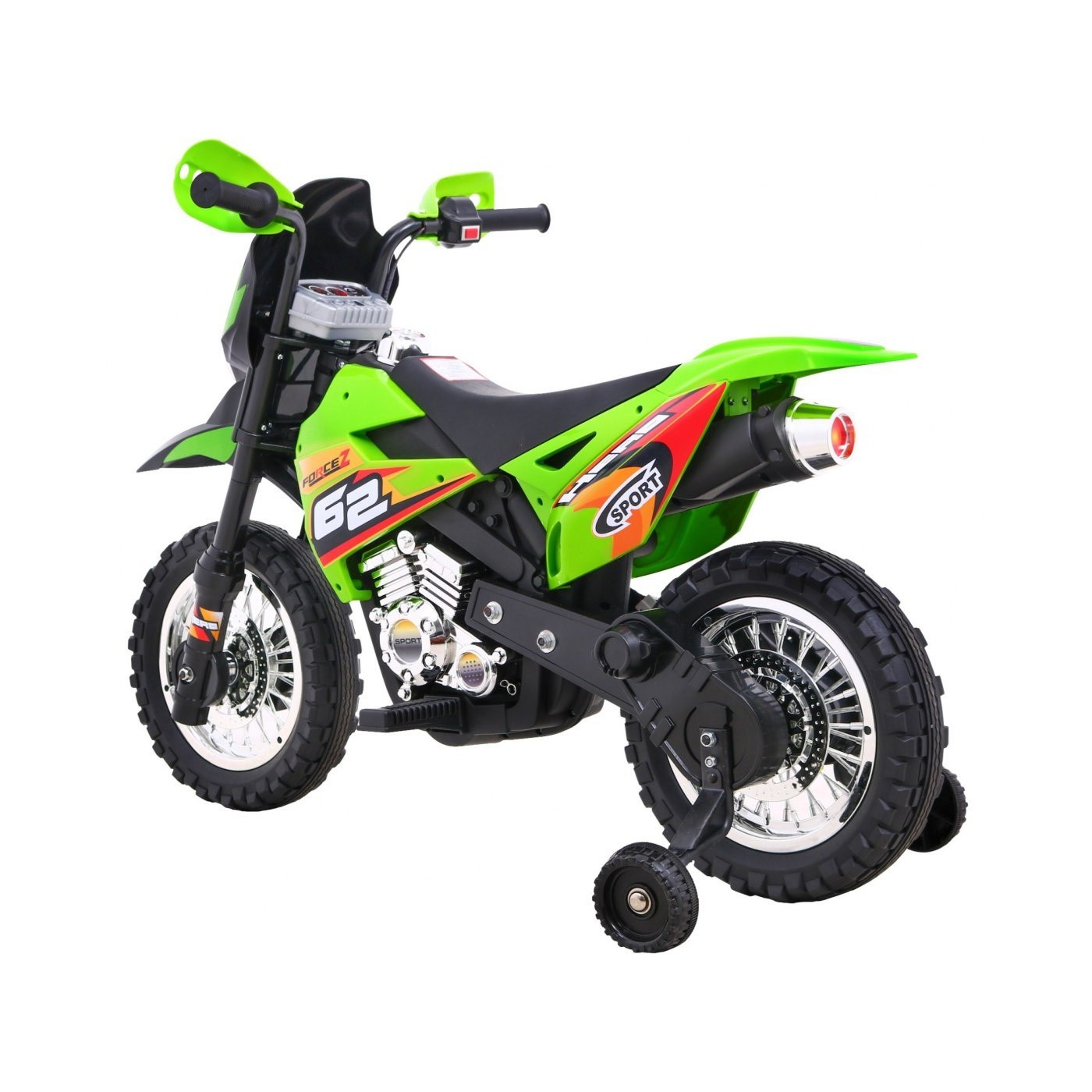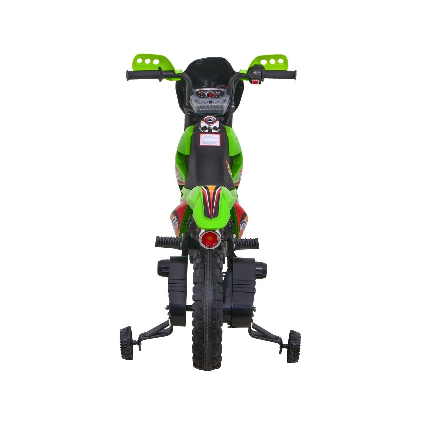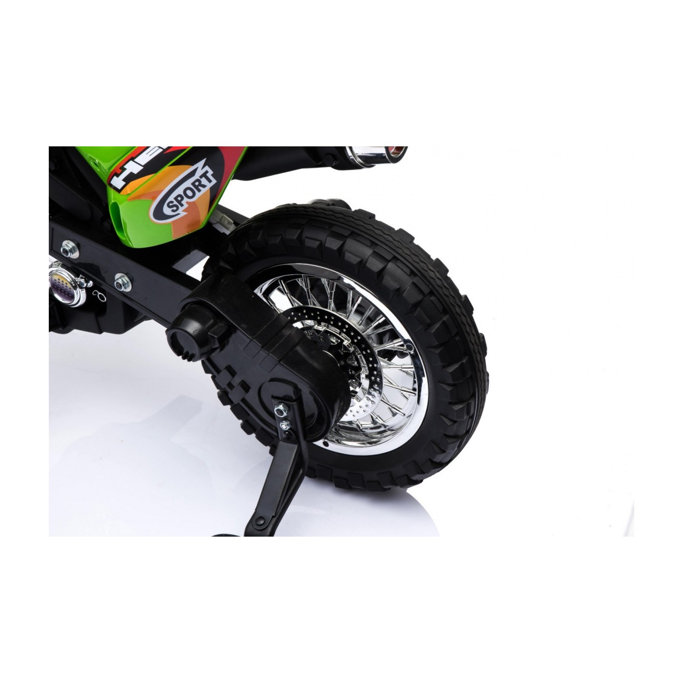 Motorka Cross pre deti Vozidlo na batériu Zelený + Pomocné kolesá + Zvuky LED
