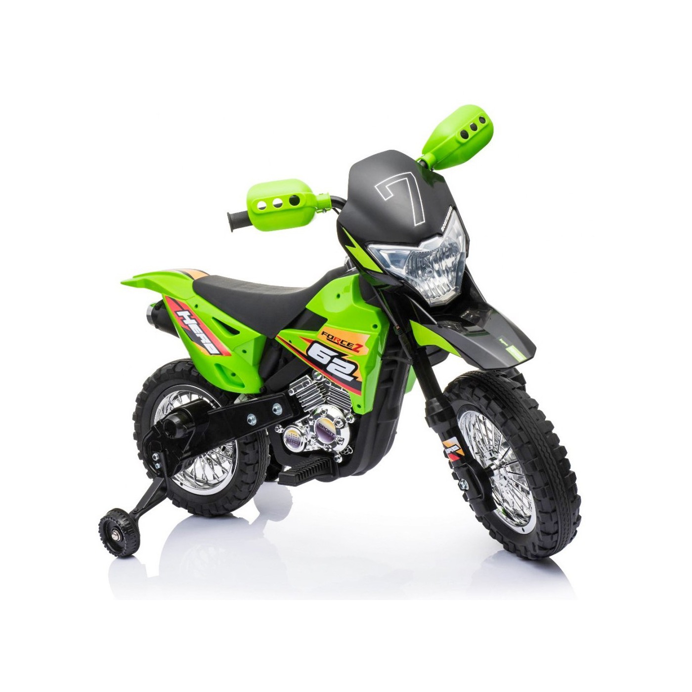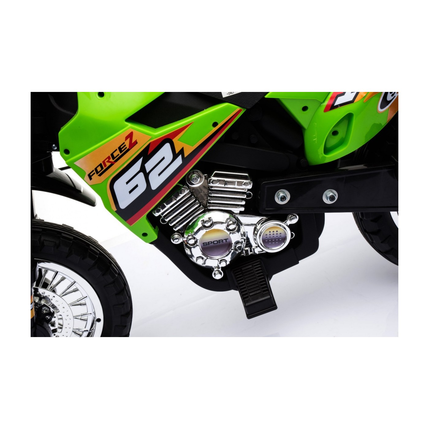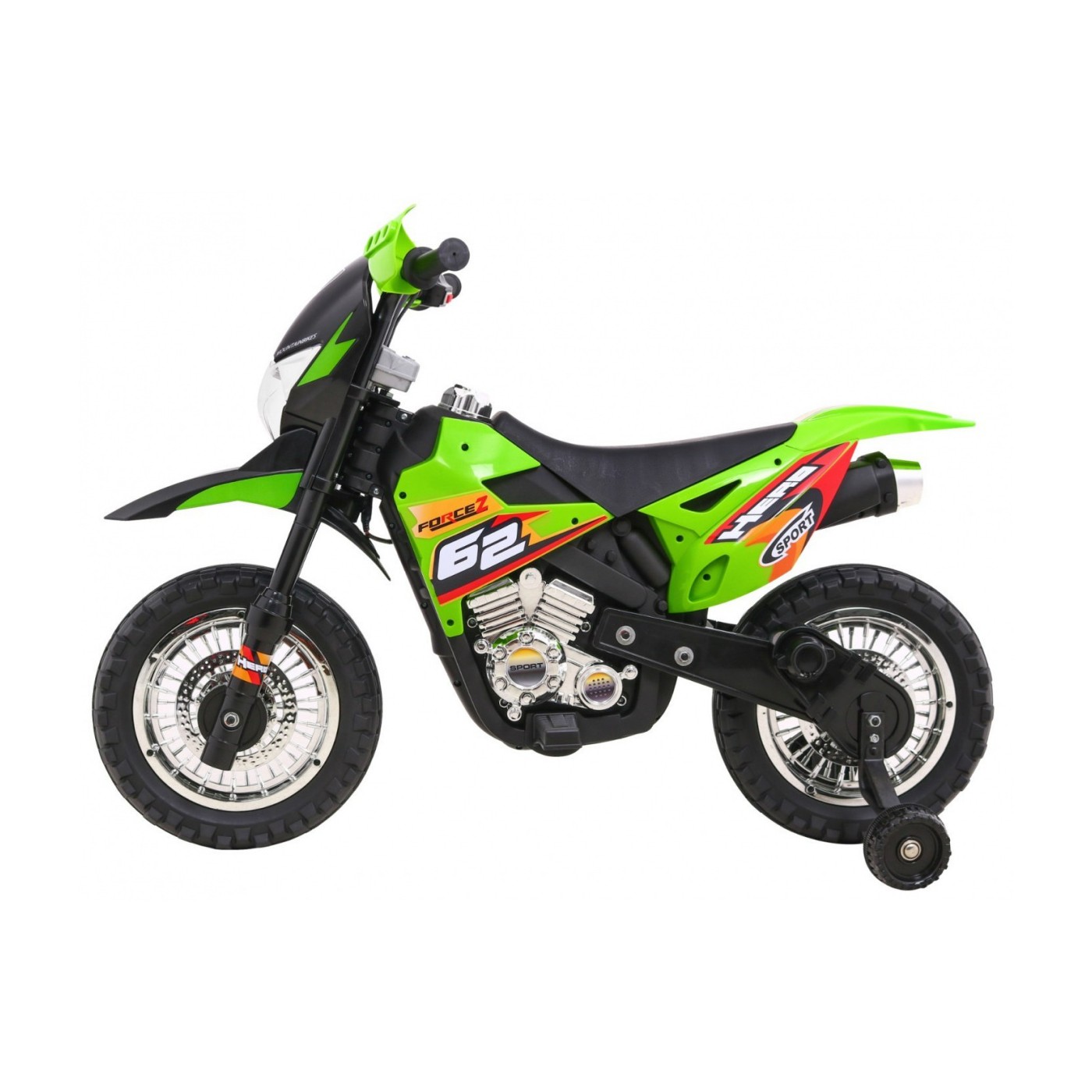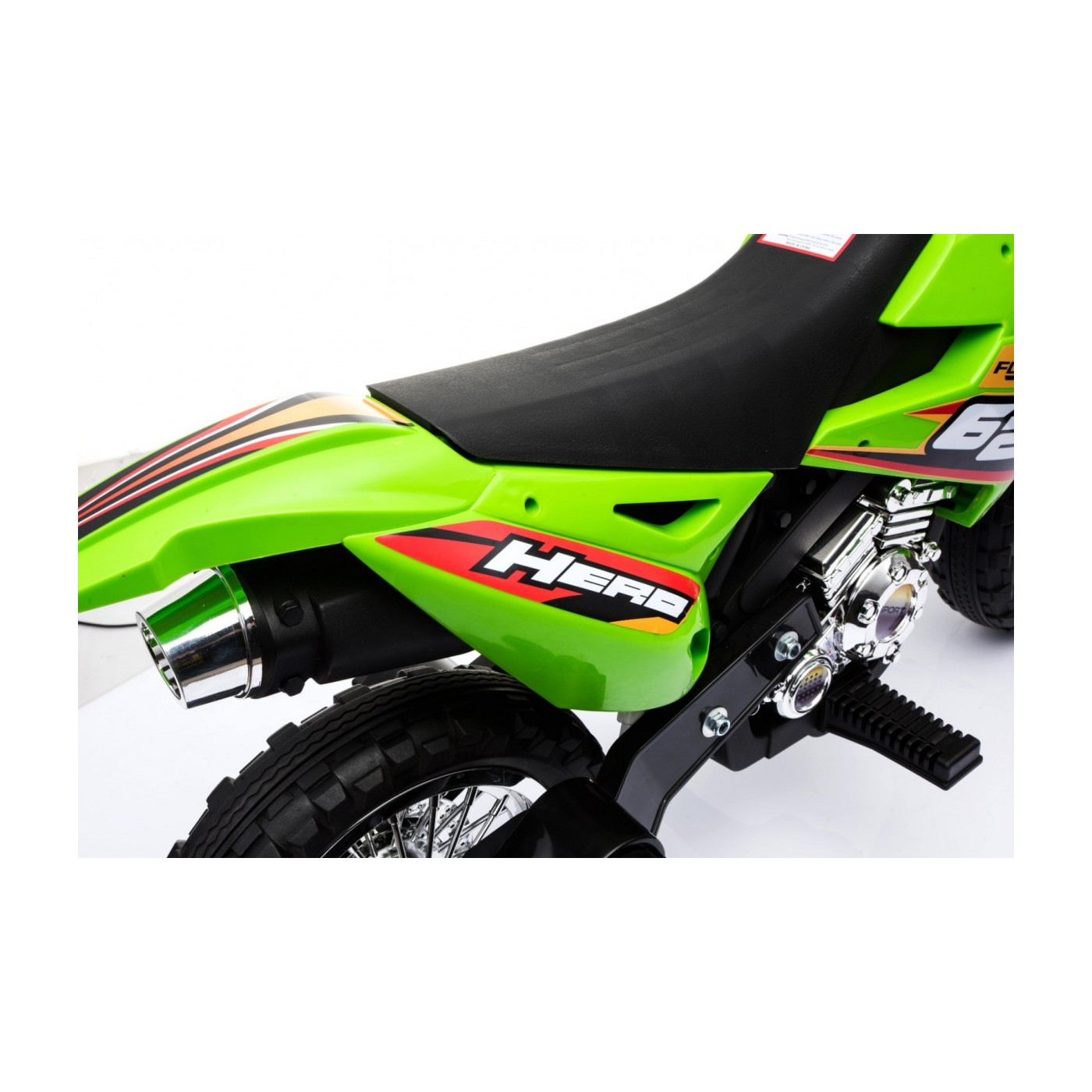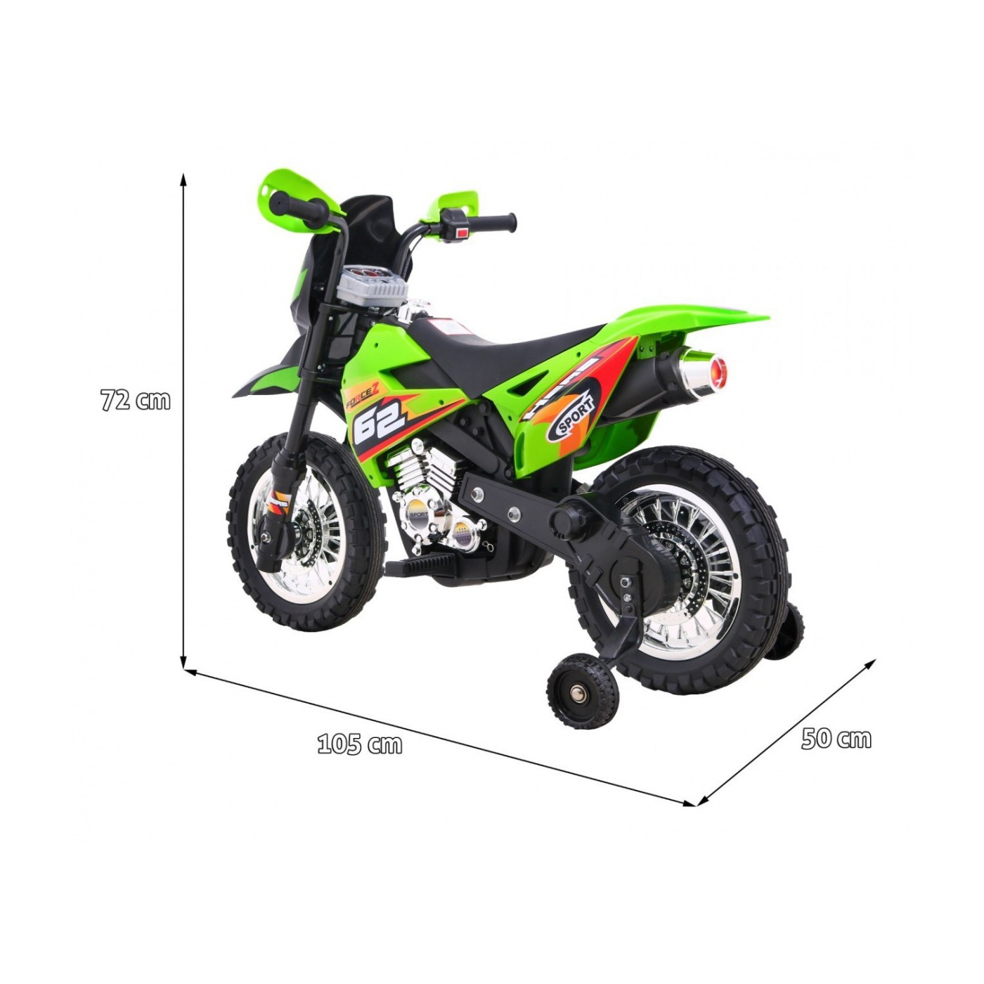 Motorka Cross pre deti Vozidlo na batériu Zelený + Pomocné kolesá + Zvuky LED