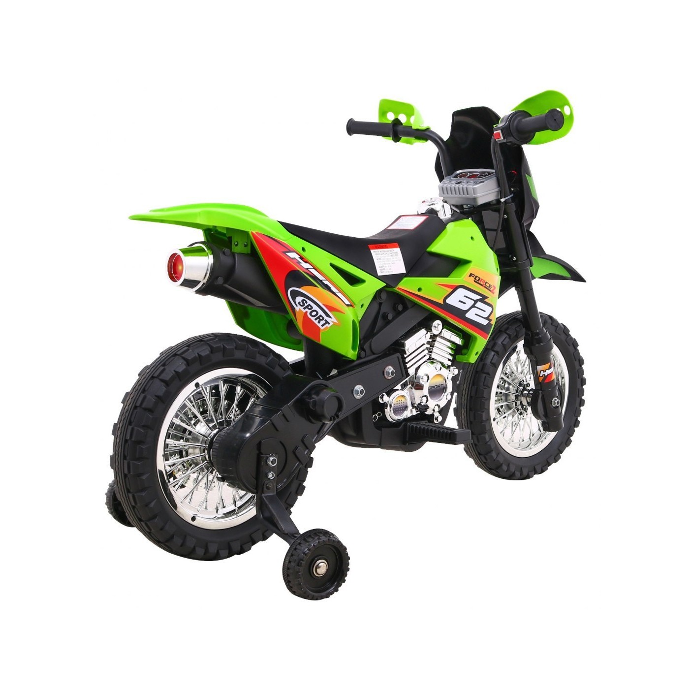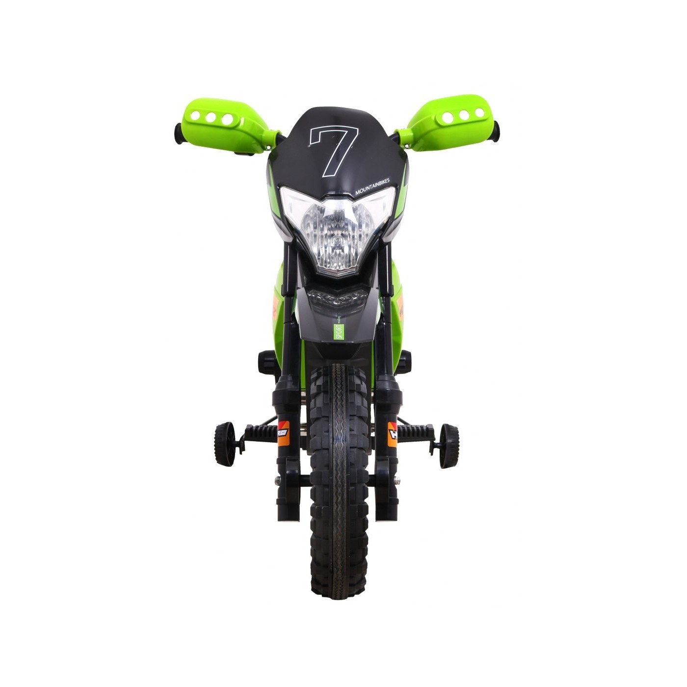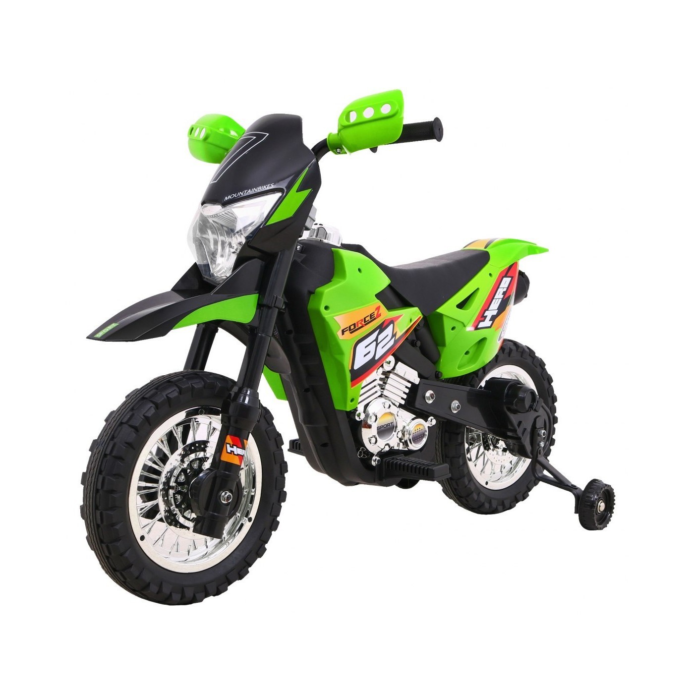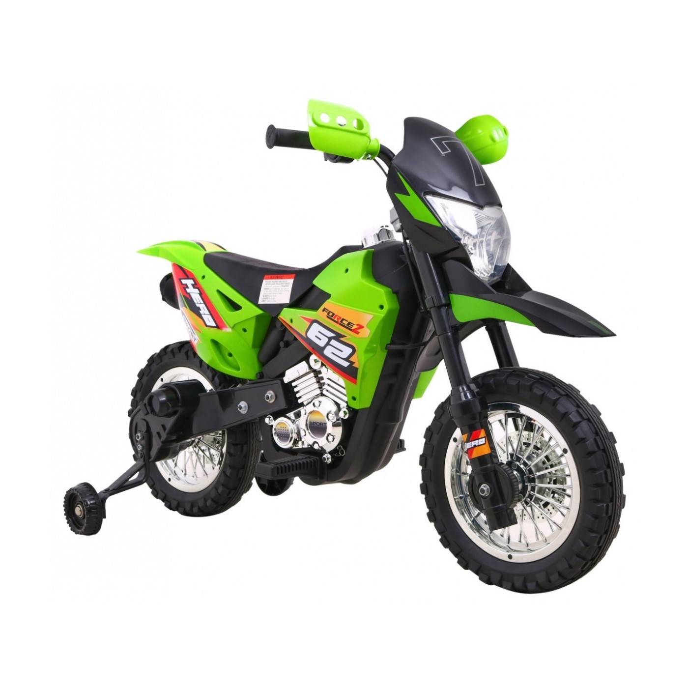 Motorka Cross pre deti Vozidlo na batériu Zelený + Pomocné kolesá + Zvuky LED