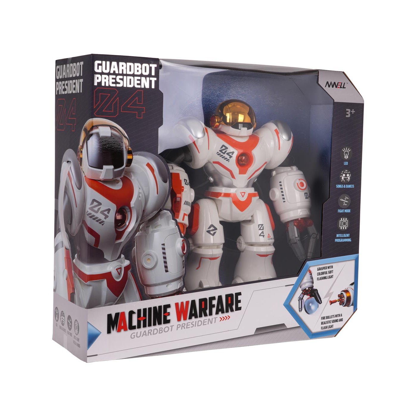 Diaľkovo ovládaný robot s interaktívnymi funkciami. Hračka je určená pre deti od 3 rokov. Robot je vyrobený z kvalitného plastu a je pre deti úplne bezpečný. Robot sa ovláda pomocou RC diaľkového ovládača, ktorý je súčasťou súpravy. Robot pri hraní hýbe rukami a nohami, vydáva zvuky a má osvetlené ruky.