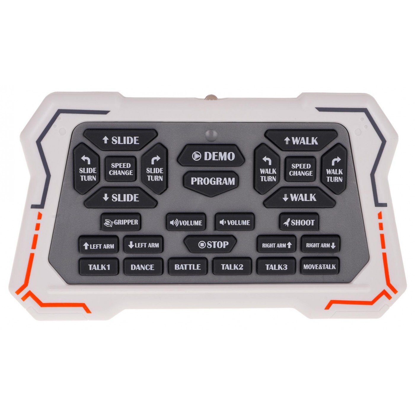 Robot má na ľavej ruke pohyblivé kliešte a na pravej ruke fungujúce vystreľovače šípok. Sada obsahuje 5 šípok s bezpečnou gumenou špičkou. Funkcie robota zahŕňajú jazdu, chôdzu, DEMO režim, tanec, hovorenie v jazyku robota a možnosť naprogramovať pohyby robota do personalizovaného systému. Hlasitosť hračky môžete nastaviť aj na diaľkovom ovládači. Robot je napájaný 3,7V batériou (súčasťou balenia), diaľkové ovládanie je napájané 2 x AA 1,5V batériami (nie sú súčasťou).