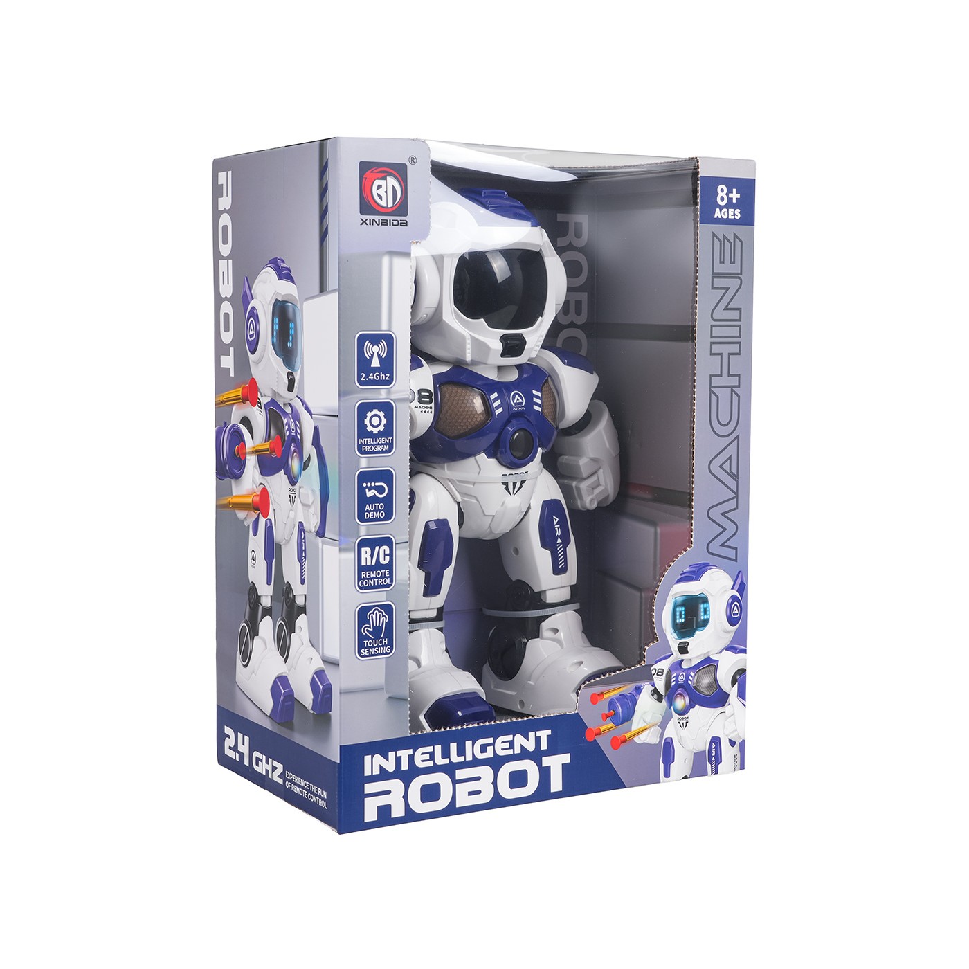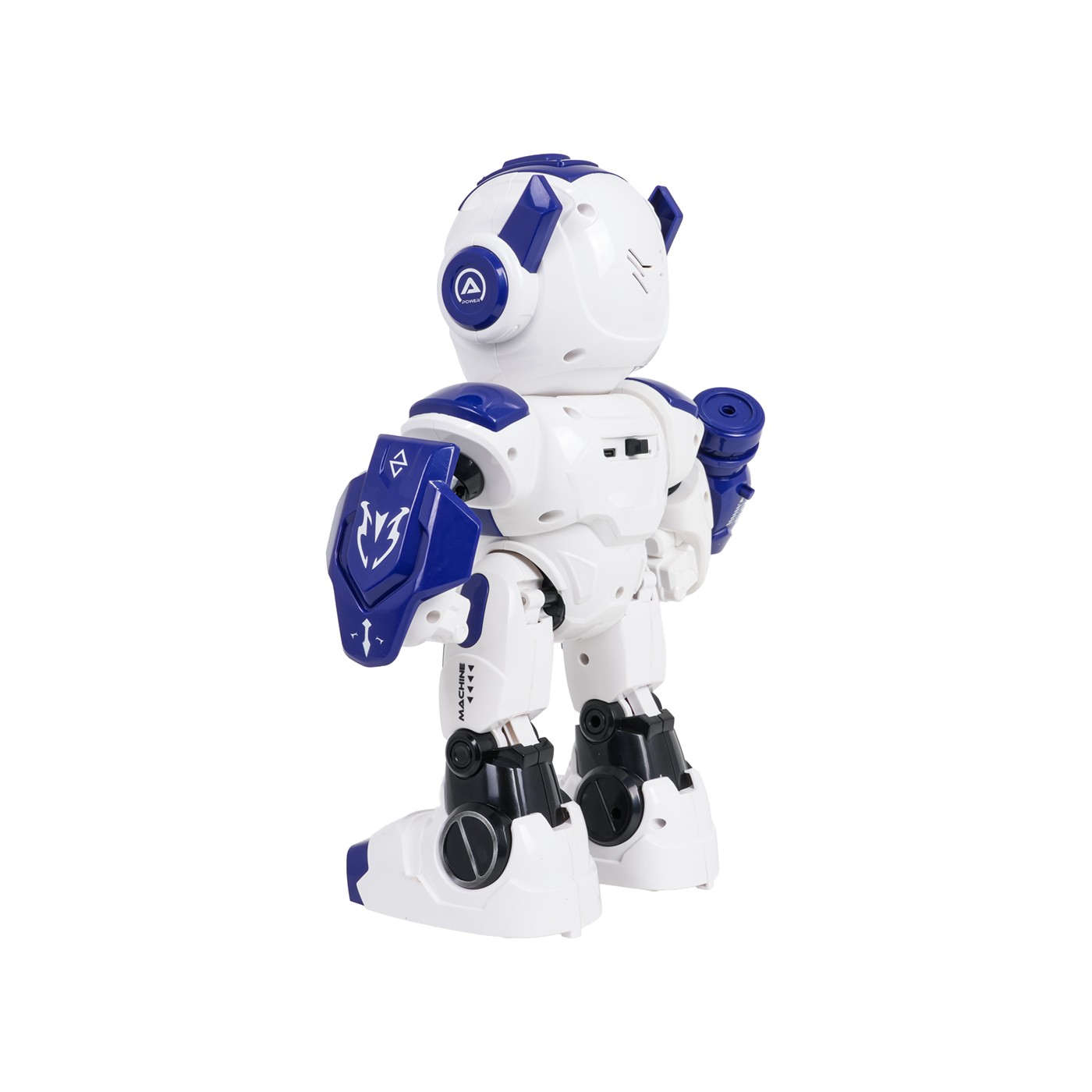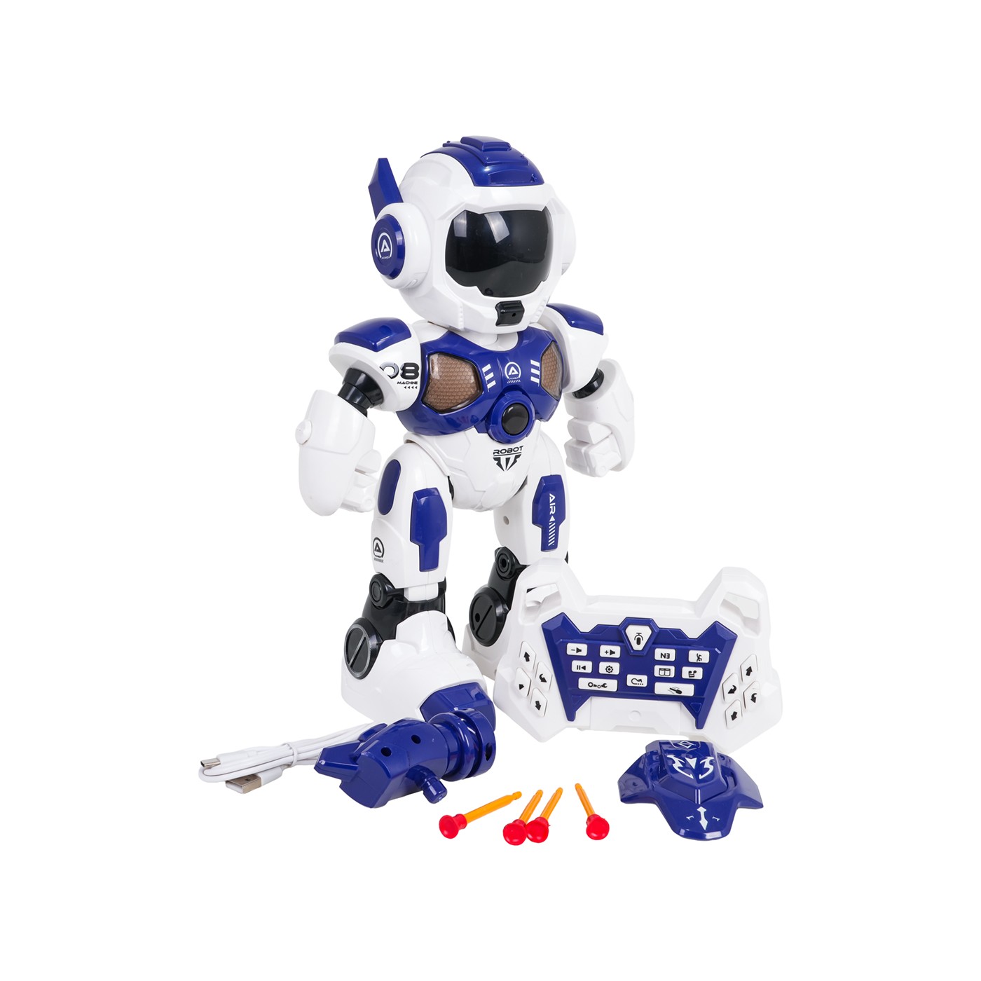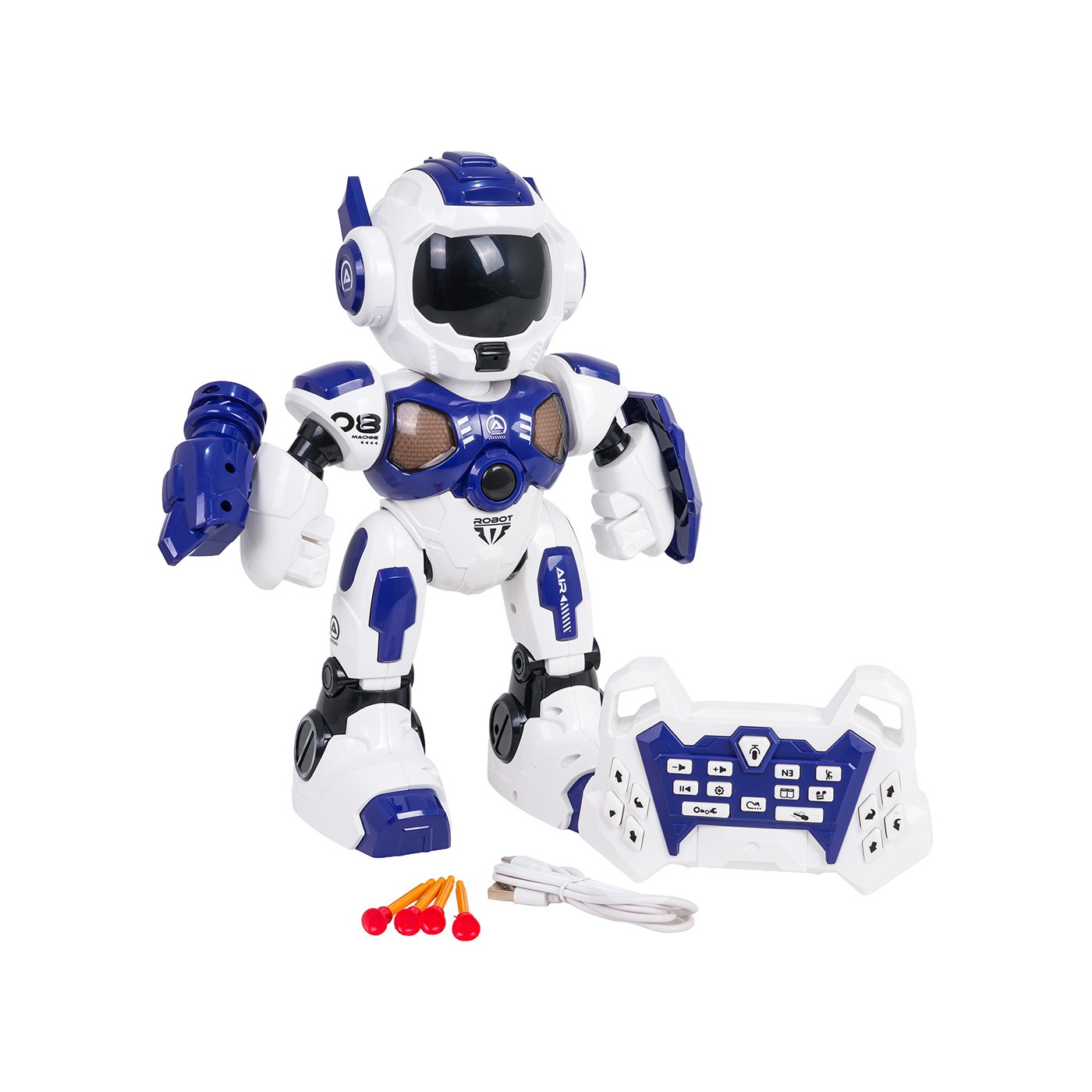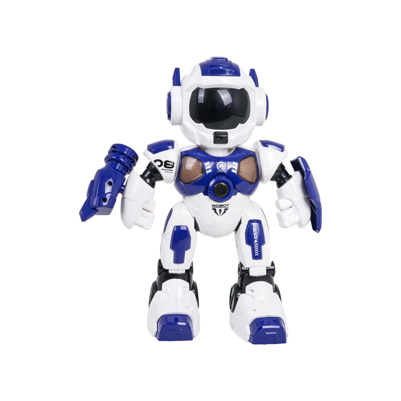 Vlastnosti: - pre deti od ôsmich rokov, - vyrobené z najkvalitnejšieho plastu, - svietiace oči a gombík na bruchu, - dotykový senzor hlavy robota, - demo režim, - každú minútu sa objaví povel na pohotovosť, - pohybuje sa dopredu a dozadu, otáča sa doprava a doľava, - tanec, - hýbe ramenami, - strieľa projektily pomocou prísaviek (manuálne, stlačte tlačidlo na ramene), - môžeme z rúk odstrániť strelecké chrániče a štít, - hrá melódie (5 hudobných skladieb), - rozpráva príbehy (5 príbehov), - programovací režim, - zvuky streľby, - pri streľbe sa zakloní dozadu, - ovládanie hlasitosti, - diaľkovo ovládané 2,4 GHz, - perfektná hračka ako darček. |