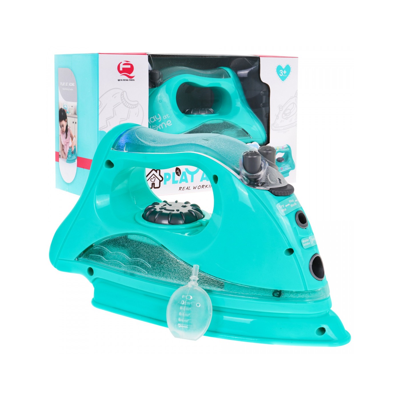 | Żelazko z efektami dźwięku, światła i pary to propozycja dla dzieci od 3-go roku życia. Zabawka posiada podświetlaną rączkę oraz pojemnik na wodę. Należy z pojemniczka wlać kilka kropel wody do żelazka (przód żelazka, mniejszy otwór). Po naciśnięciu i przytrzymaniu guzika pary, z przodu żelazka będzie wydobywać się para i słychać będzie dźwięk charakterystyczny dla tej czynności. Para jest bezpieczna dla dziecka ponieważ jest zimna. Jeżeli naciśniemy guzik spryskiwaczy, żelazko wyda odgłos spryskiwania. Zabawka oddaje realistyczny wygląd żelazka, Twoja pociecha poczuje się jakby naprawdę prasowała. Model zasilany jest bateriami typu 3 x 1,5 V AA, których brak w zestawie. | |