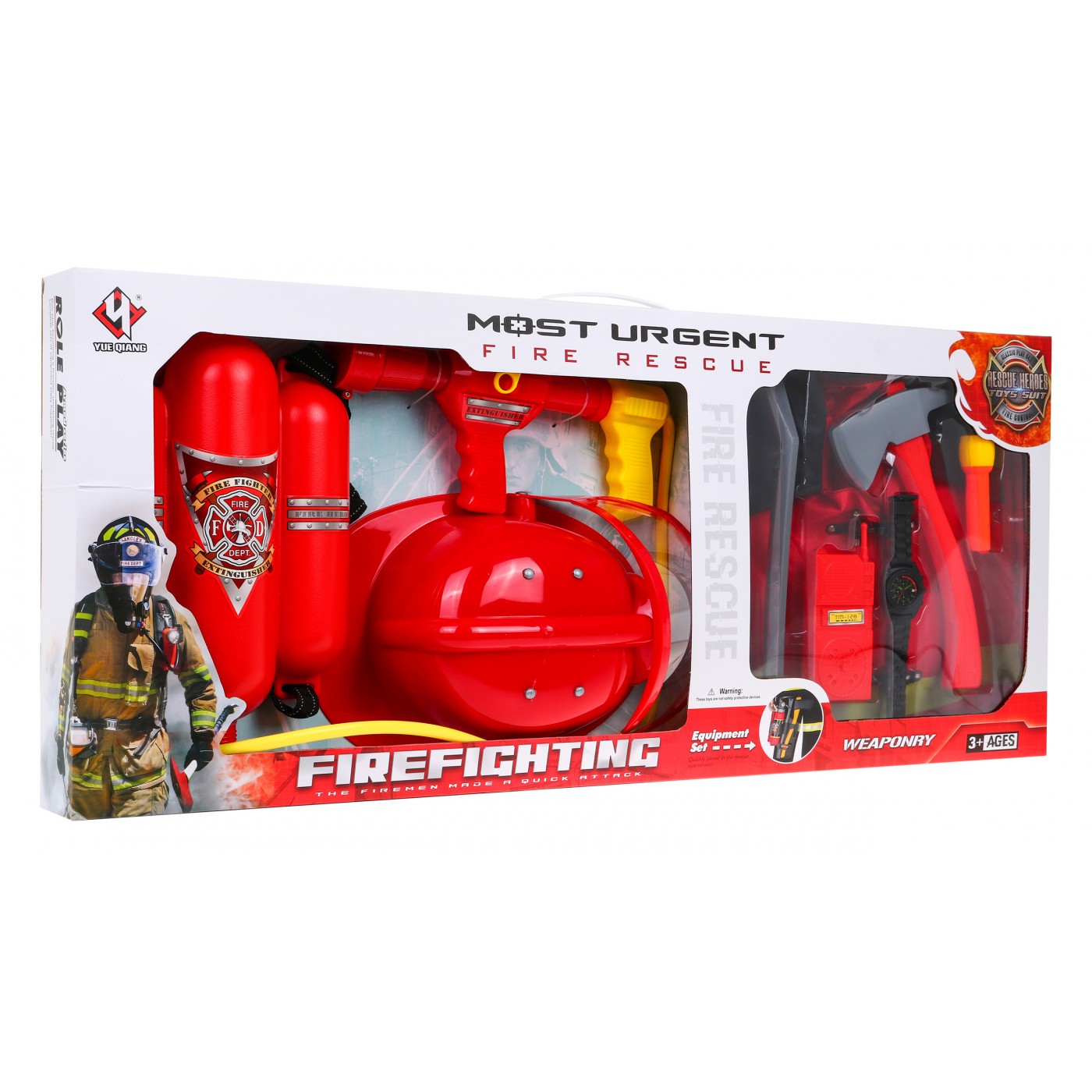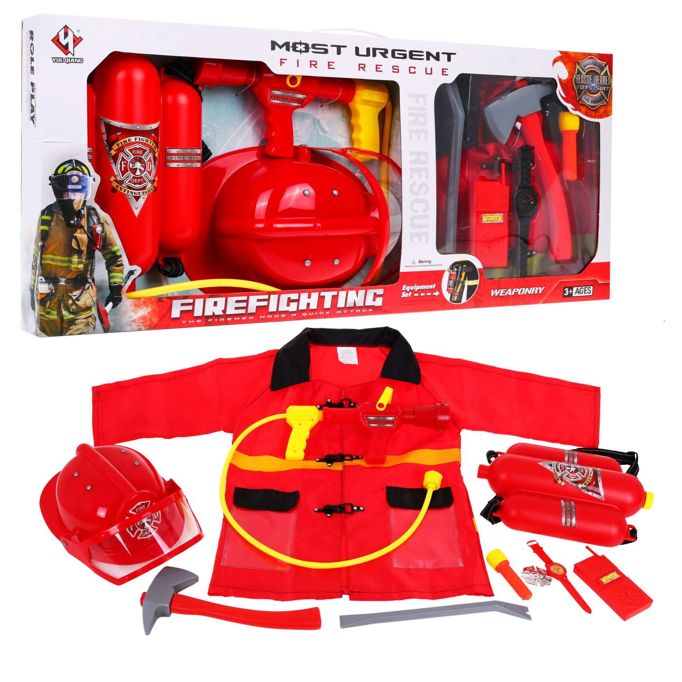 Veľká sada Hasiča 10 el. pre deti 3+ Oblek + Prilba + Hasičský prístroj + Vysielačka
