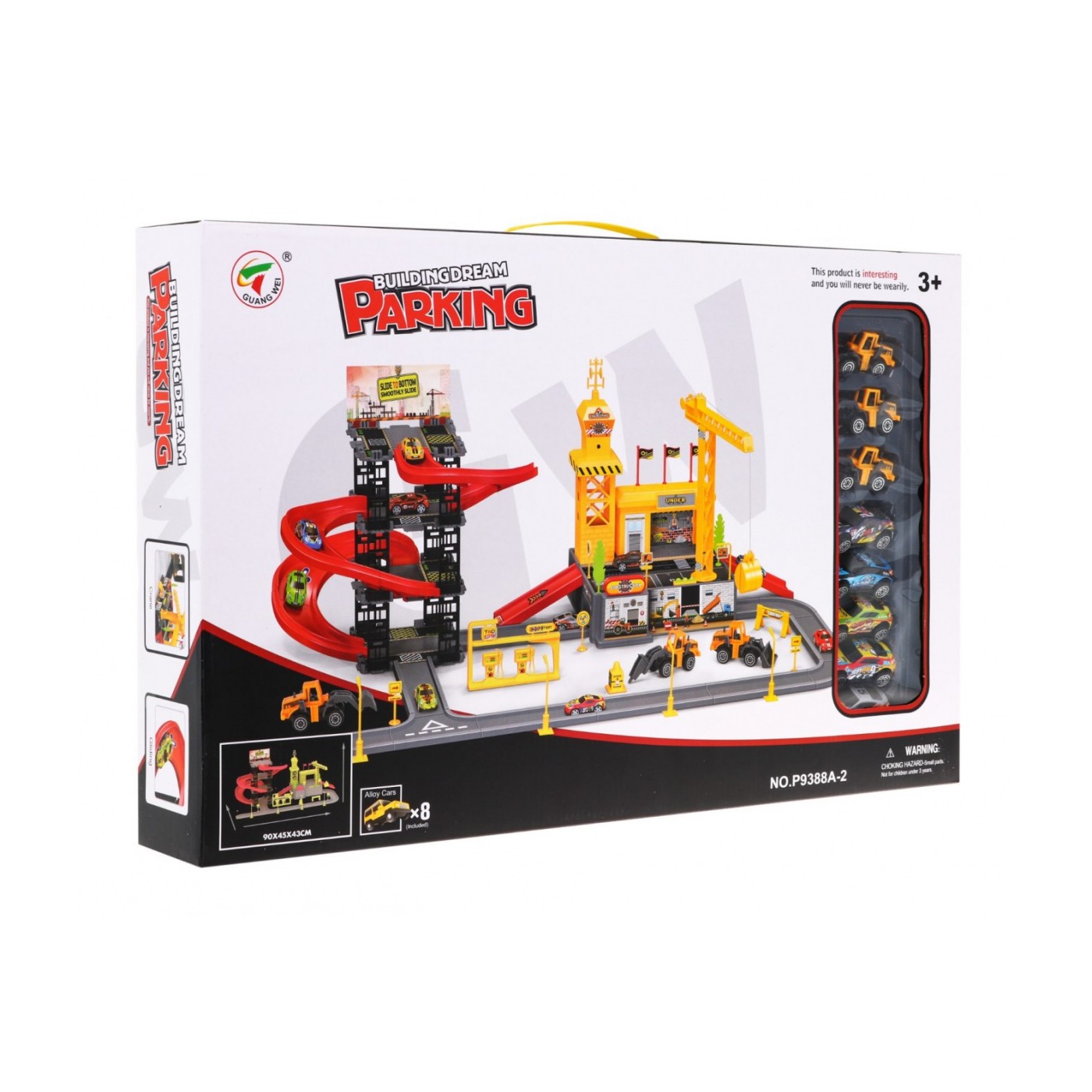 Parkovisko Stavenisko 2v1 pre deti 3+ Interaktívne funkcie + 5 autíčok + 3 stavebné vozidlá + Príslušenstvo