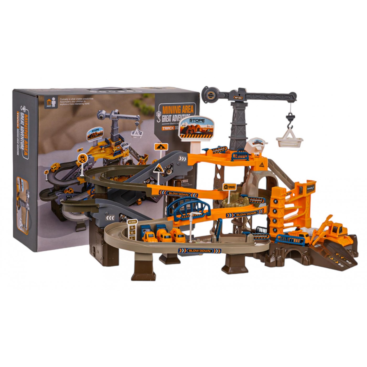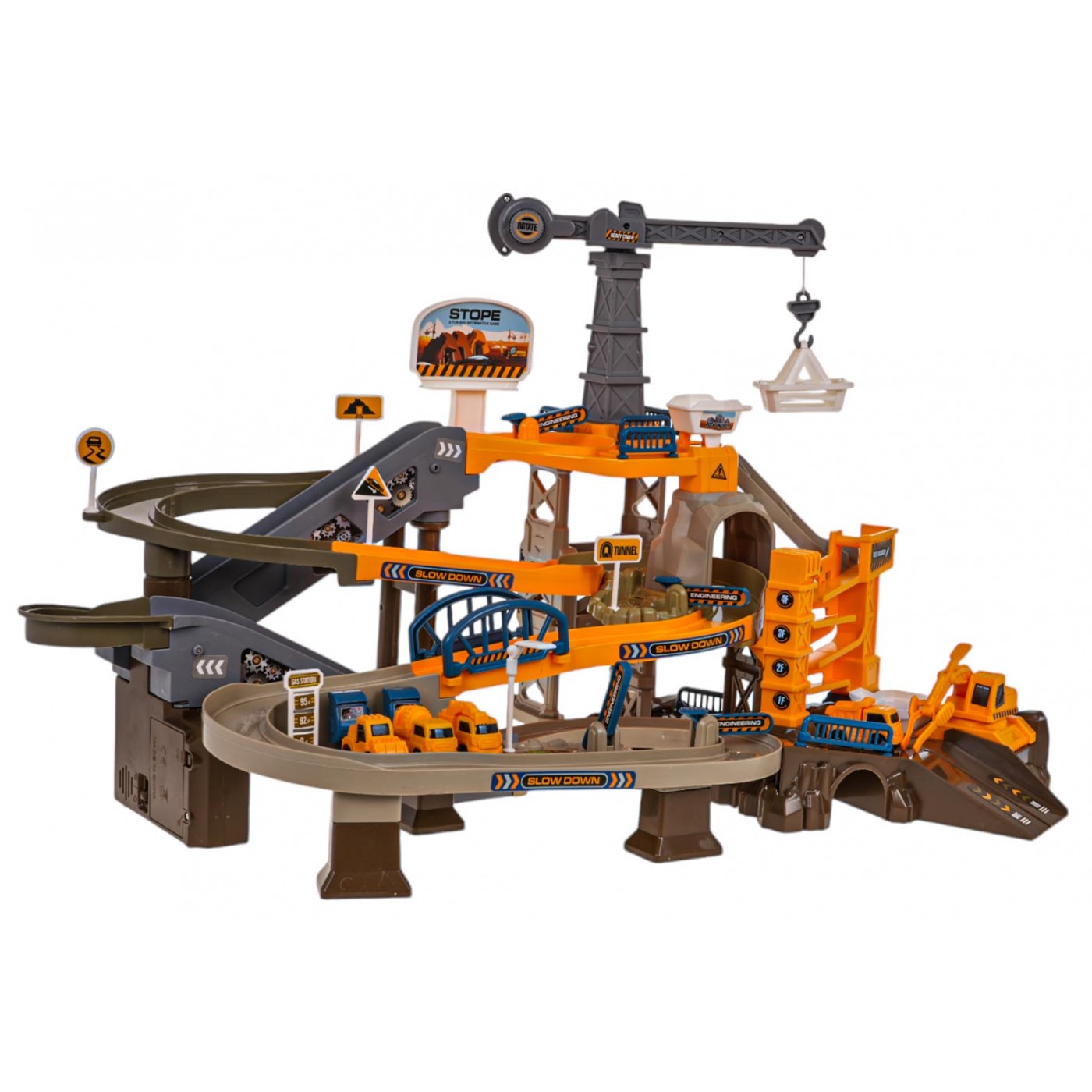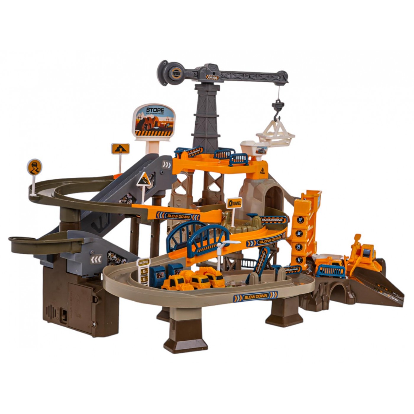 Parkovisko, stavenisko so žeriavom a stavebnicou pre deti od 3 rokov. Je vyrobený z najkvalitnejšieho plastu v živých farbách. Táto sada obsahuje veľa atrakcií, ako je garáž, parkovisko, žeriav a stanica. Elektrický dopravný pás ťahá vozidlá hore na trať za sprievodu príjemných zvukov. Táto súprava obsahuje množstvo odbočiek, vchodov, bariér a tunelov, takže sa nebudete nudiť. Nechýba ani kamenný žľab, ktorý dopravuje kamene do špeciálneho kontajnera. Ďalší stroj umiestnený pri odkvape prenáša kamene do áut, aby ich vyniesli na vrchol. Súprava je napájaná 3 x AA 1,5 V batériami (nie sú súčasťou balenia).