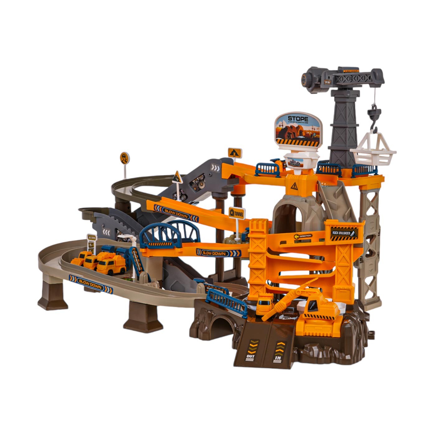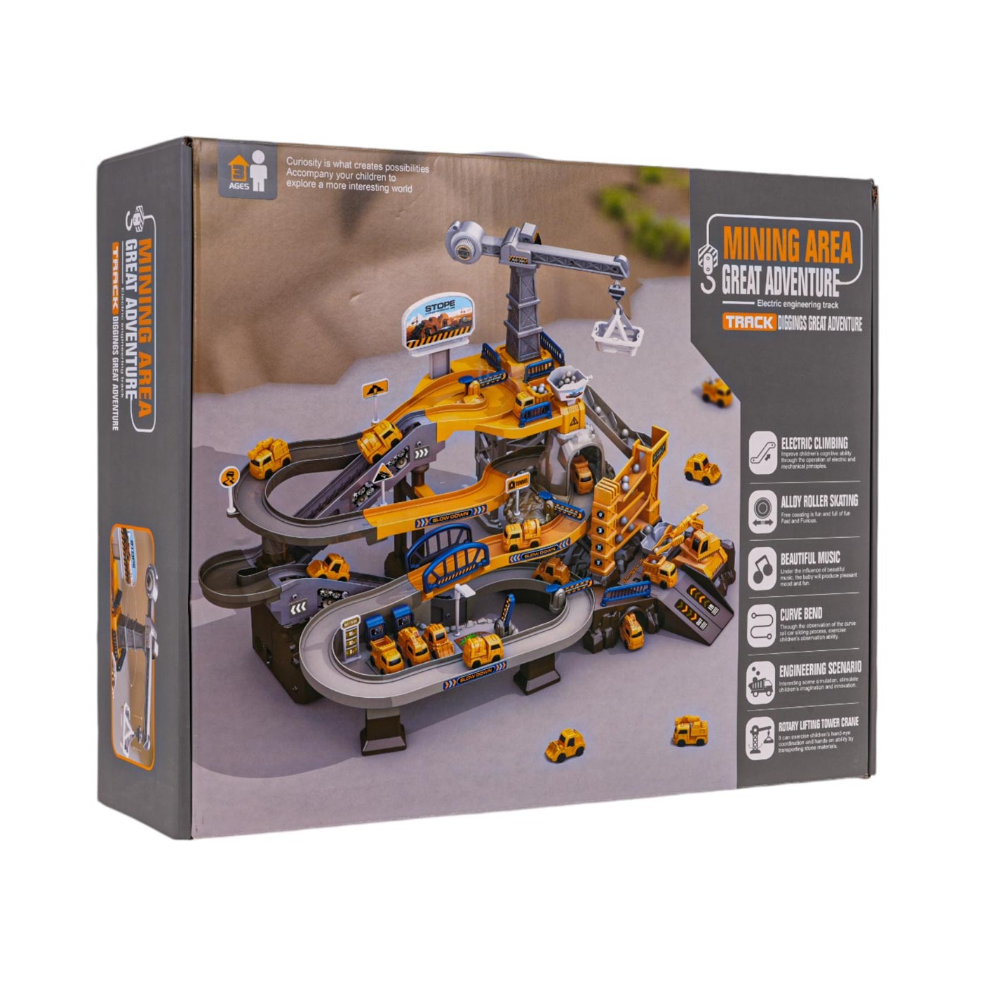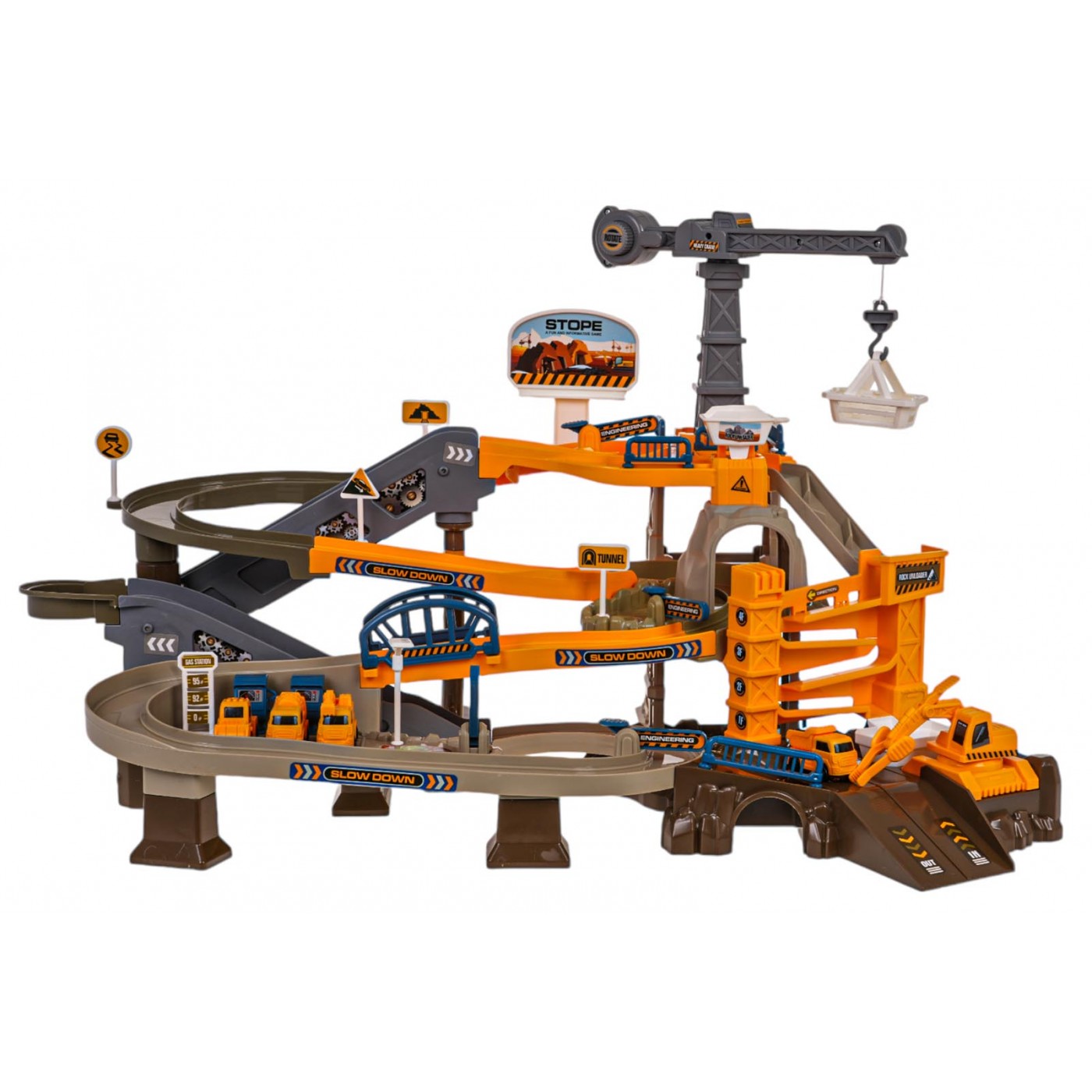 Parkovisko, stavenisko so žeriavom a stavebnicou pre deti od 3 rokov. Je vyrobený z najkvalitnejšieho plastu v živých farbách. Táto sada obsahuje veľa atrakcií, ako je garáž, parkovisko, žeriav a stanica. Elektrický dopravný pás ťahá vozidlá hore na trať za sprievodu príjemných zvukov. Táto súprava obsahuje množstvo odbočiek, vchodov, bariér a tunelov, takže sa nebudete nudiť. Nechýba ani kamenný žľab, ktorý dopravuje kamene do špeciálneho kontajnera. Ďalší stroj umiestnený pri odkvape prenáša kamene do áut, aby ich vyniesli na vrchol. Súprava je napájaná 3 x AA 1,5 V batériami (nie sú súčasťou balenia).