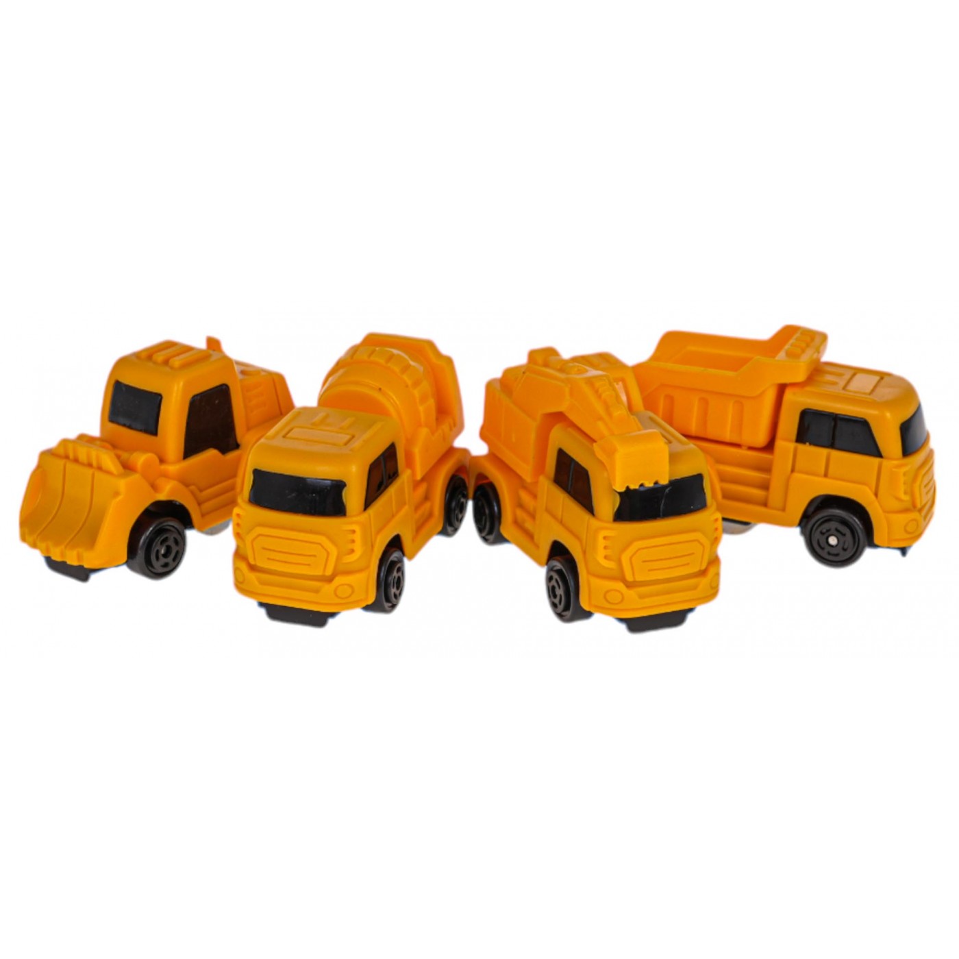 - konštrukčné časti parkoviska, - pojazdný žeriav, - 4 stavebné autá: sklápač, bager, miešačka na betón, buldozér, - 12 imitácií kameňov, - 4 dopravné značky, - 2 výdajné stojany paliva, - dekoratívne nálepky, - manuál. |