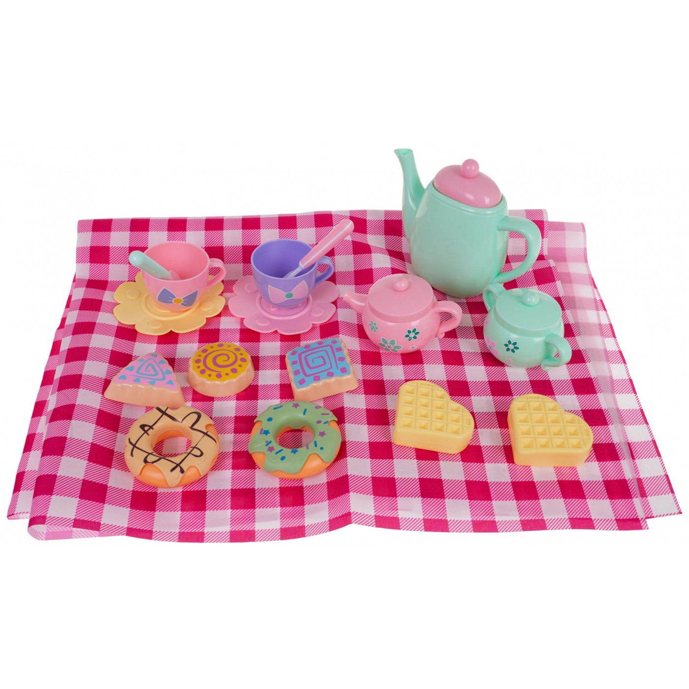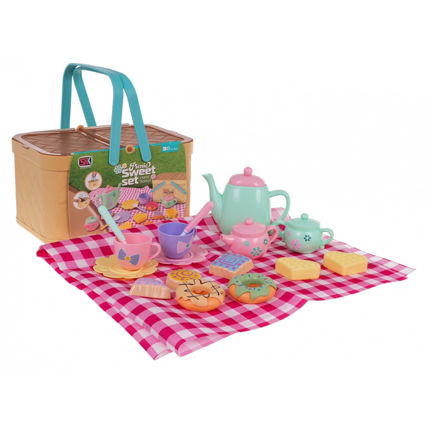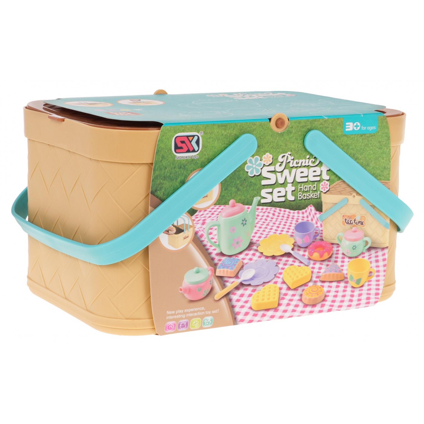 Piknikový kôš s príslušenstvom pre deti od 3 rokov. Ideálny spôsob, ako sa zabaviť vonku. Táto bohato vybavená sada sa skladá z mnohých prvkov: priestranného košíka, čajovej súpravy a atrapy cukrárskych výrobkov. Sada obsahuje aj piknikovú deku.
