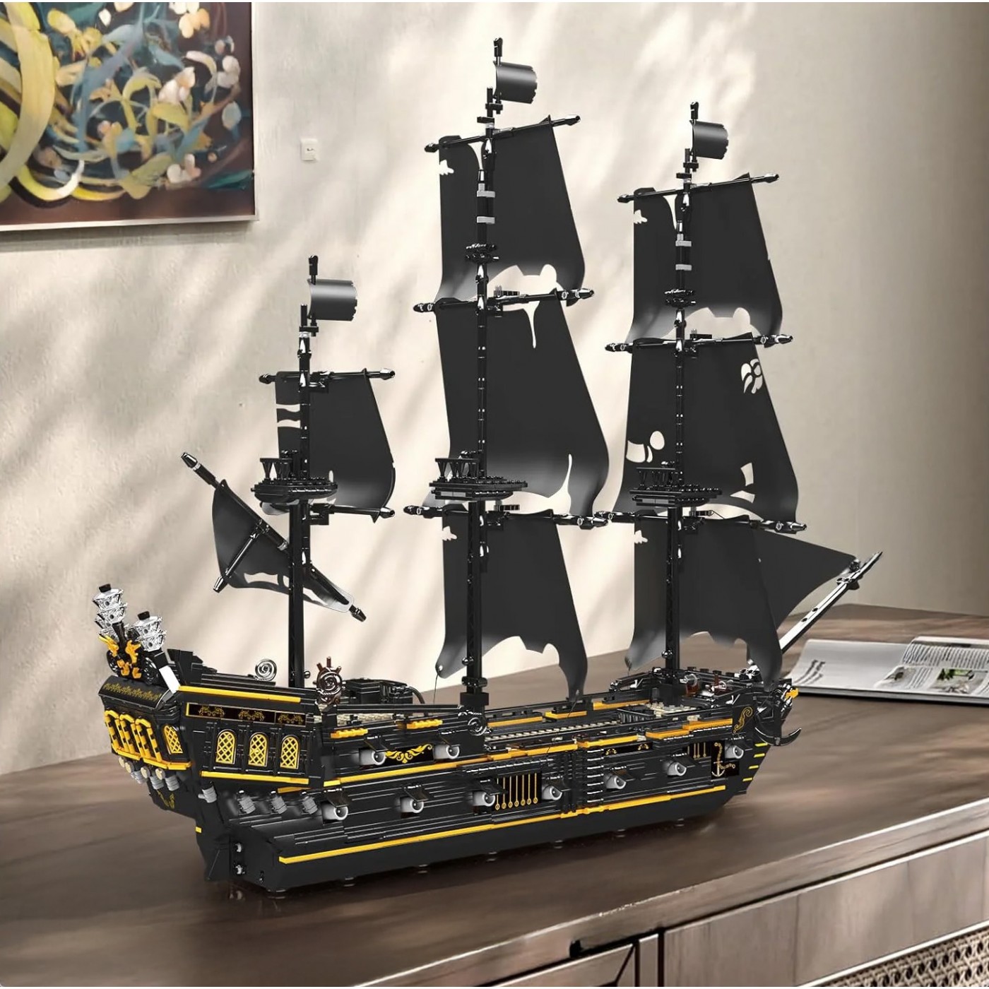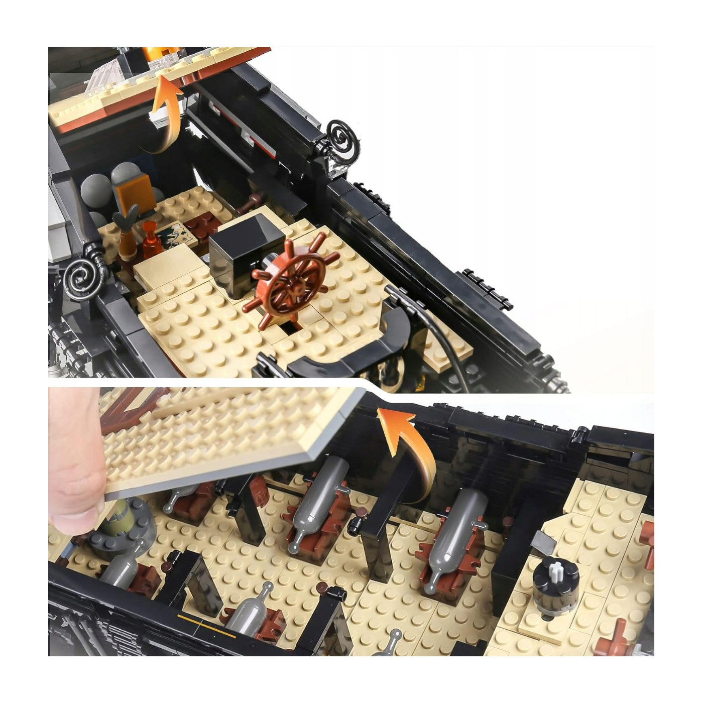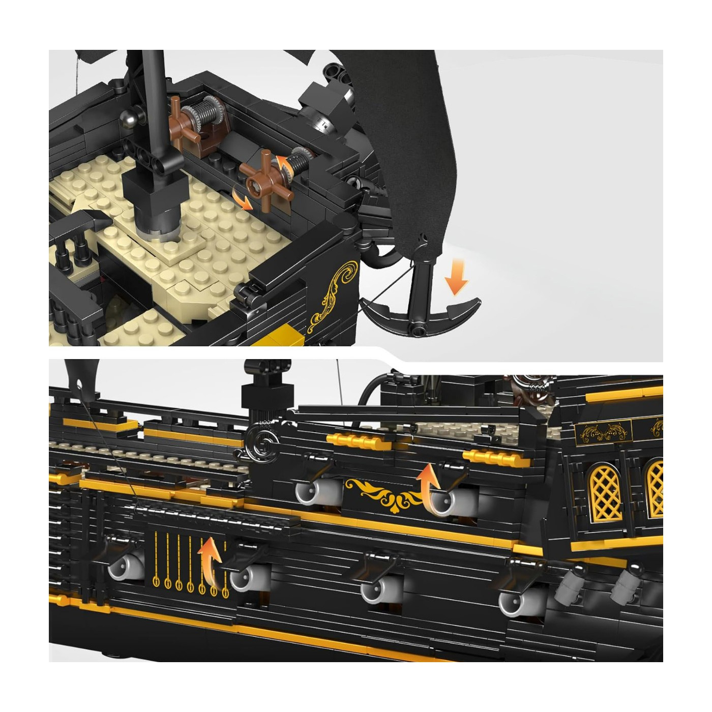Sada čiernych stavebných kociek Pirátska loď, 3180 dielikov.