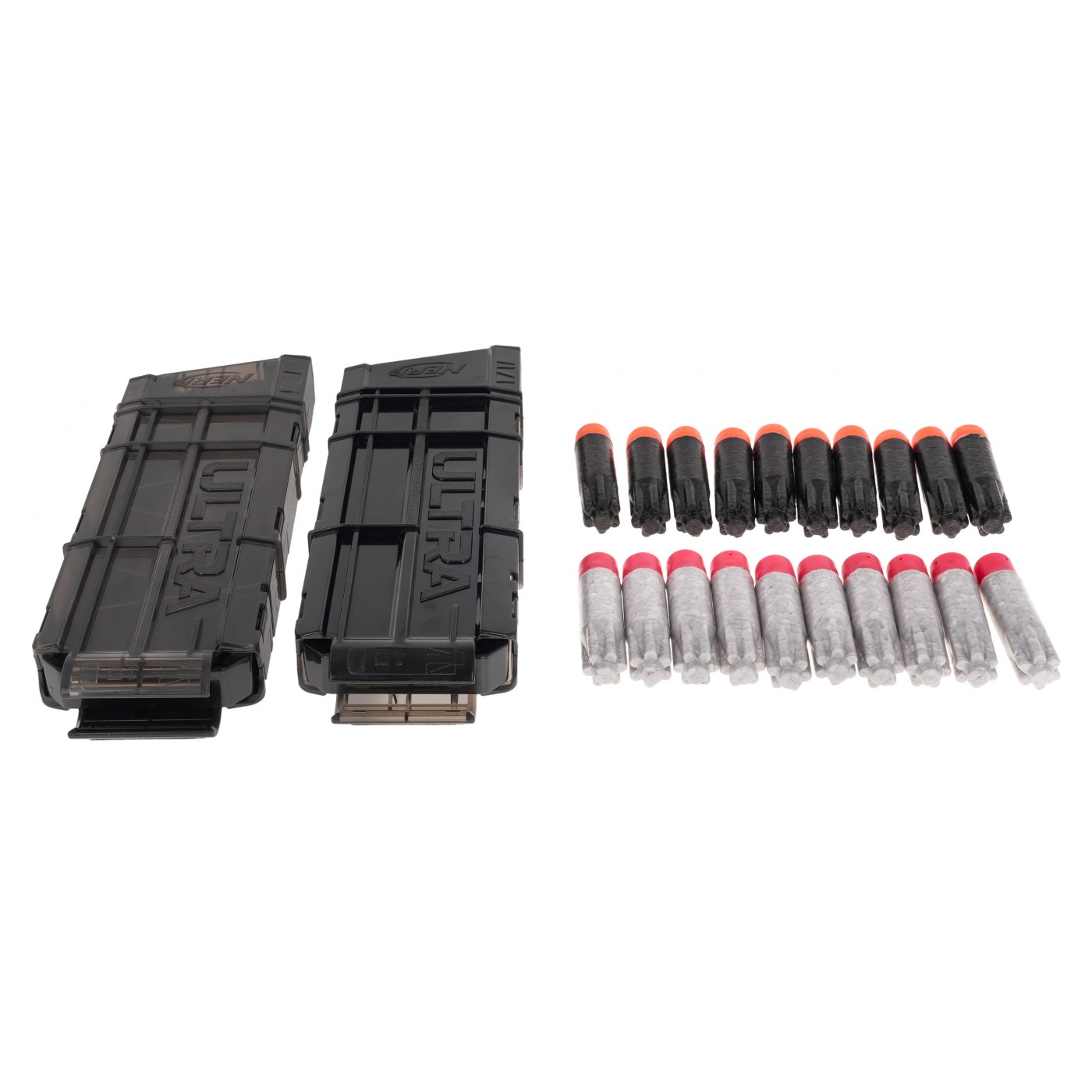 | - wyrzutnia, - kolba, - przedłużenie lufy, - magazynek, - 6 strzałek Nerf Elite |