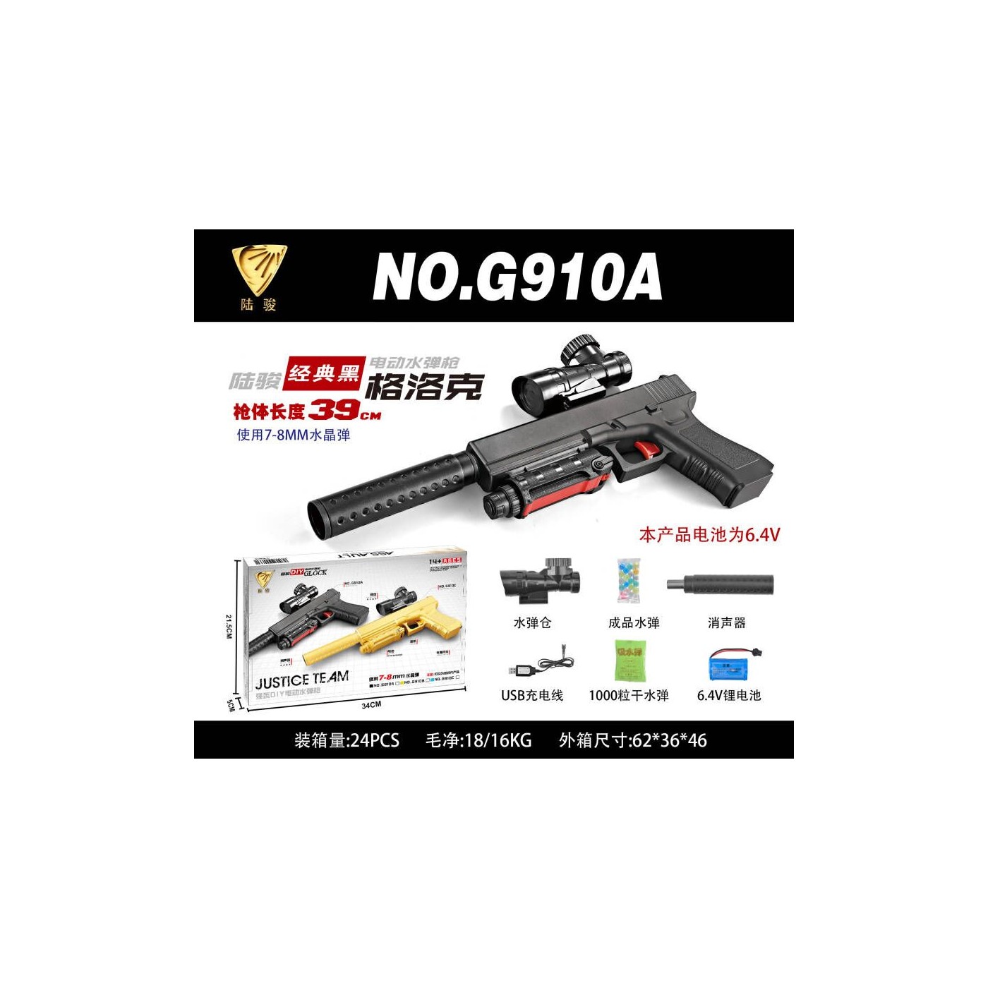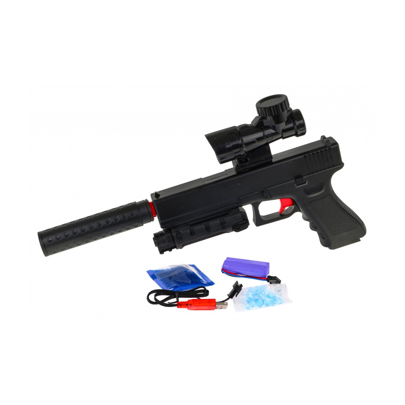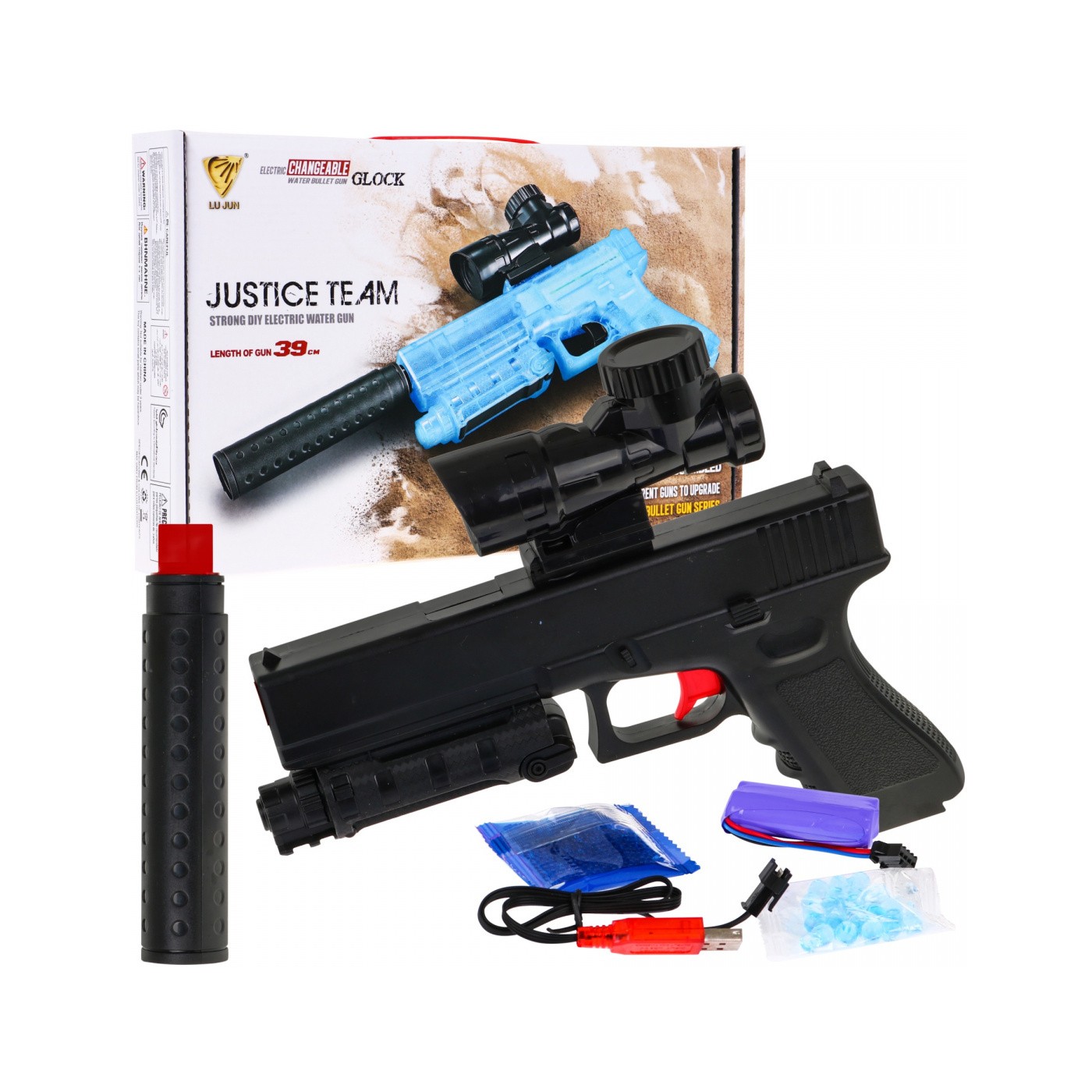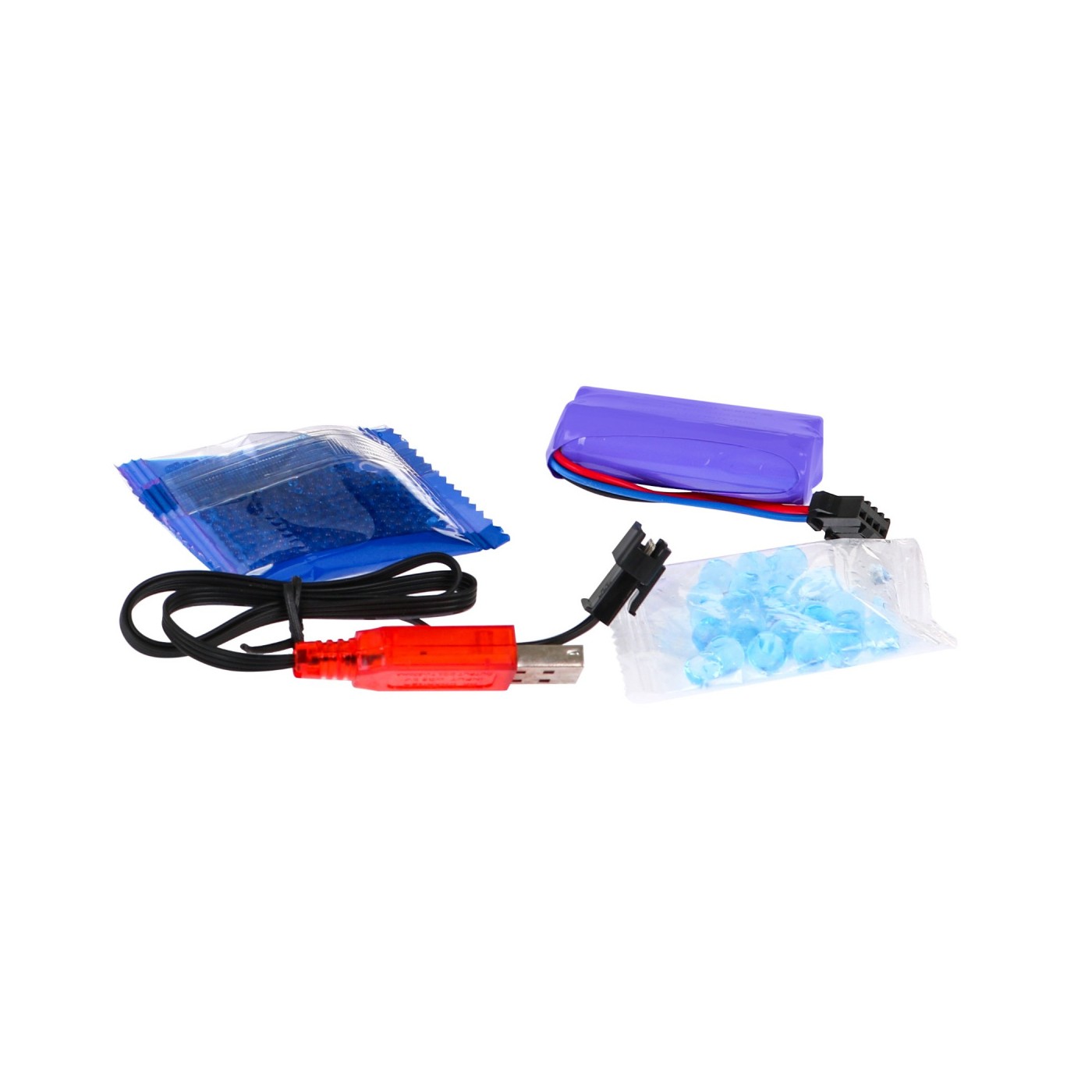 | | - pistolet, - celownik, - tłumik, - USB kabel, - akumulator 7,4V 14500/500 mAh, - saszetka bomb wodnych przygotowanych do użycia, - saszetka 1000 nieprzygotowanych bomb wodnych. |
