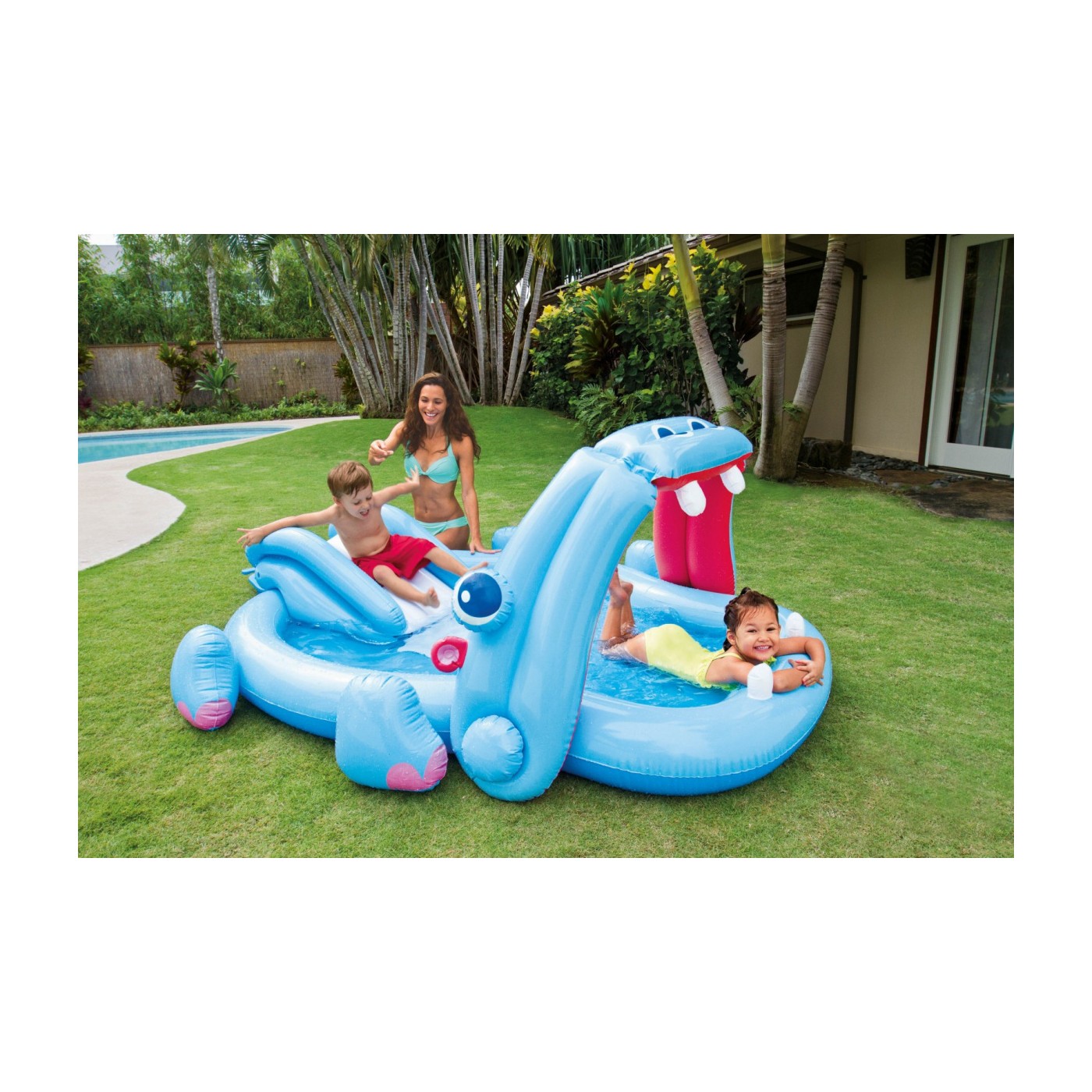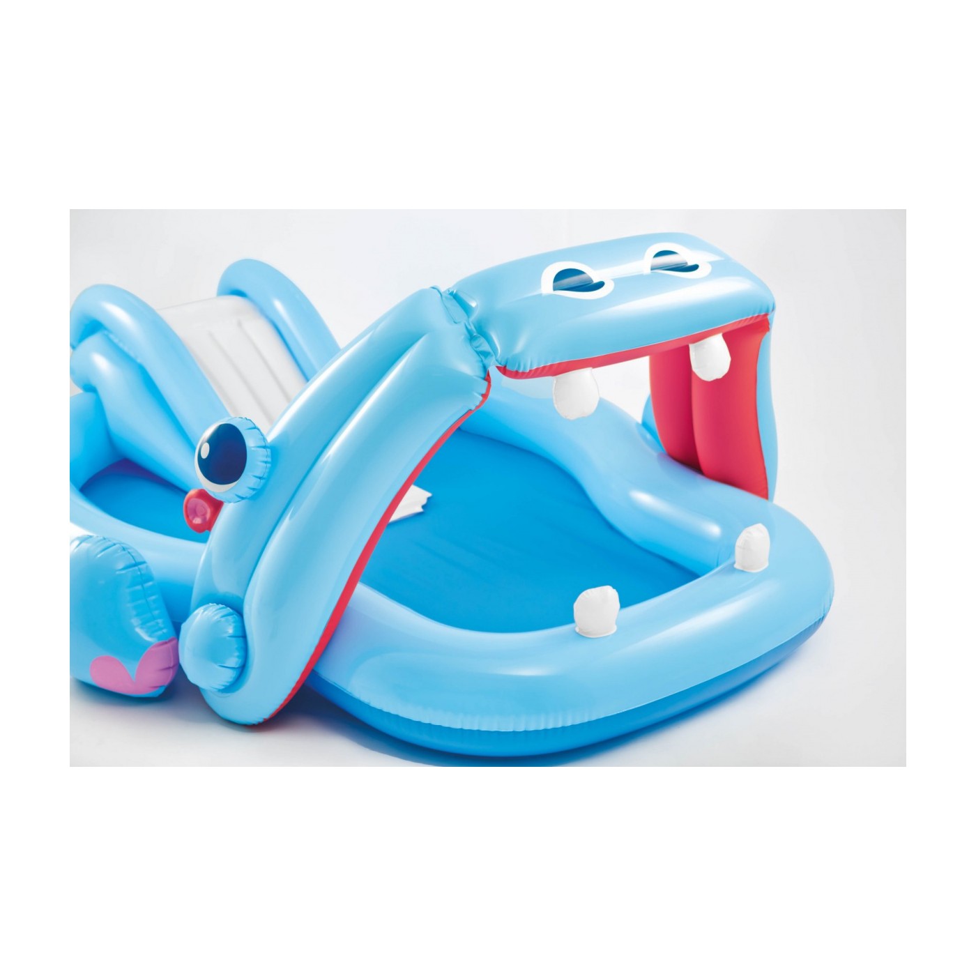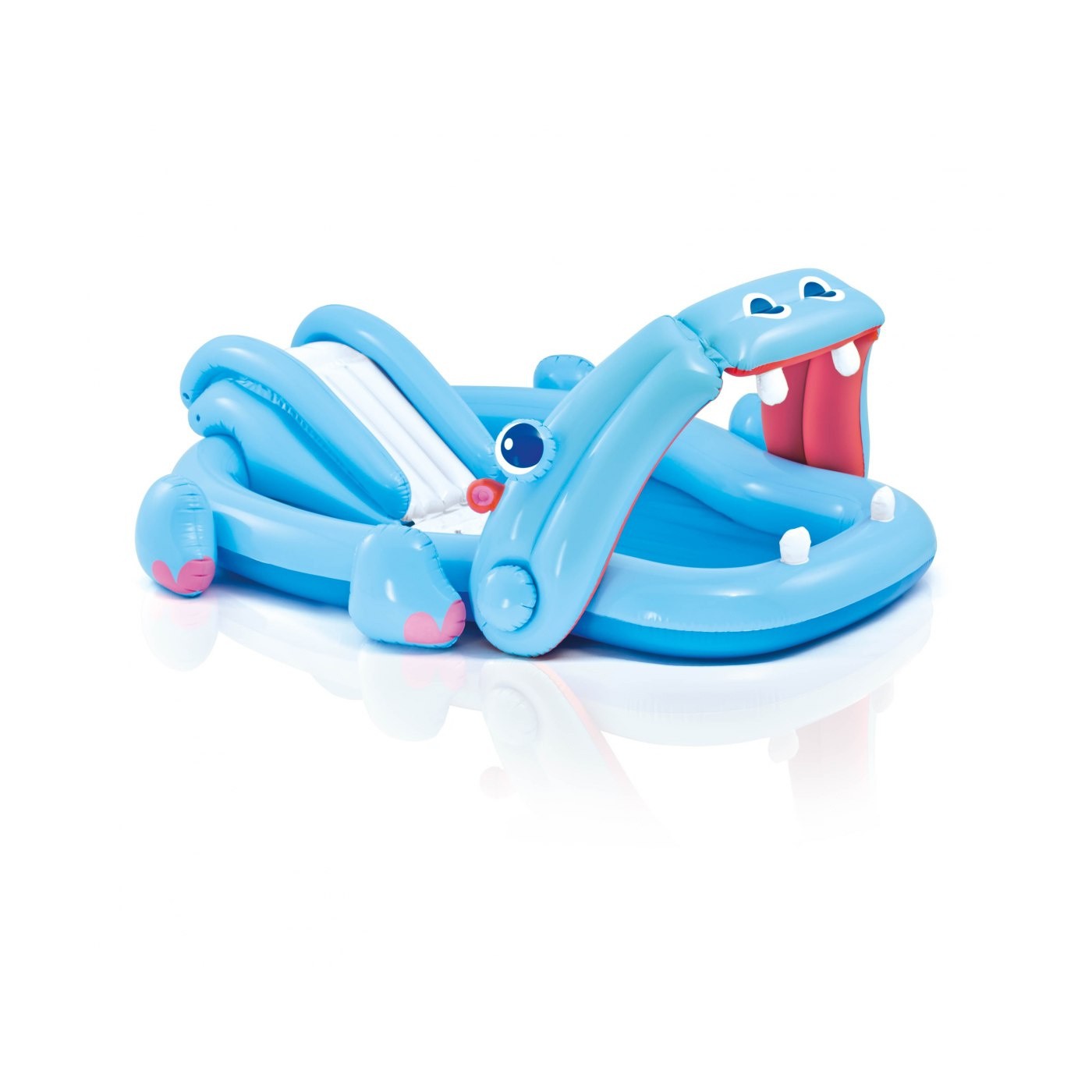 | - nadmuchiwany brodzik z paszczą hipopotama, - zjeżdżalnia, - zestaw naprawczy, - kolorowe opakowanie. |