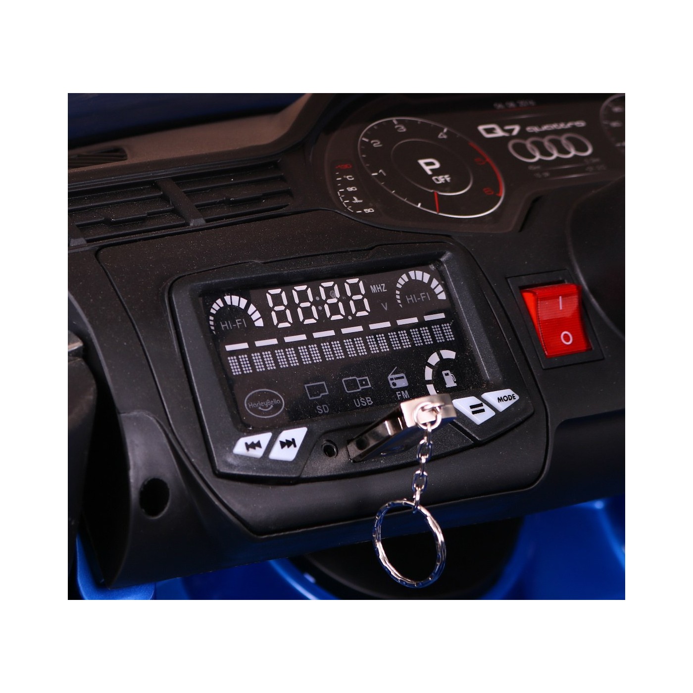 Audi Q7 Quattro S-Line na batériu Lakovaný Modrý + Ovládač + Pomalý štart + EVA + Rádio MP3