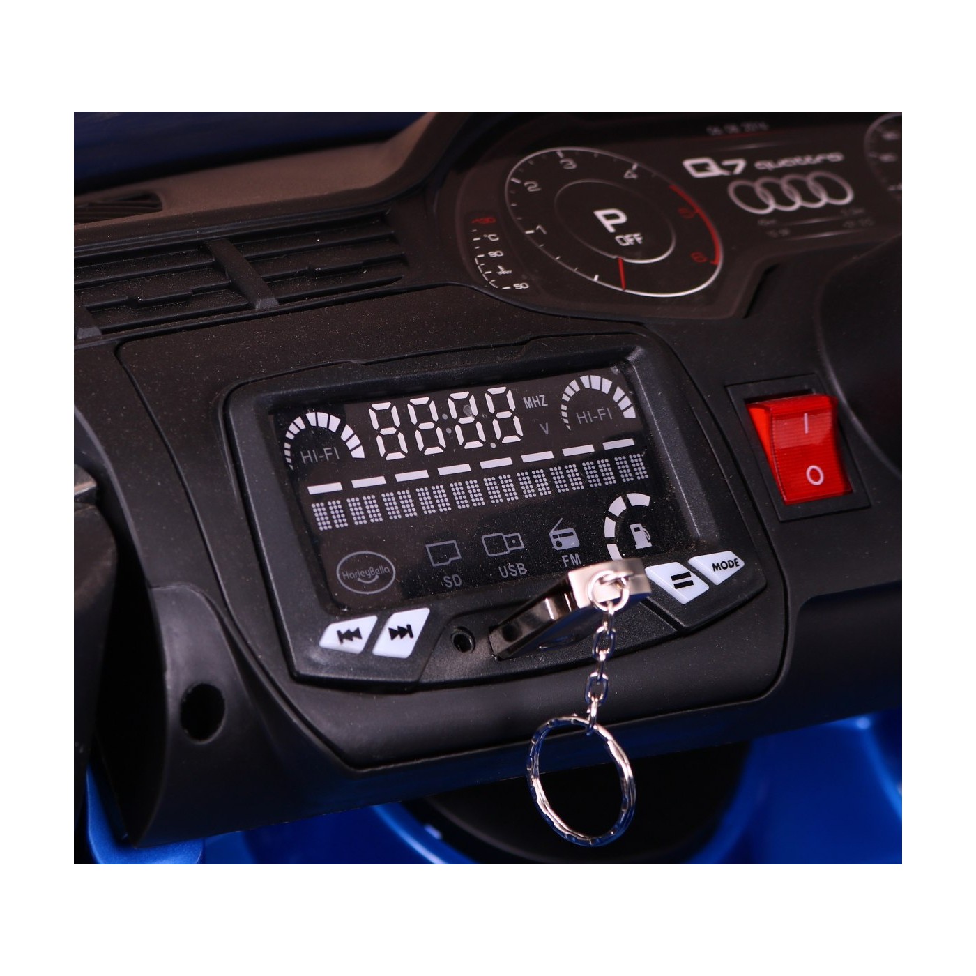 Audi Q7 Quattro S-Line na batériu Modrý + Ovládač + Pomalý štart + EVA + Rádio MP3 LED