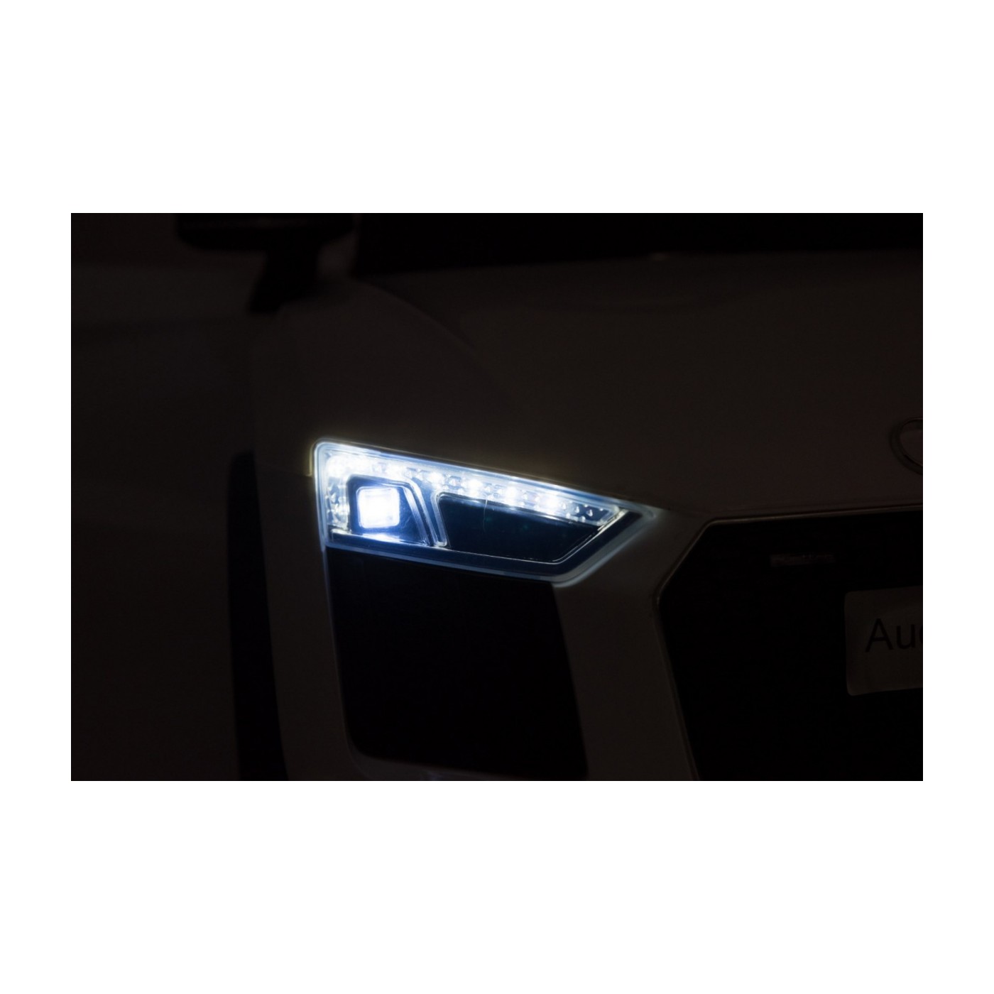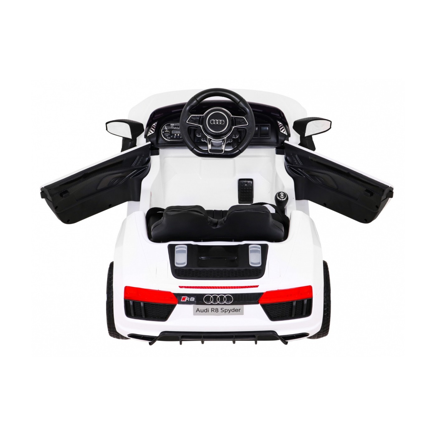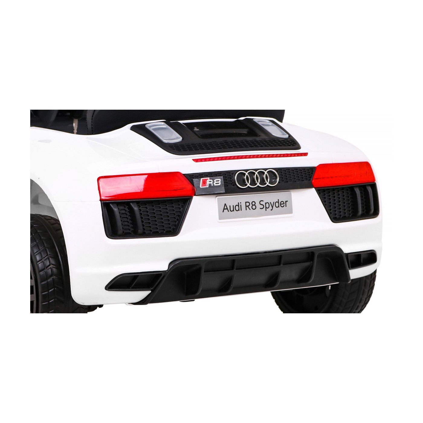 Audi R8 na batériu pre deti Biely + Ovládač + EVA + Pomalý štart + MP3 LED