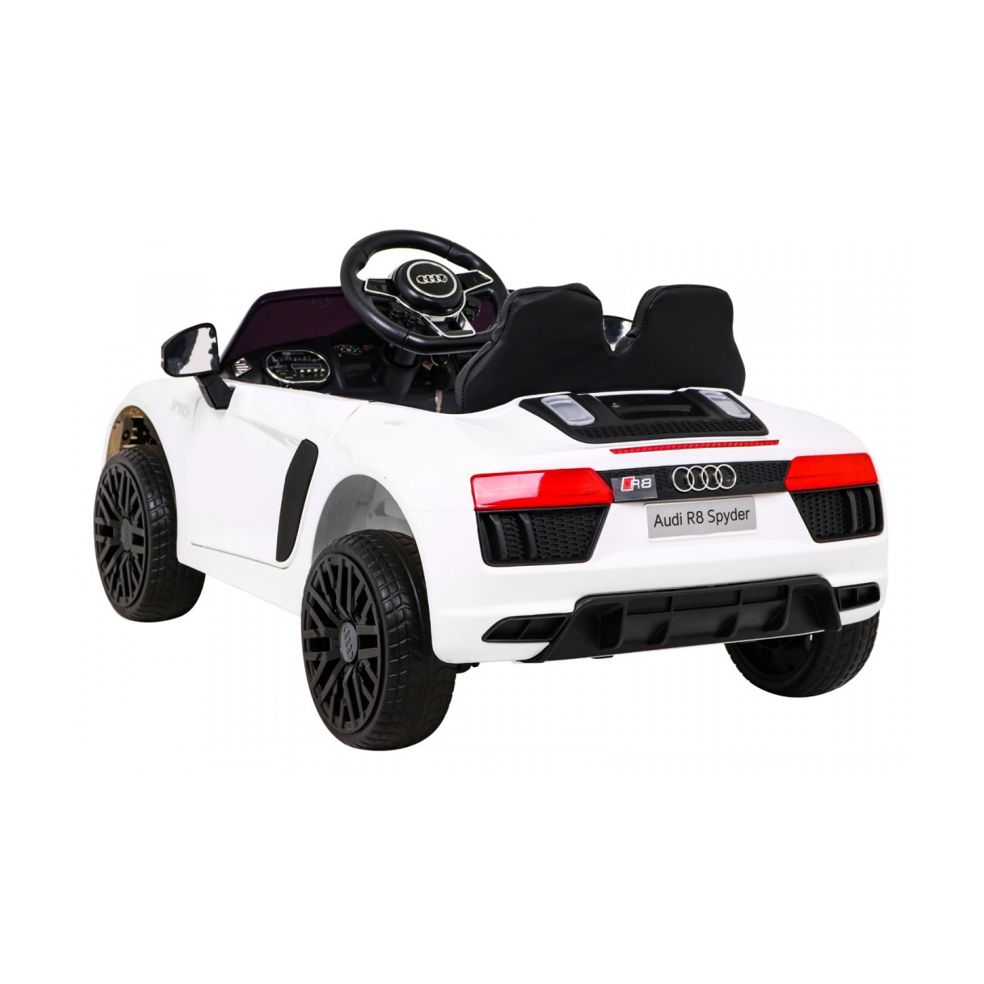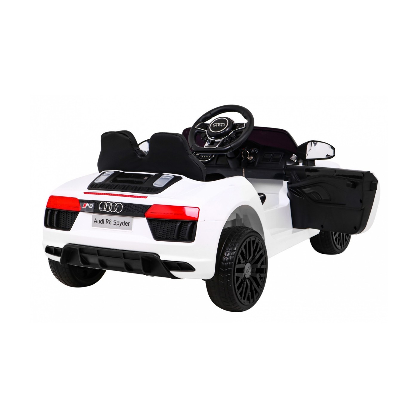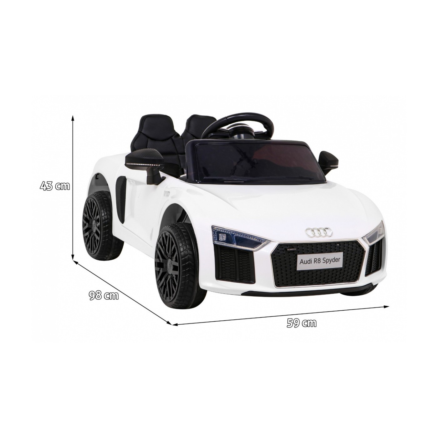 Audi R8 na batériu pre deti Biely + Ovládač + EVA + Pomalý štart + MP3 LED