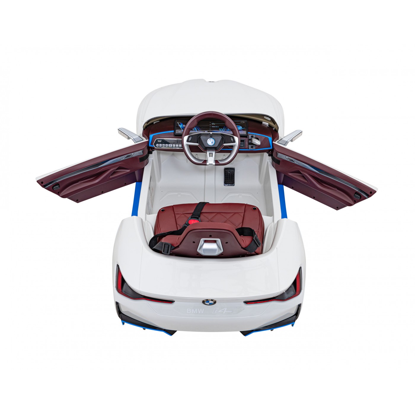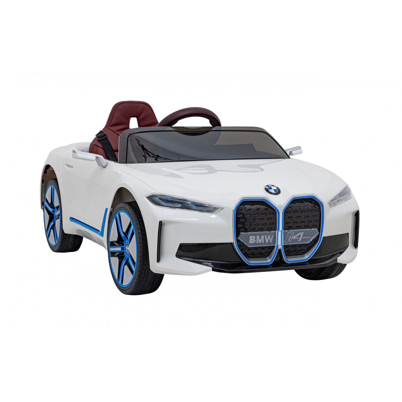 Auto BMW I4 na batériu pre deti Biele + Pomalý štart + EVA + Ekokoža + Audio LED + Ovládač