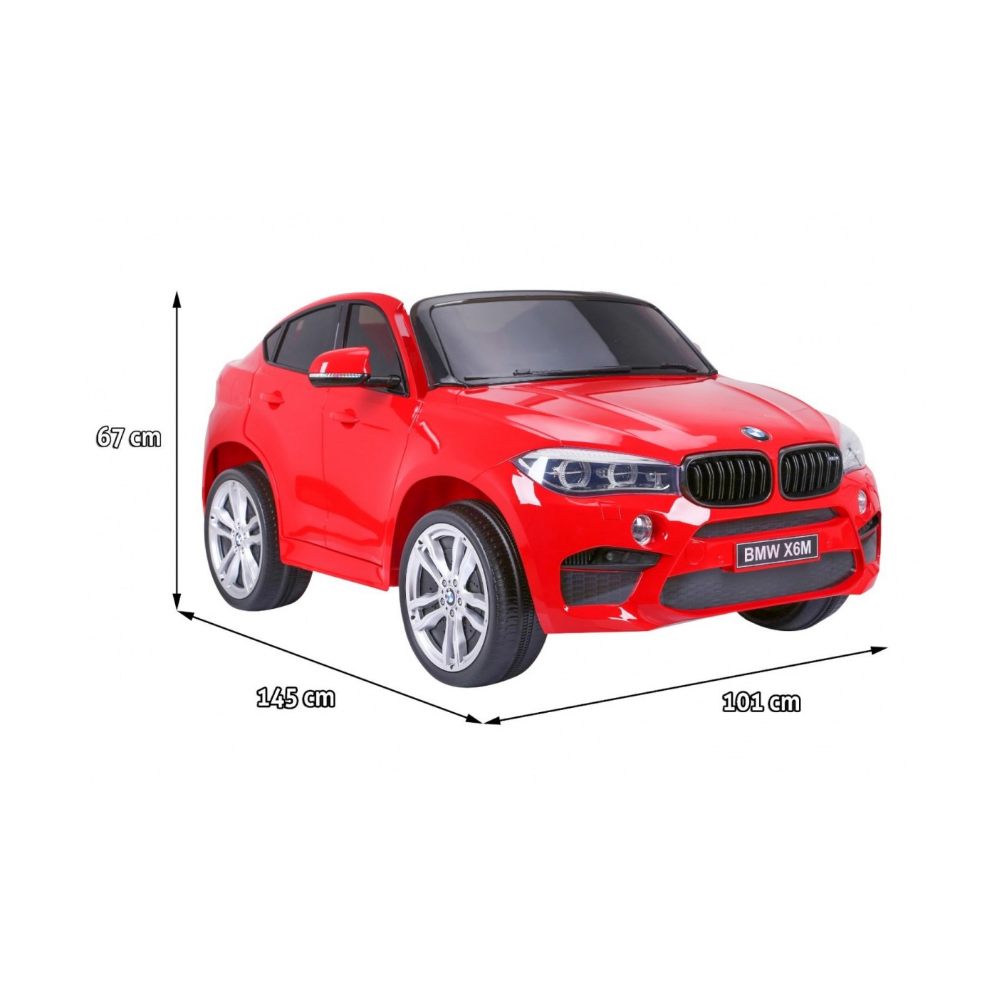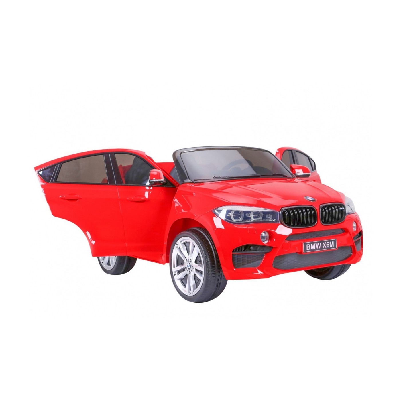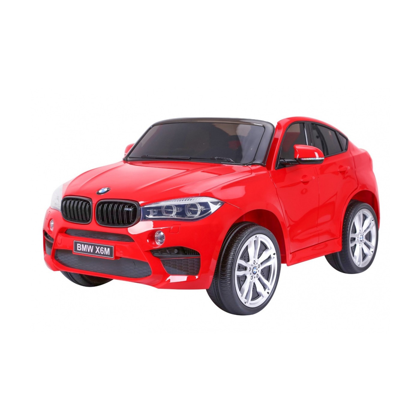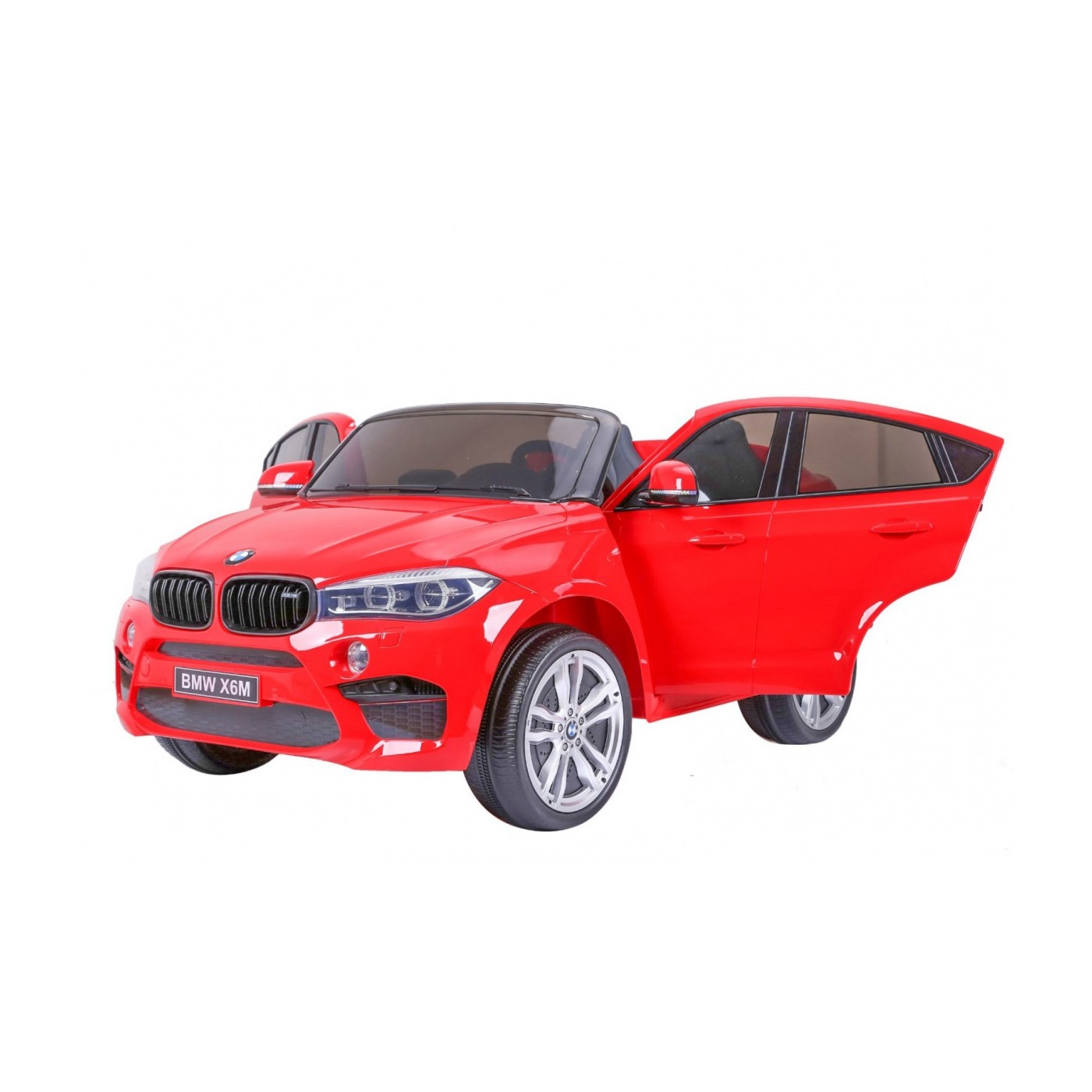 BMW X6M XXL pre 2 deti Červený + Ovládač + Ekokoža + Pásy + Pomalý štart + MP3 USB + LED