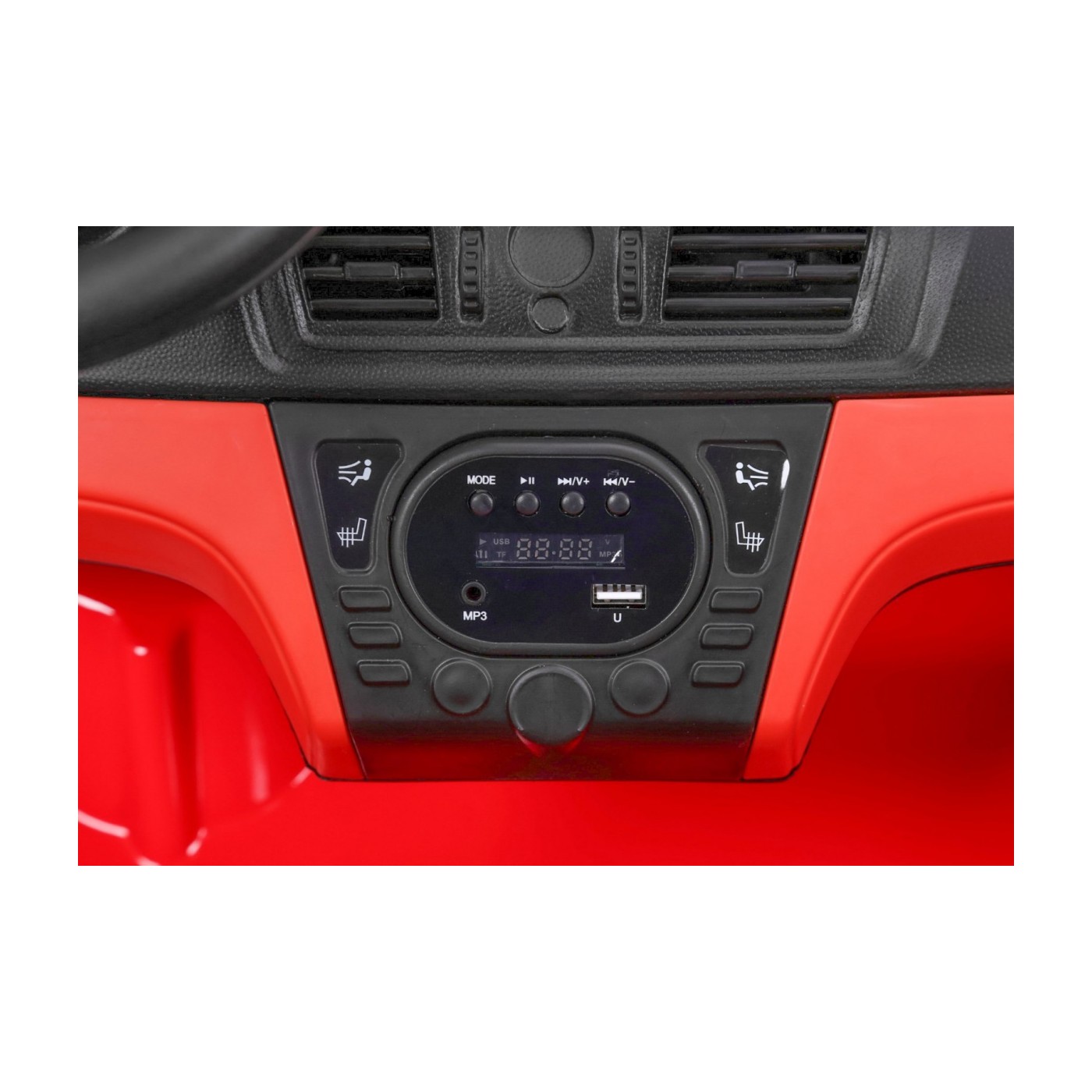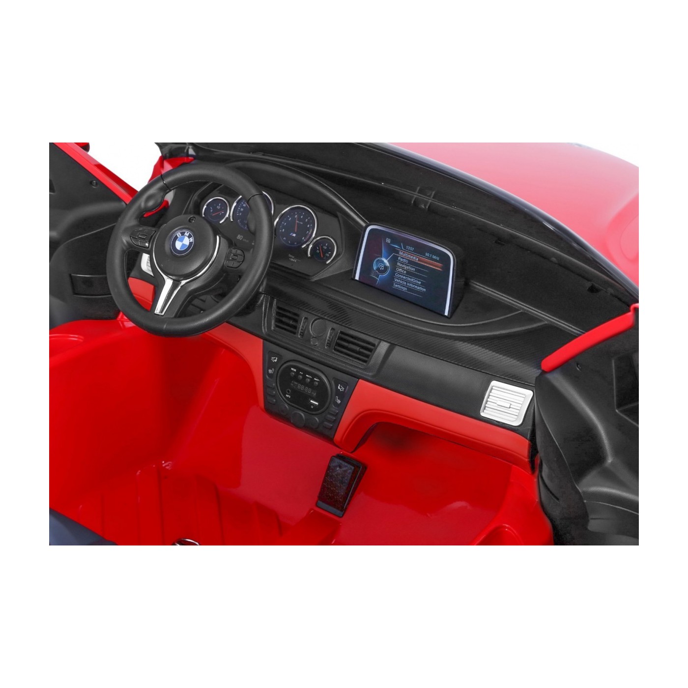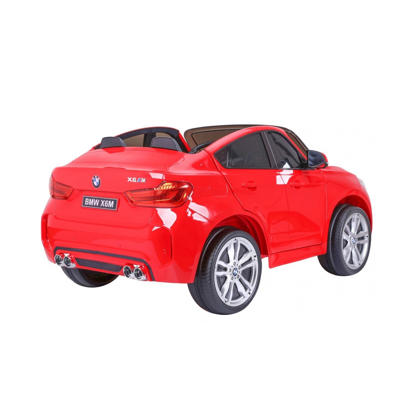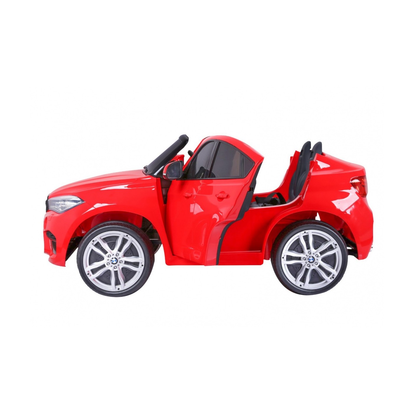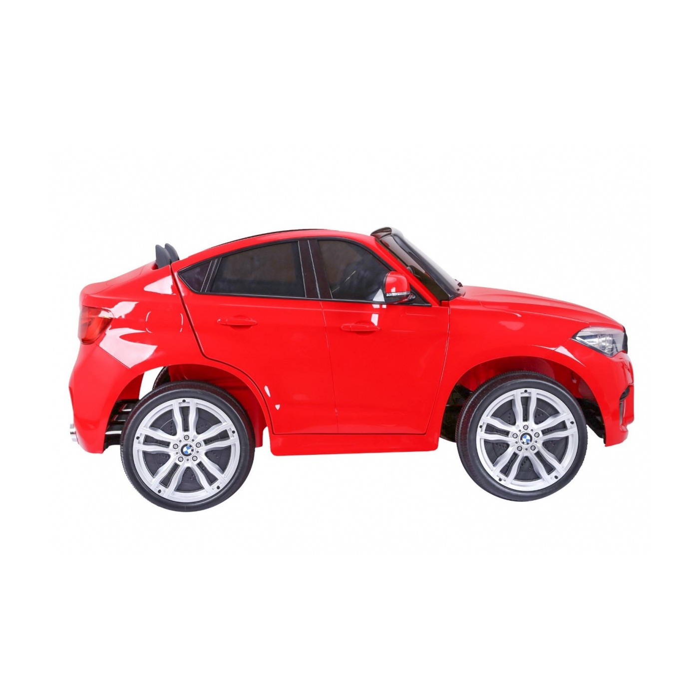 BMW X6M XXL pre 2 deti Červený + Ovládač + Ekokoža + Pásy + Pomalý štart + MP3 USB + LED