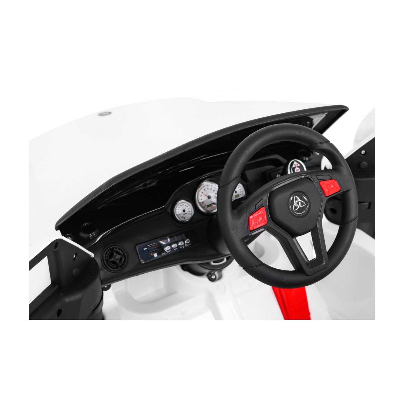 Mercedes Benz AMG EQA pre deti Biely + Ovládač + 5-bodové pásy + EVA + Displej MP3 + LED