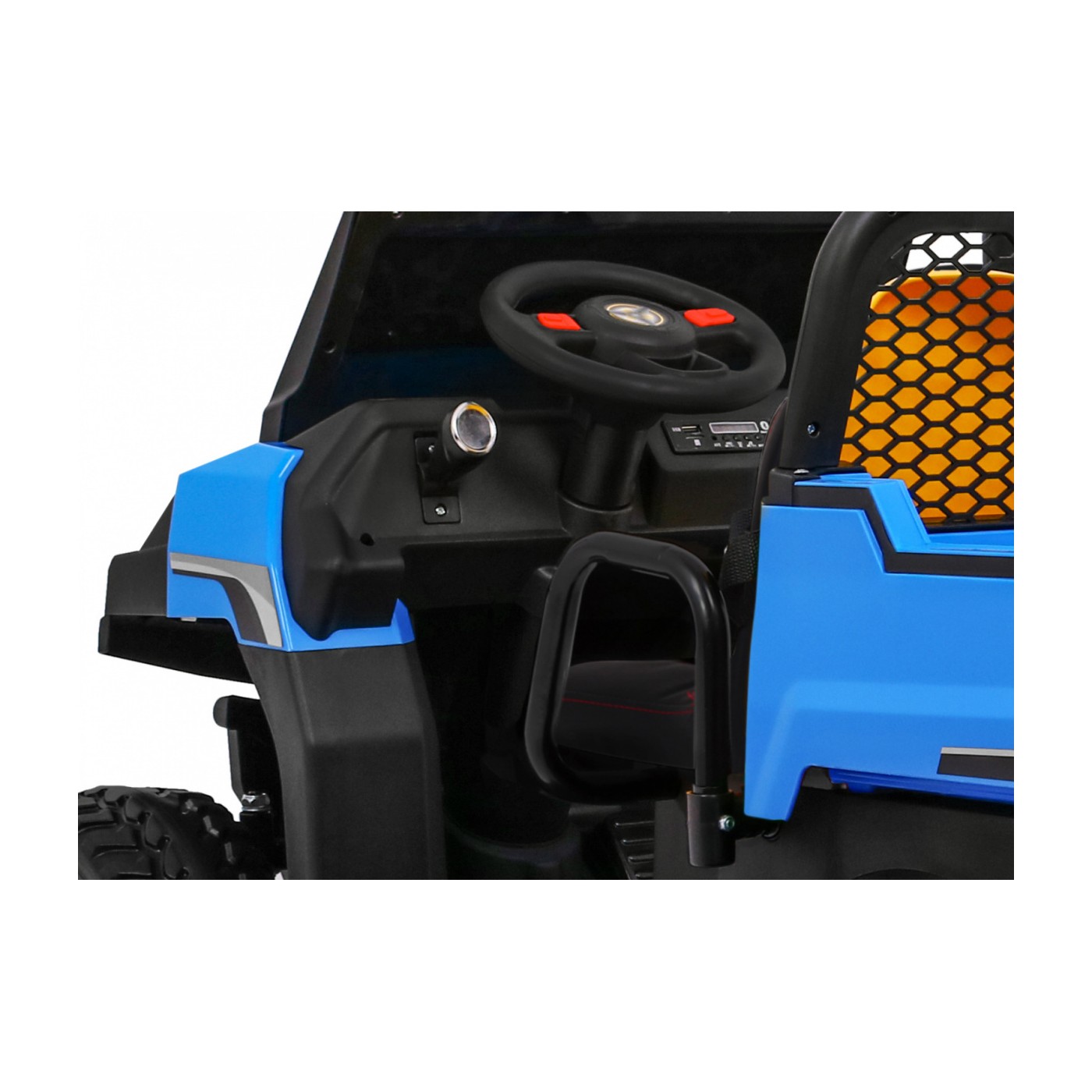 Elektryczny traktor Blazin BW działa napędzany solidnymi podzespołami. Mowa tu o 2 silnikach, każdy z mocą 35W, a także o pojemnym akumulatorze 12V/7Ah. Żywotność akumulatora...