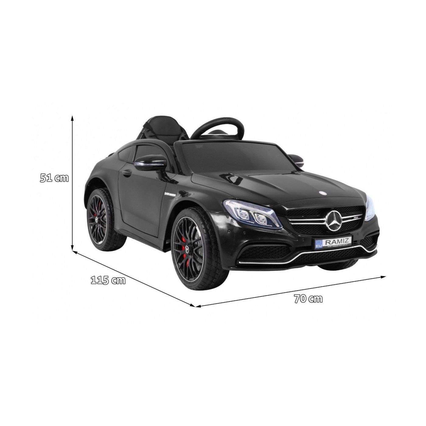Mercedes Benz C63 AMG pre deti Čierny + Diaľkové ovládanie + 5-bodové pásy + EVA + Batožinový priestor + MP3 LED
