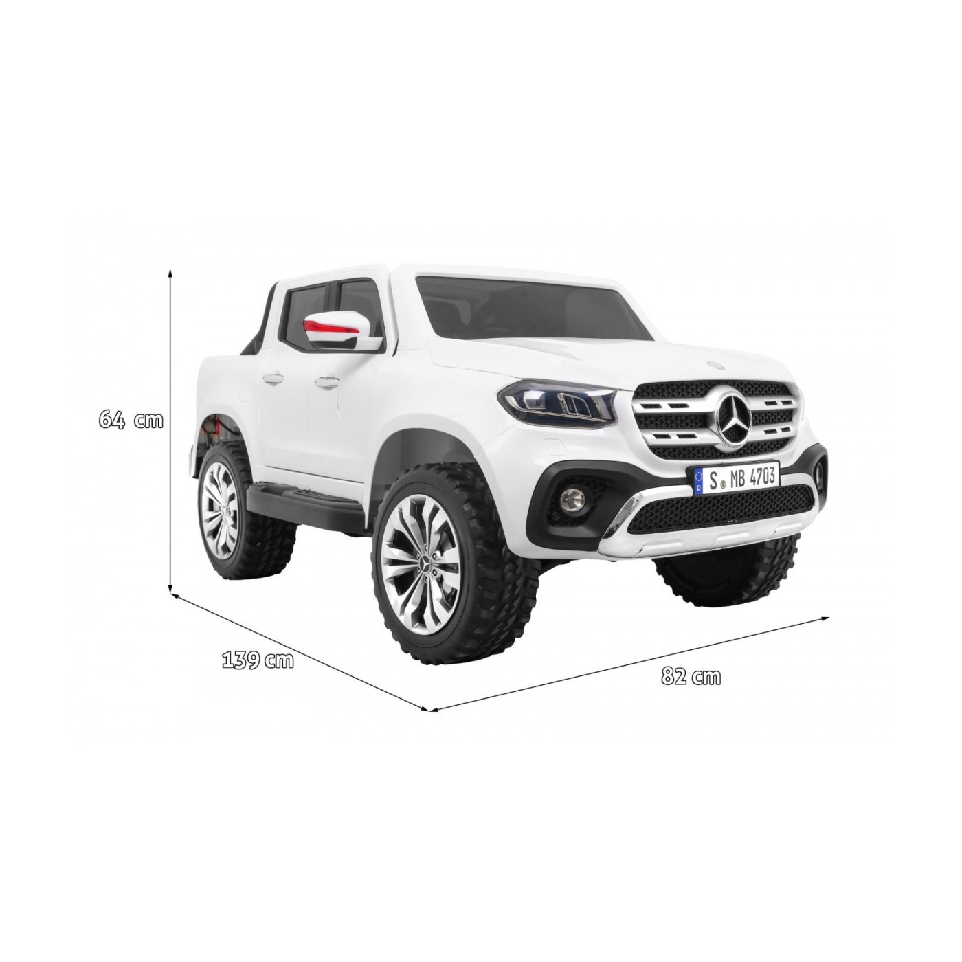 Mercedes Benz X-Class pre deti Biely + Diaľkové ovládanie + Pohon 4x4 + MP4 + Batožinový priestor + LED + EVA