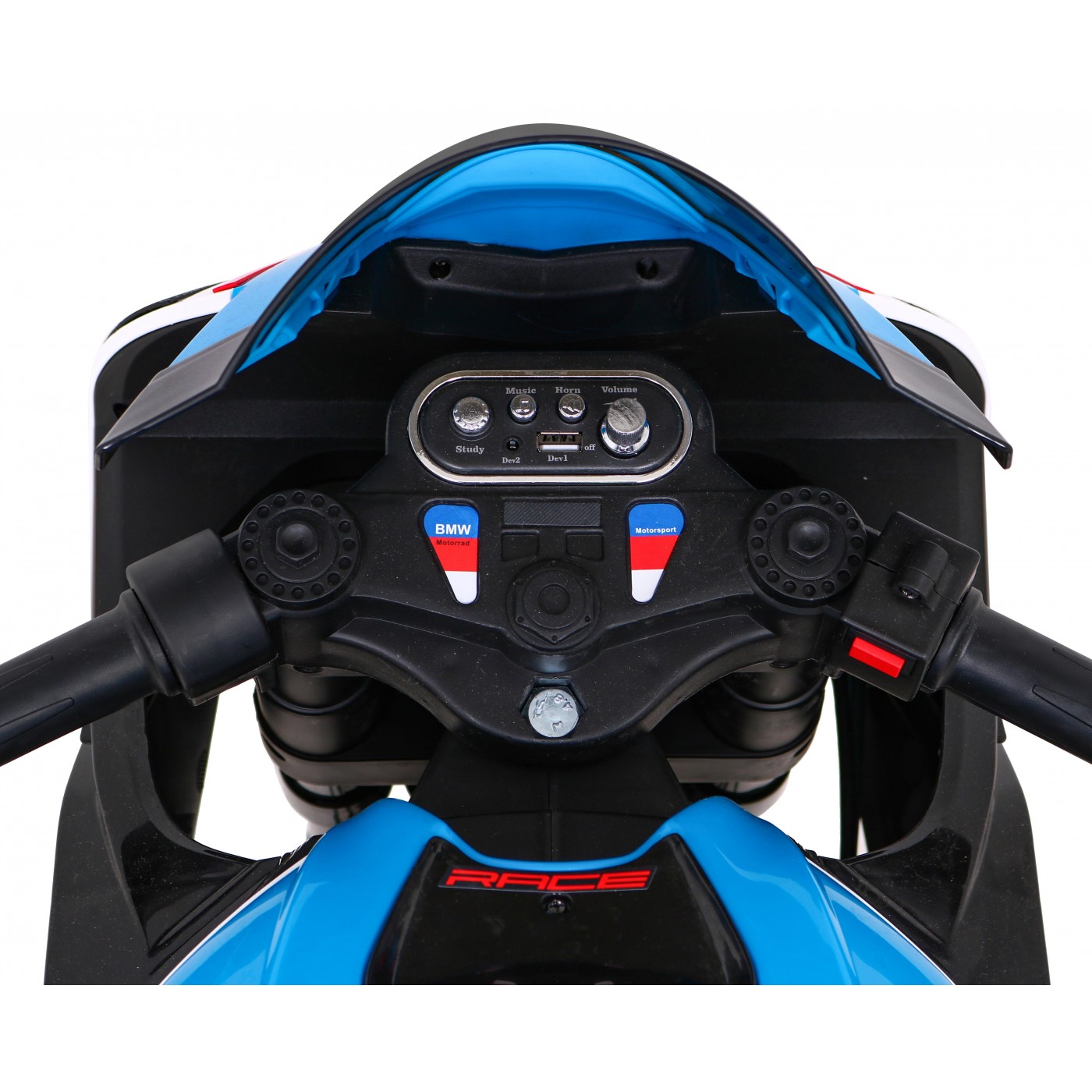 Motorka BMW HP4 na batériu pre deti Biely + Pomocné kolieska + Pomalý štart + EVA + MP3 LED