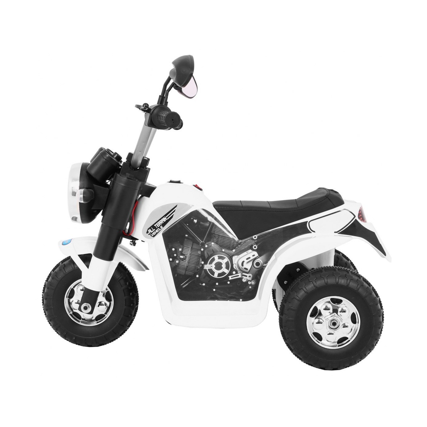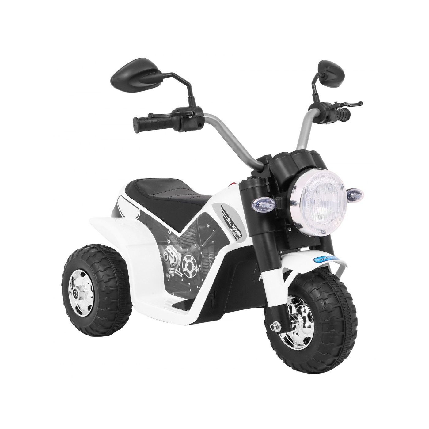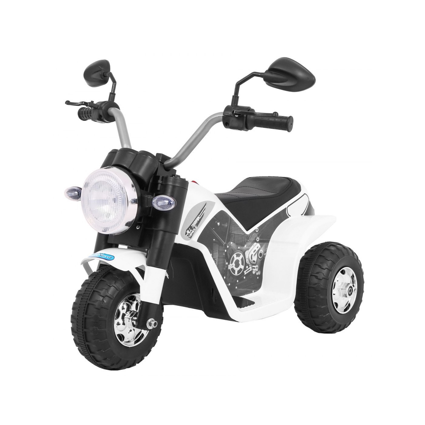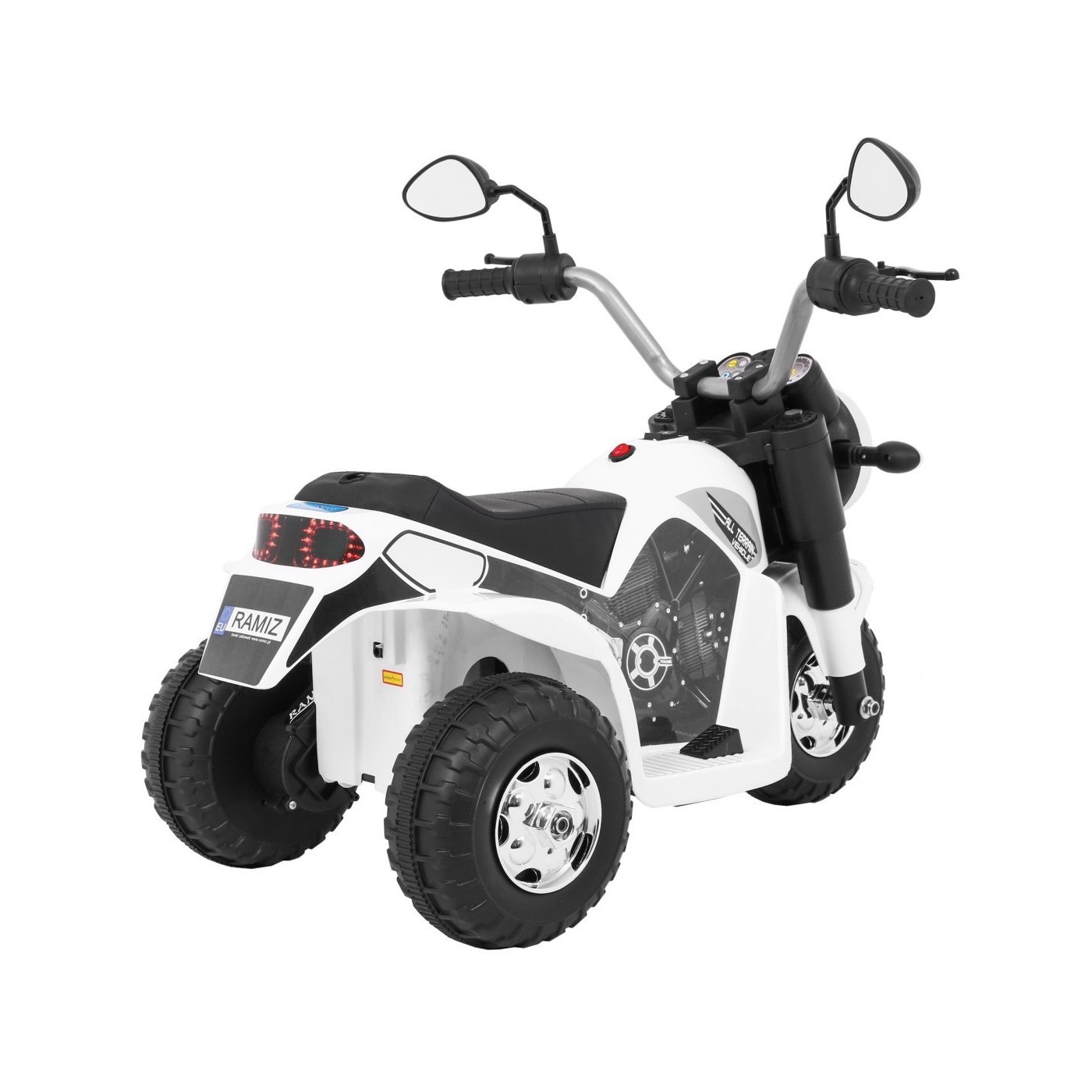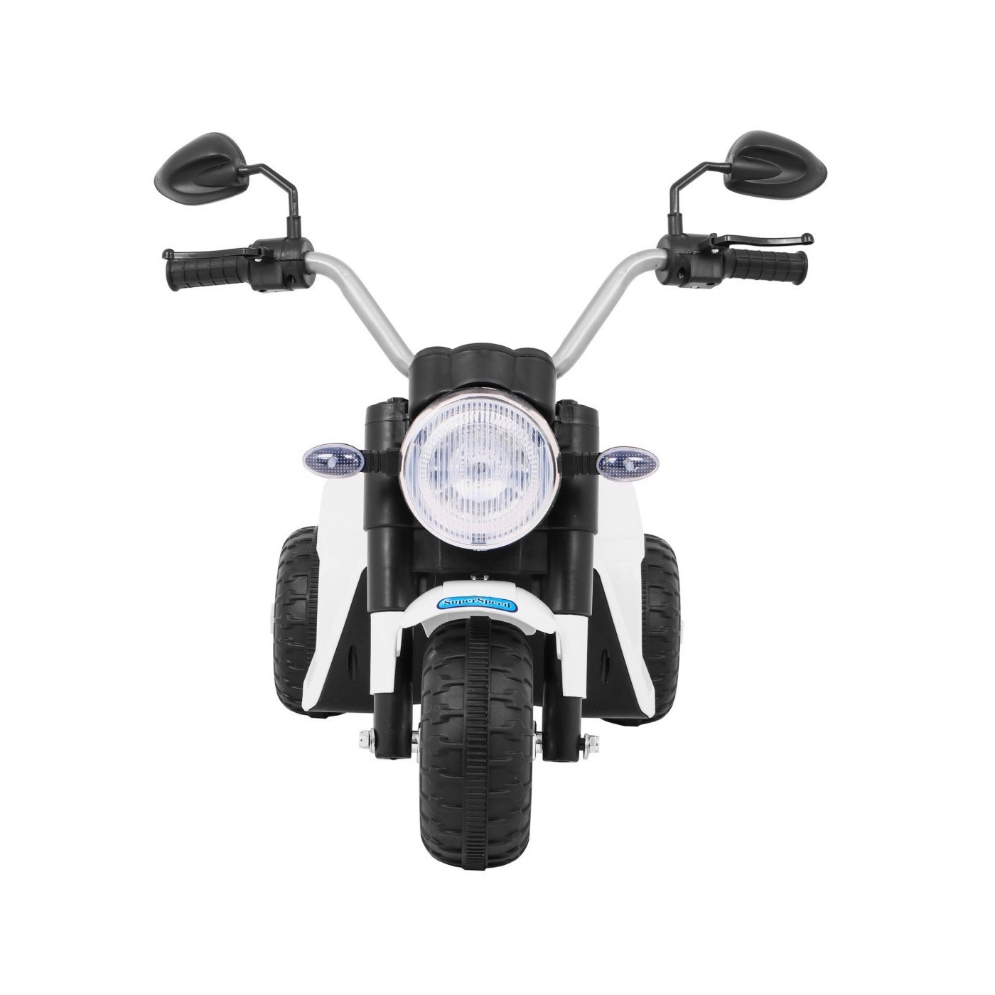 Motorka MiniBike na batériu pre deti Biela + Zvuky + LED svetlá + Ekokoža