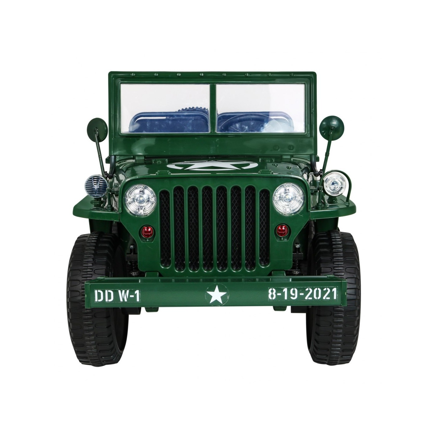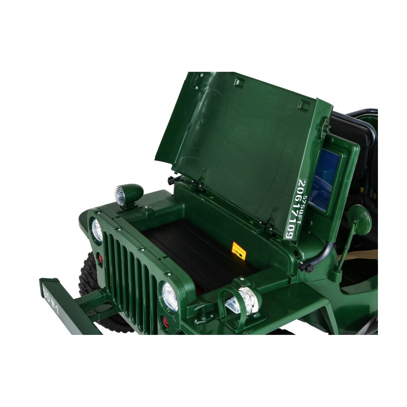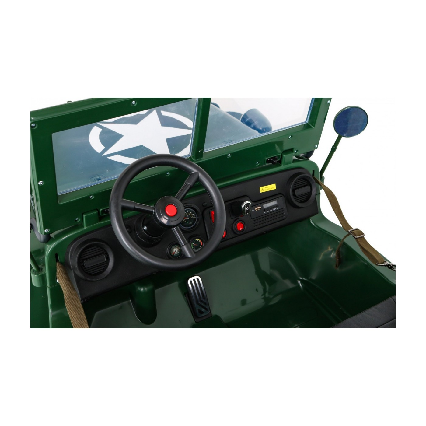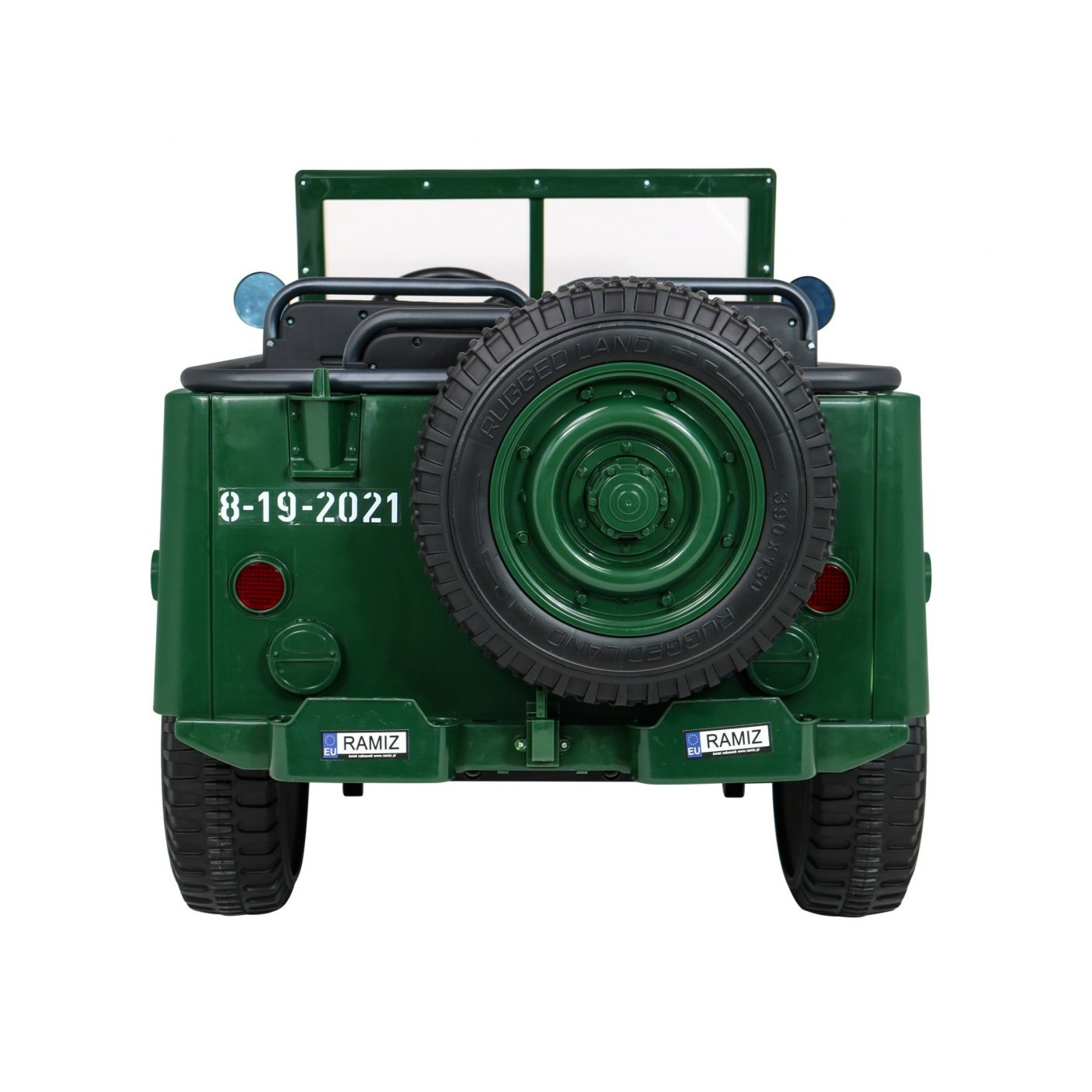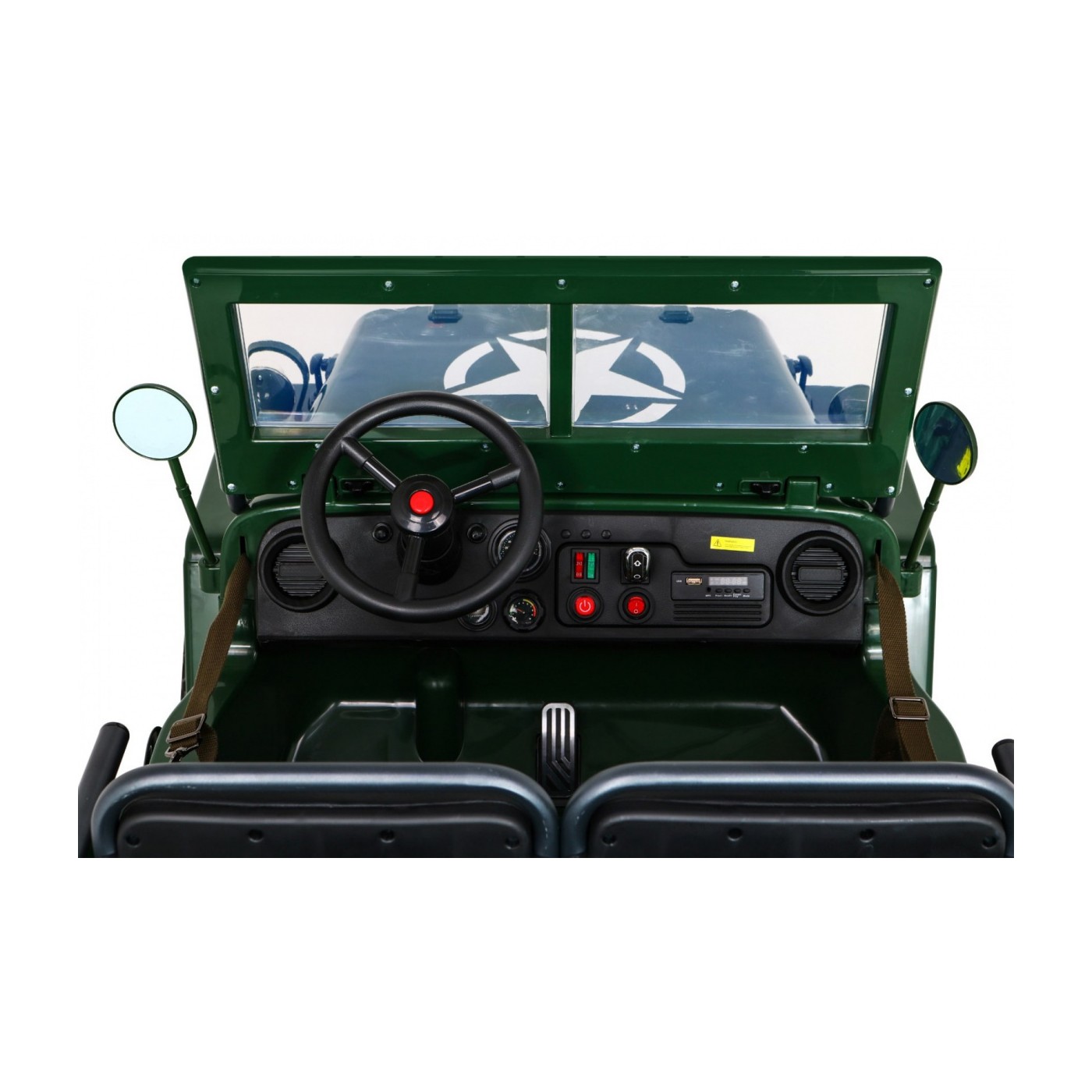 Vojenské Autíčko Retro Strong pre 3 deti Zelený + Pohon 4x4 + Úložné priestory + EVA + Pomalý štart + MP3 LED