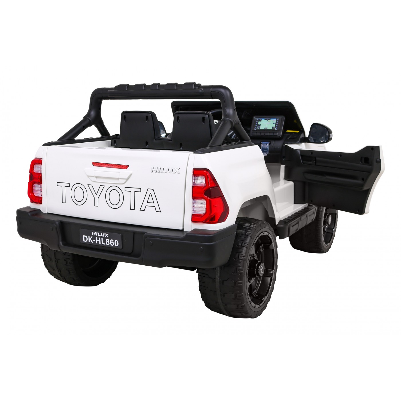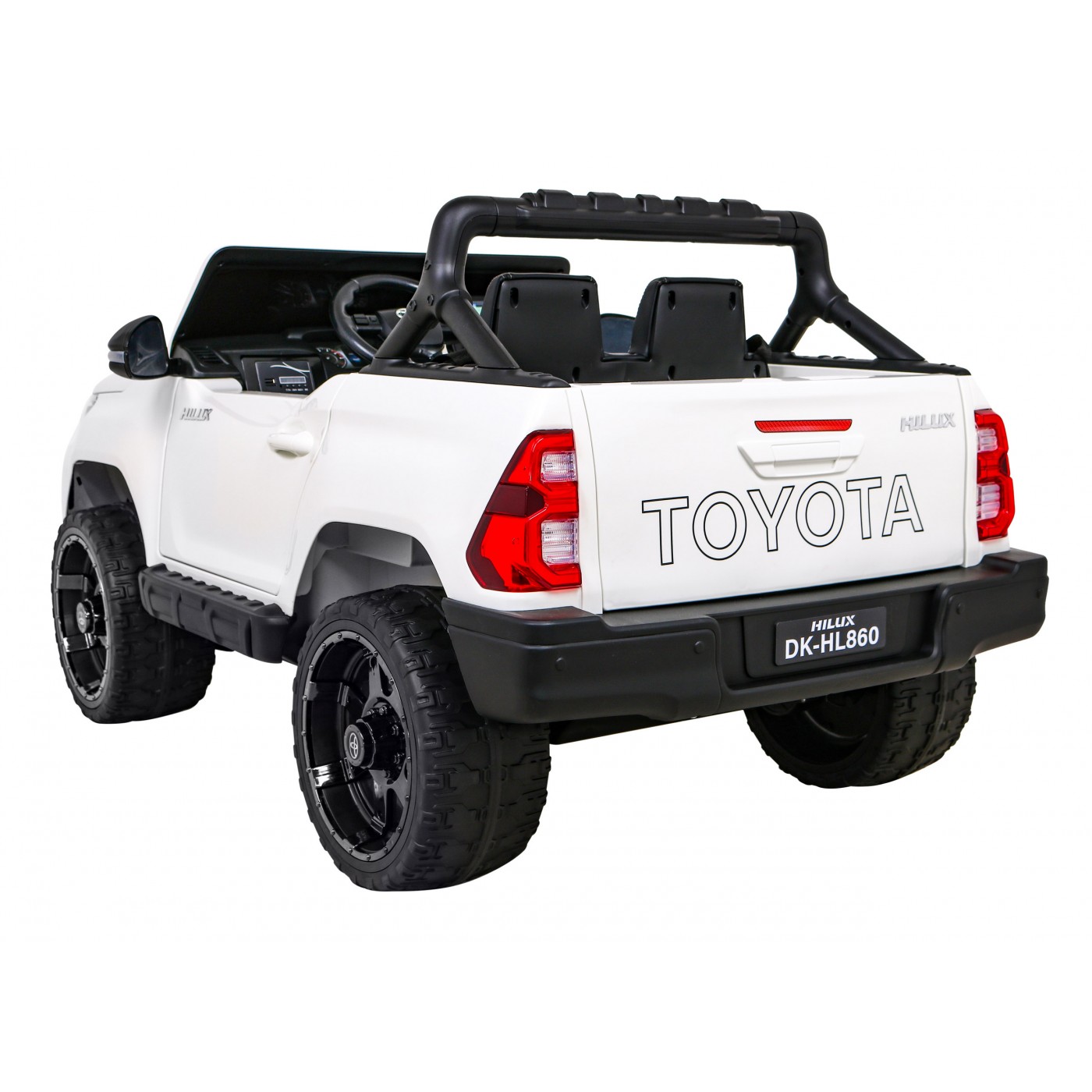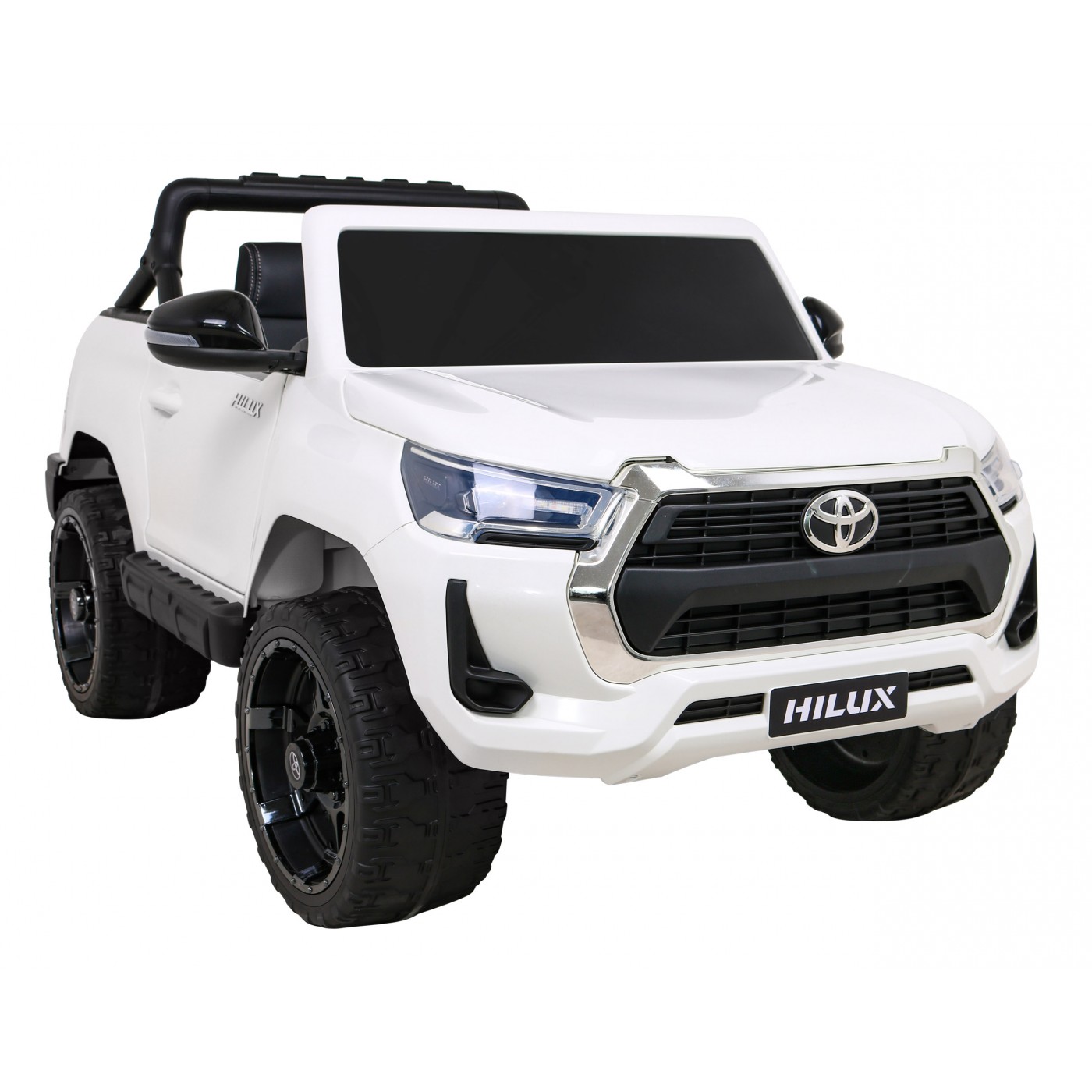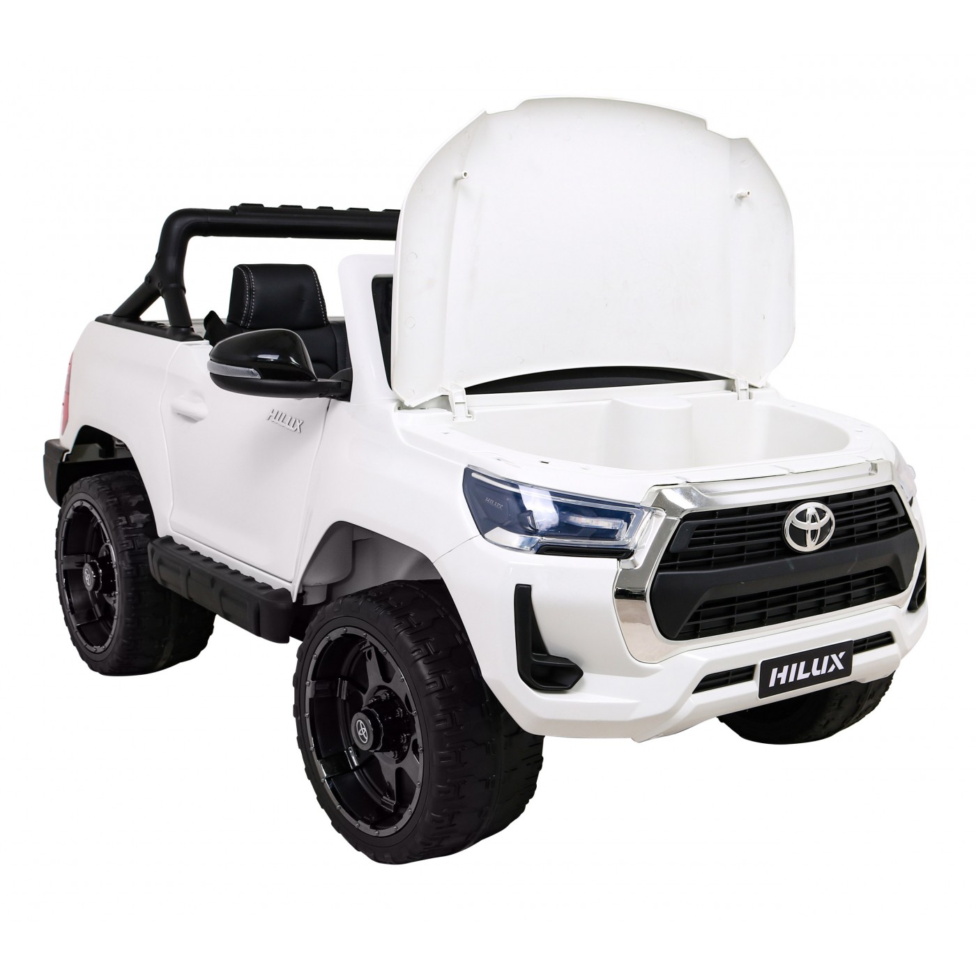 Toyota Hilux na batériu pre deti Biela + Pohon 4x4 + Ovládač + 2 batožinové priestory + Rádio MP3 + LED