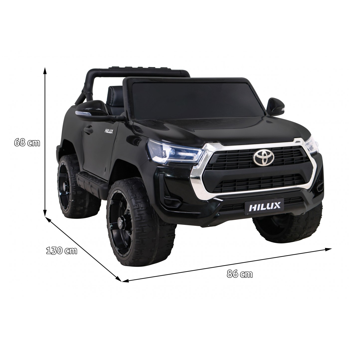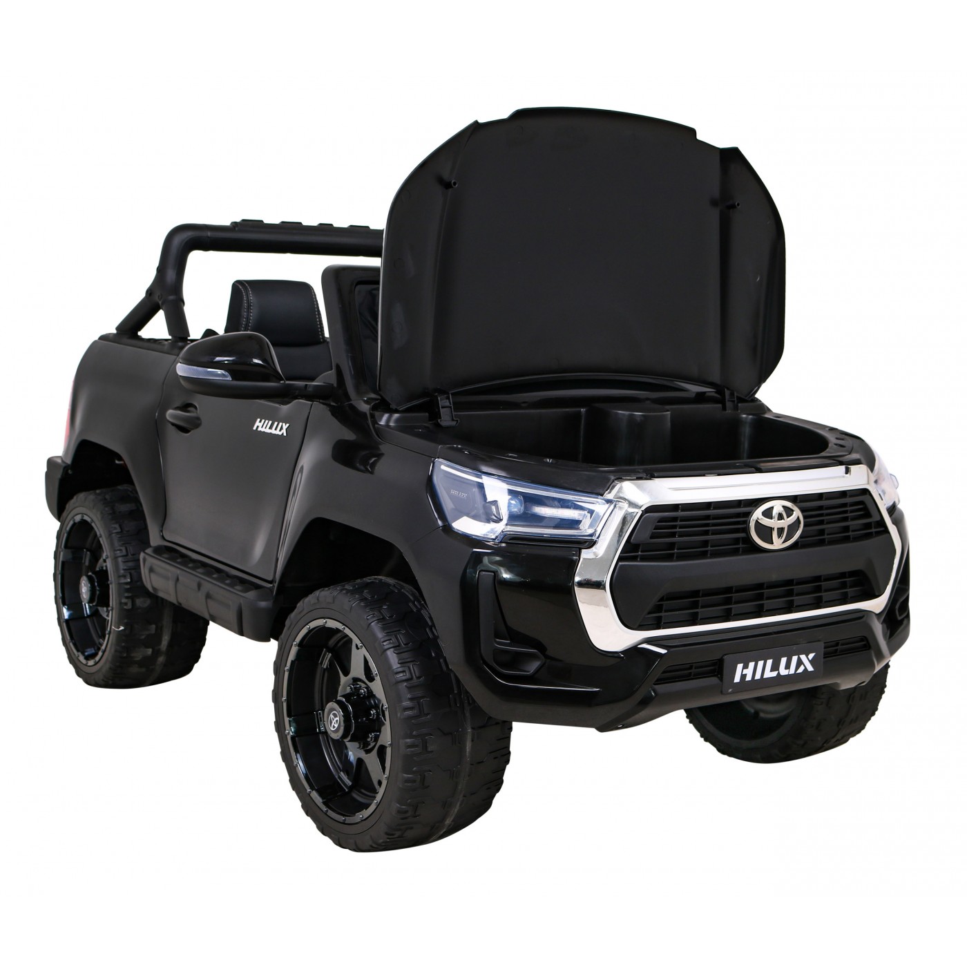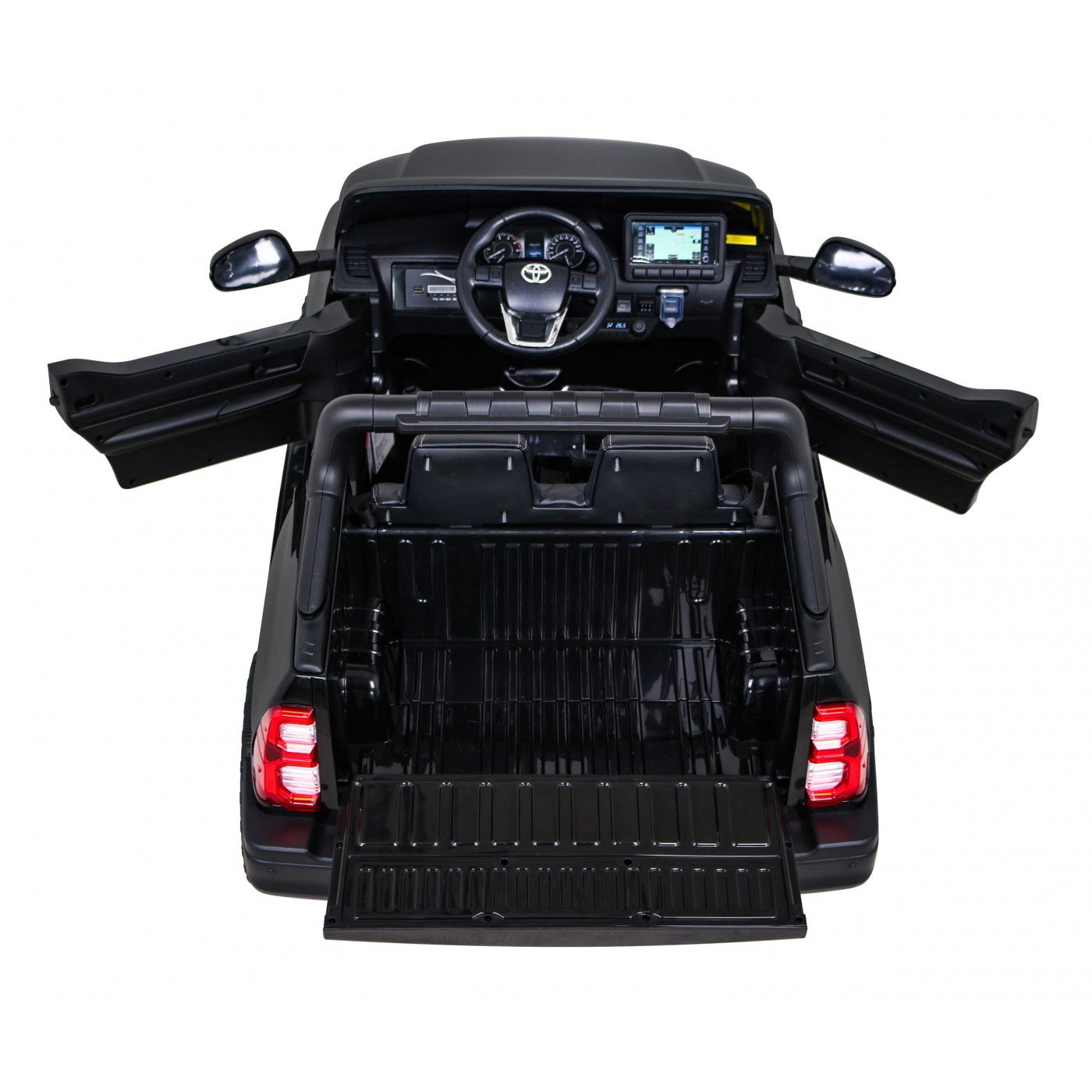 Toyota Hilux na batériu pre deti Čierna + Pohon 4x4 + Ovládač + 2 batožinové priestory + Rádio MP3 + LED