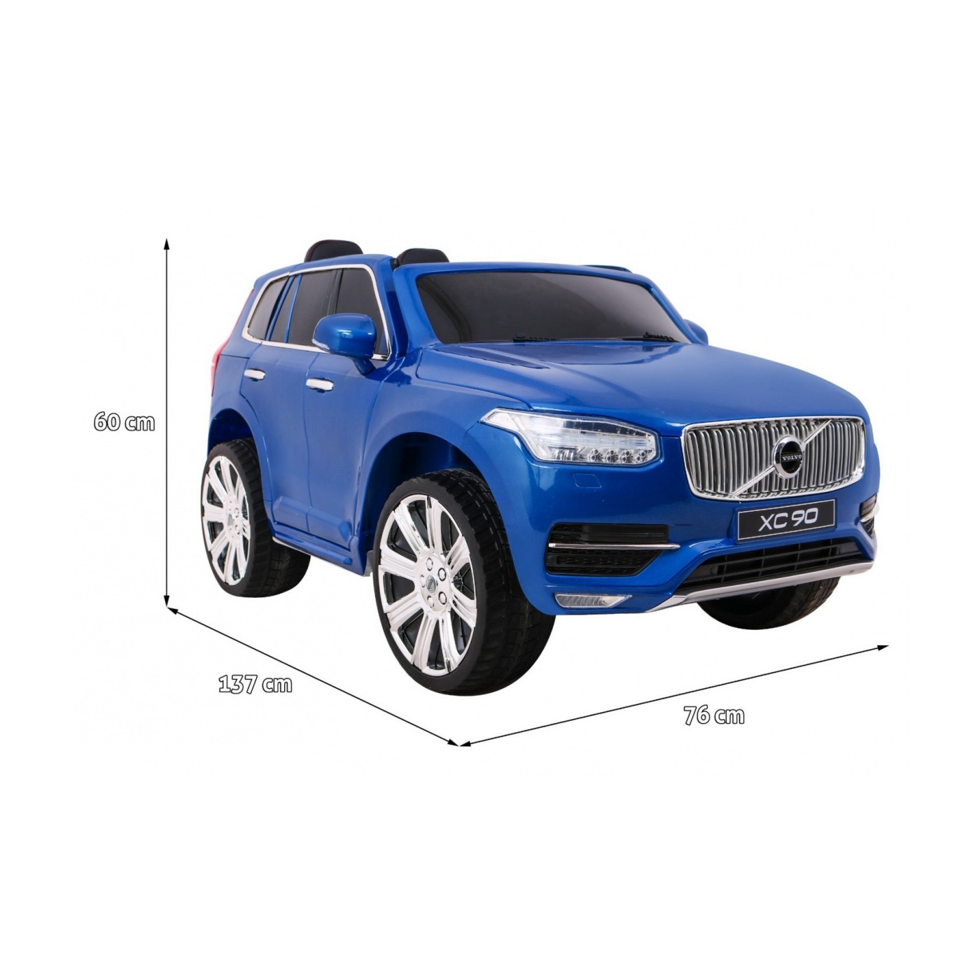 Volvo XC90 na batériu pre deti Lak Modrý + Ovládač + Batožinový priestor + EVA + Pomalý štart + Rádio MP3 + LED