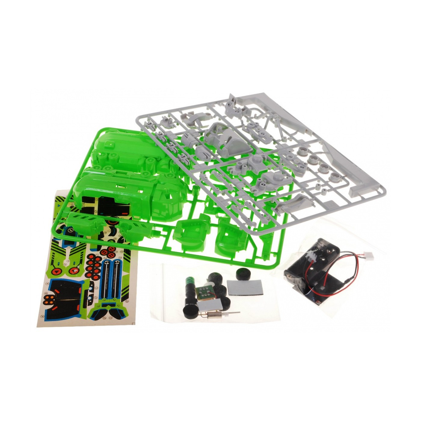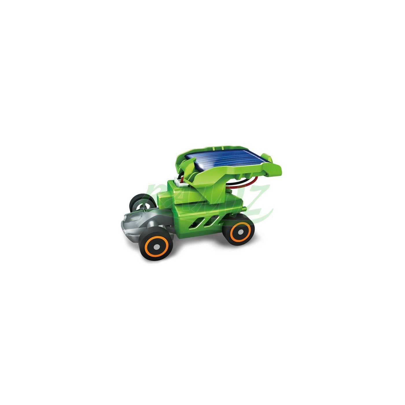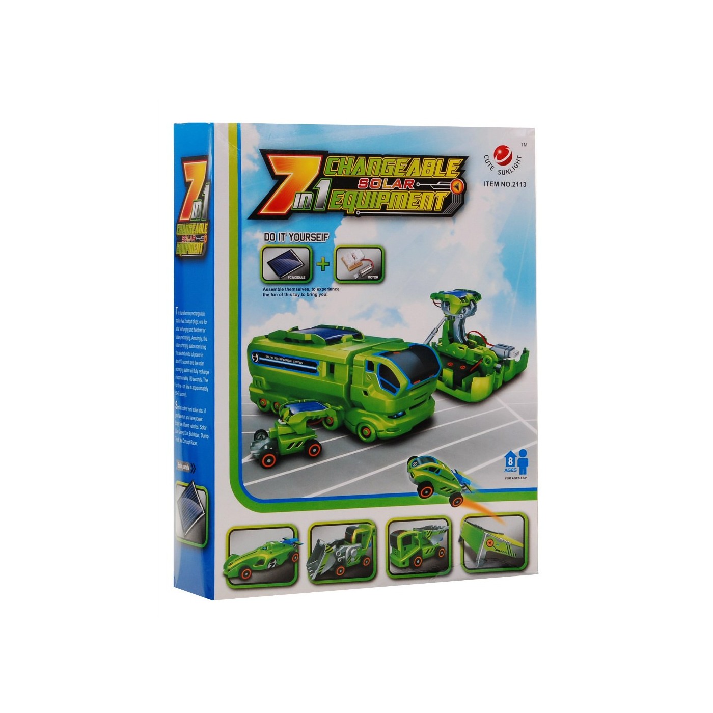 | Solarne pojazdy – zestaw 7 w 1 - to edukacyjna zabawka do samodzielnego składania, zasilana światłem słonecznym. Do skonstruowania zestawu nie potrzeba żadnego kleju czy narzędzi. Poszczególne elementy składamy na zatrzask. W pierwszej kolejności musimy złożyć moduł panelu słonecznego i silniczka. Pozostałe elementy możemy modyfikować w zależności od tego jaką konstrukcję obecnie składamy. W zestawie znajduje się mikrobateria oraz dodatkowy pojemnik na baterie typu AAA (2 baterie mieszczą się w pojemniku). Dzięki mikrobaterii jesteśmy w stanie naładować pojazd w ciągu 3 minut by korzystać około 50-60 sekund w miejscu nieoświetlonym. Zmieniając moduł mikrobaterii na pojemnik z bateriami 2x AAA jesteśmy w stanie korzystać z pojazdu bez potrzeby wystawiania na słońce.
