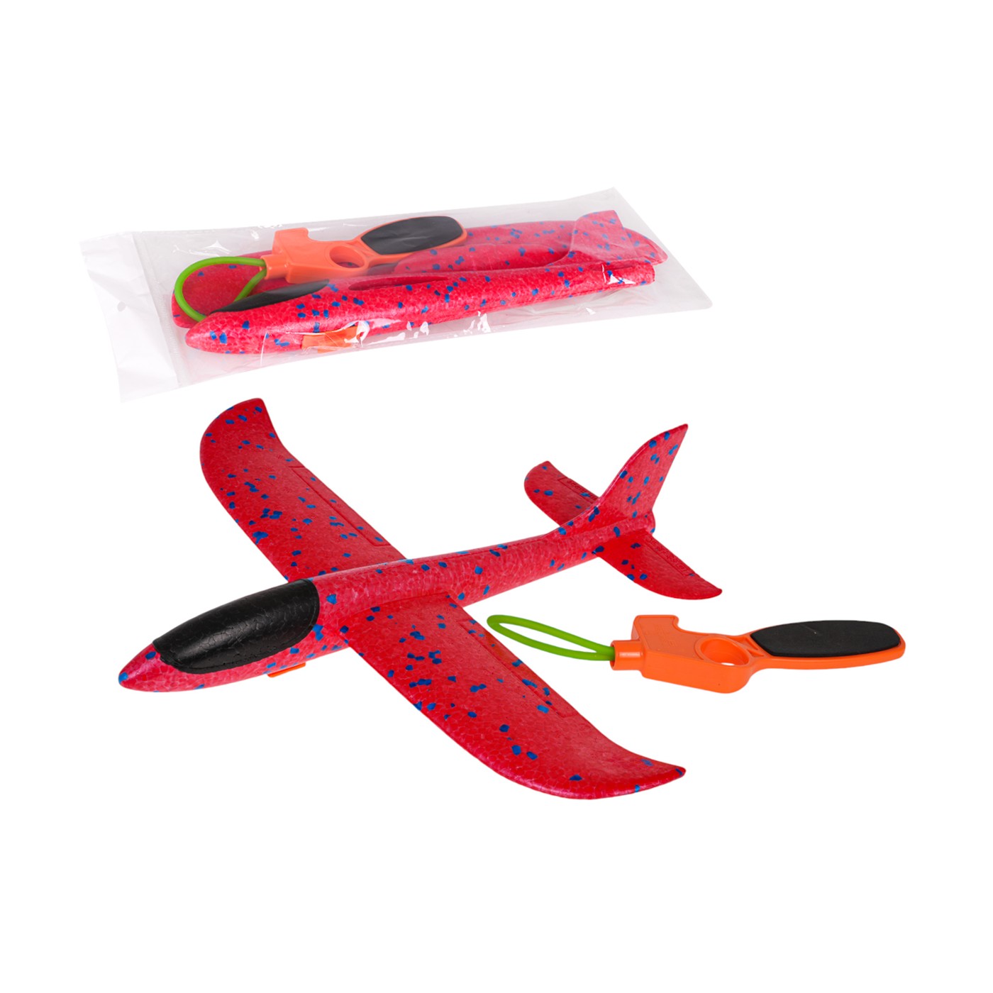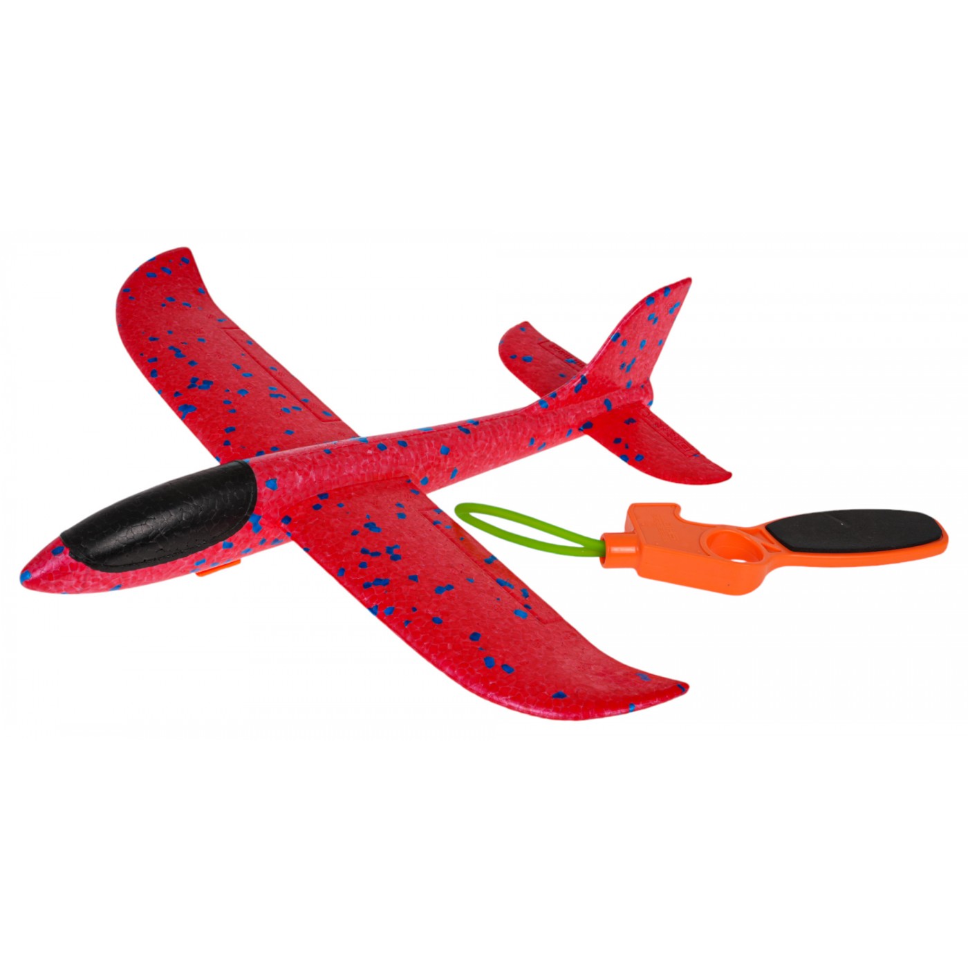 Polystyrénové lietadlo s červeným ručným spúšťačom