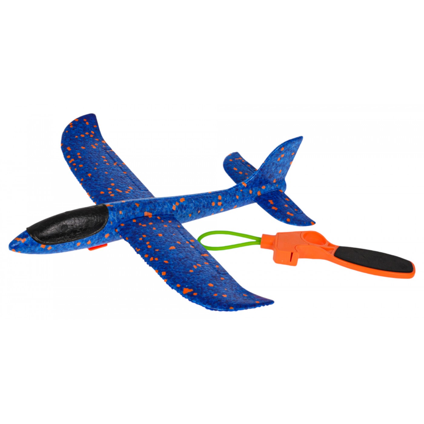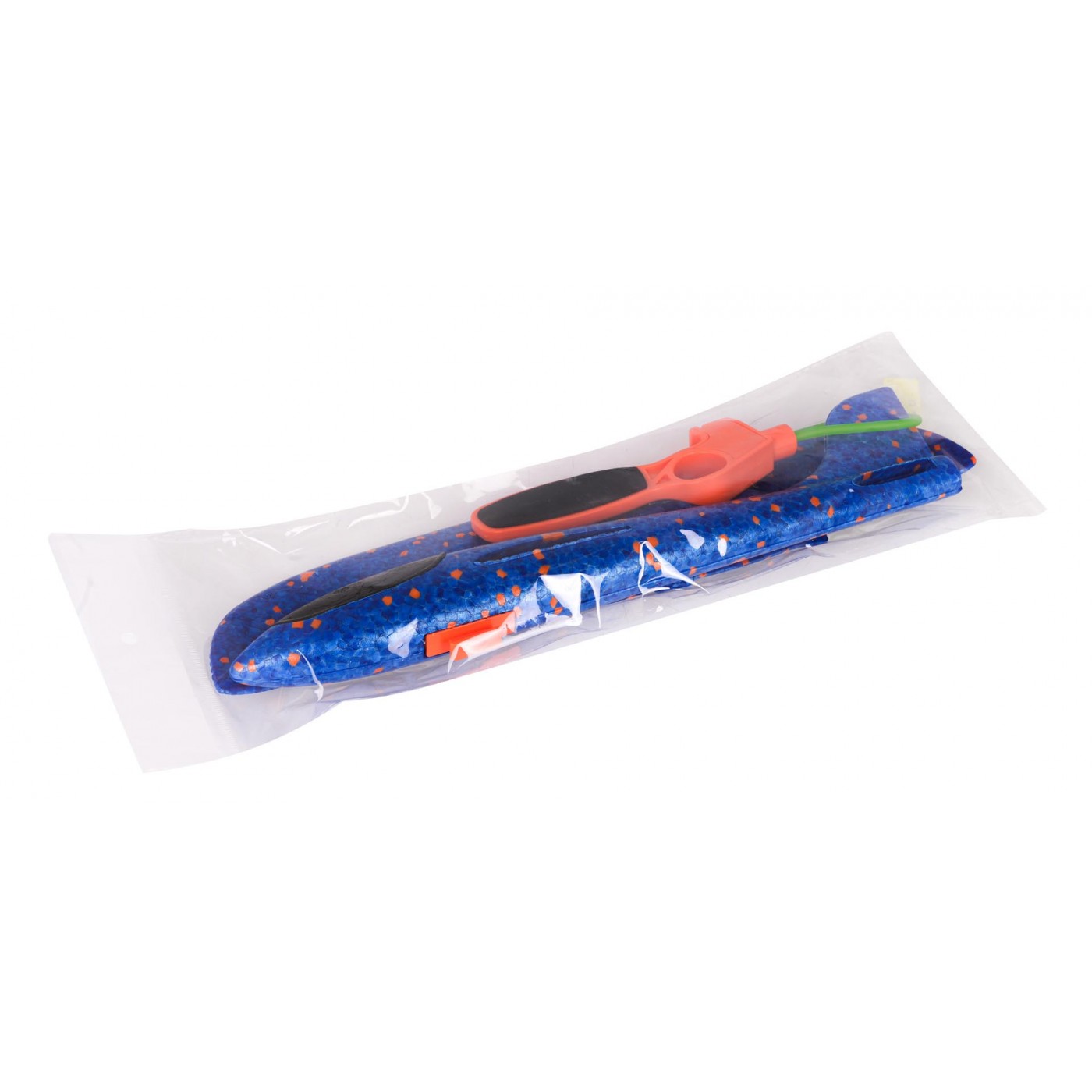 Polystyrénové lietadlo s modrým ručným spúšťačom