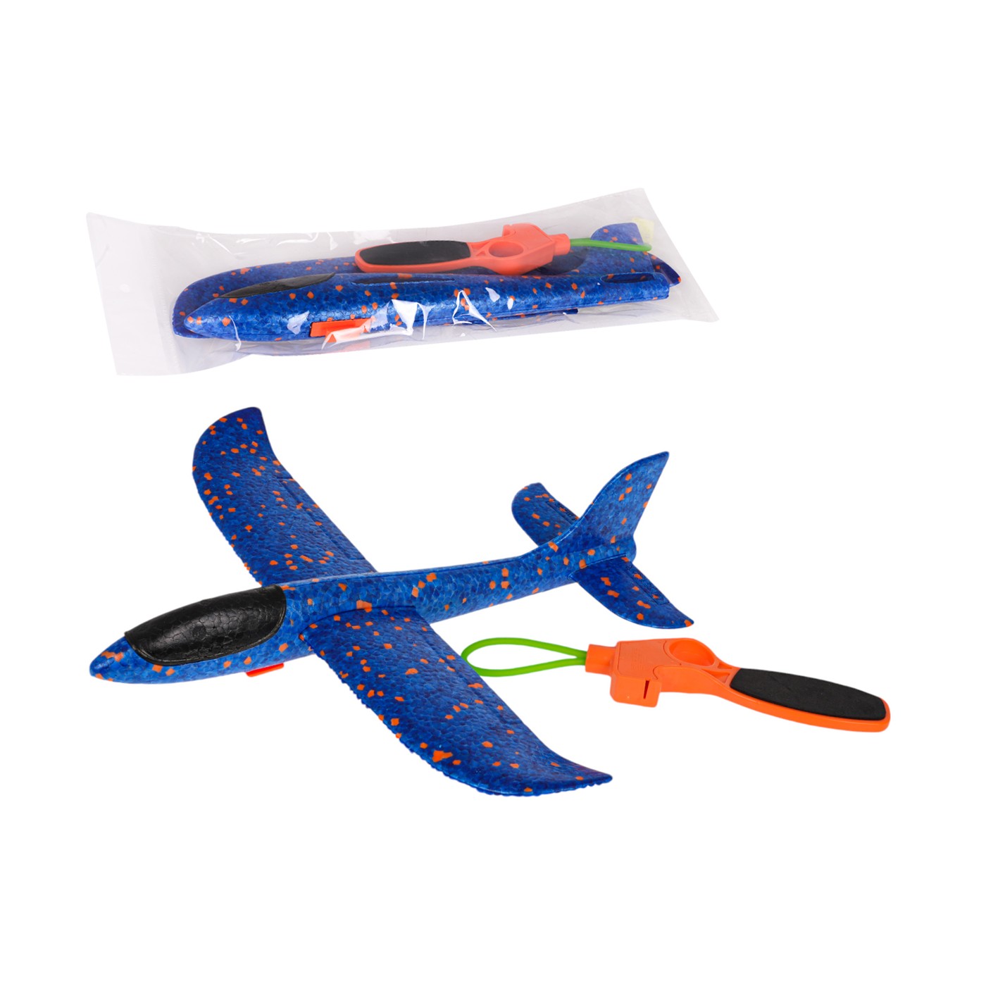 Polystyrénové lietadlo s ručným spúšťačom, oranžové