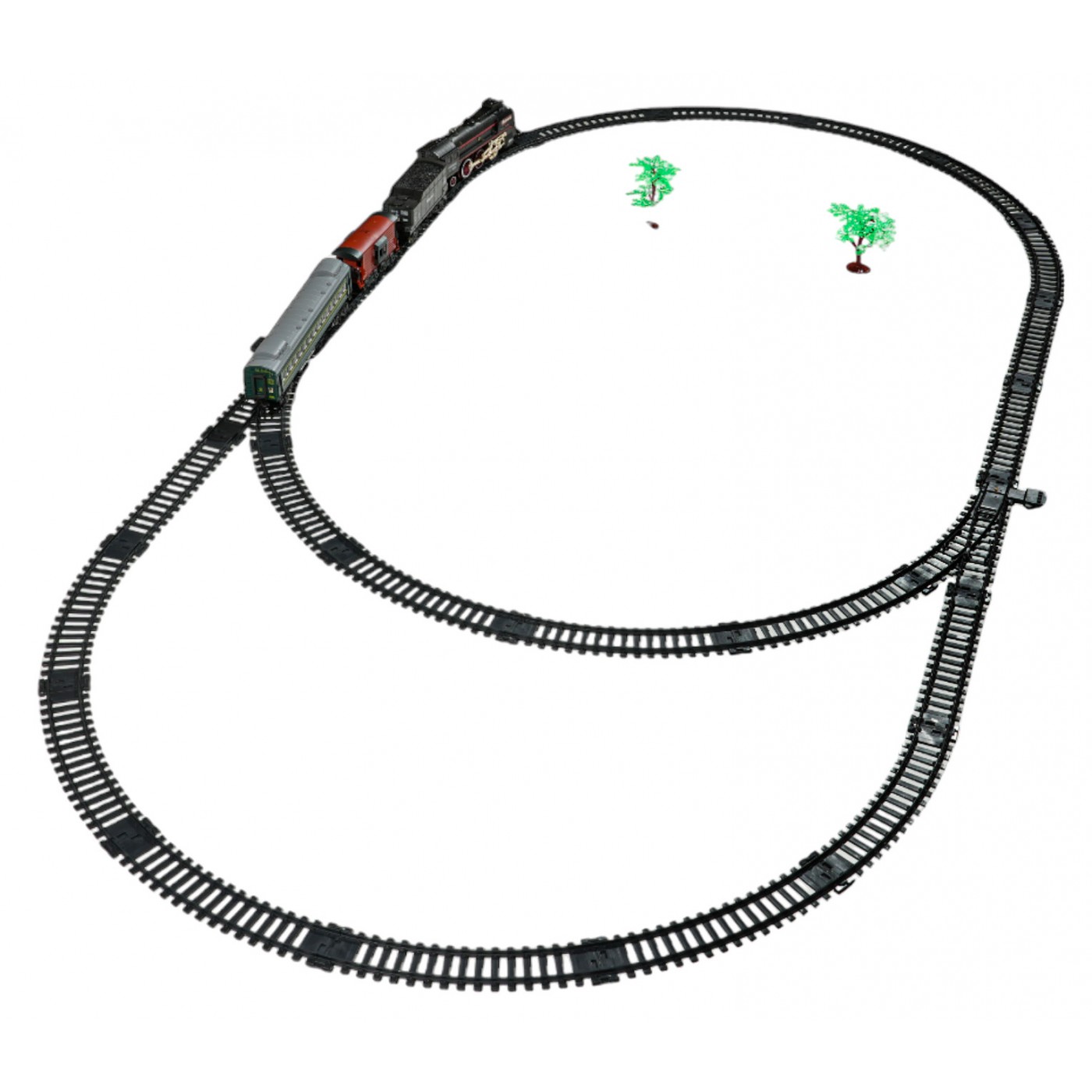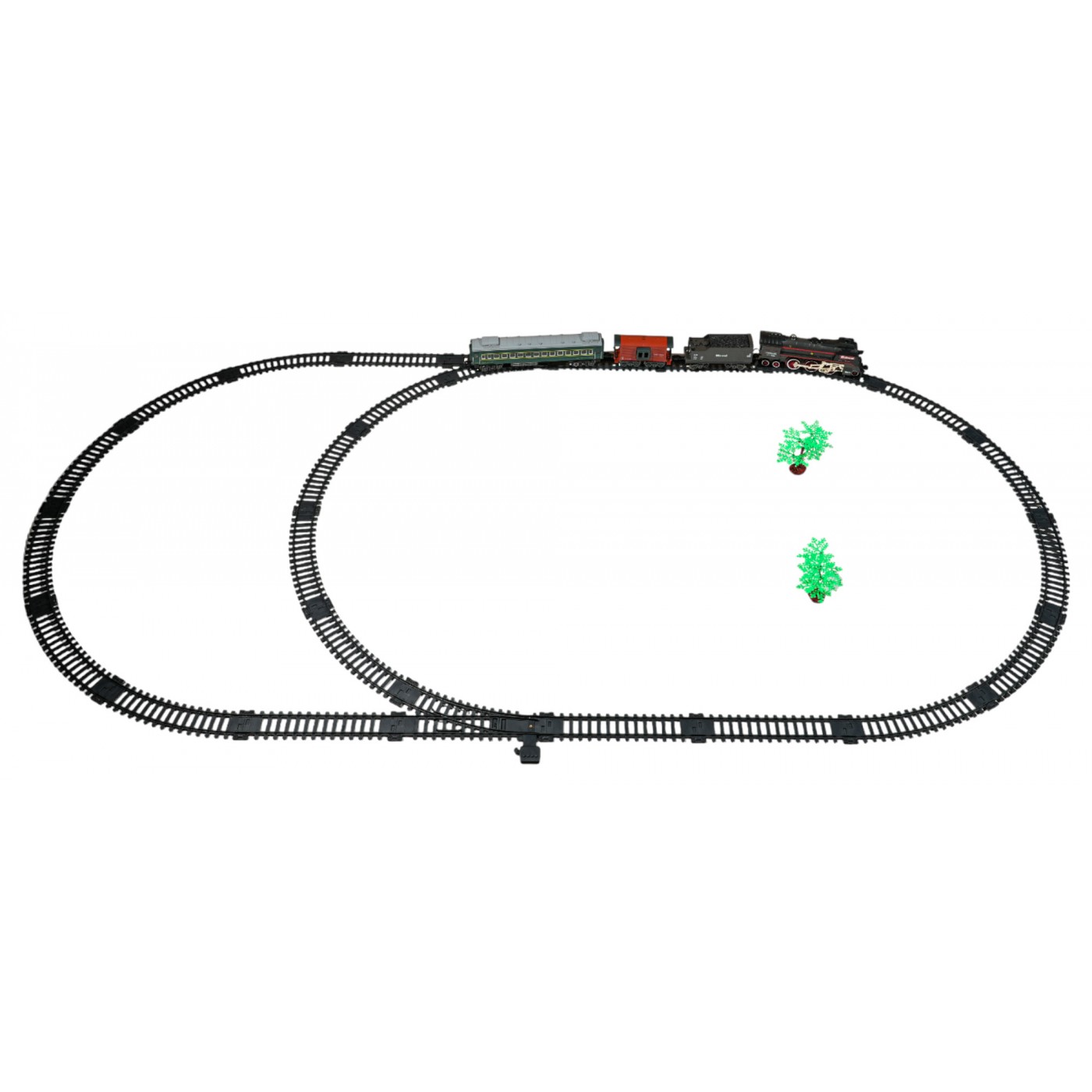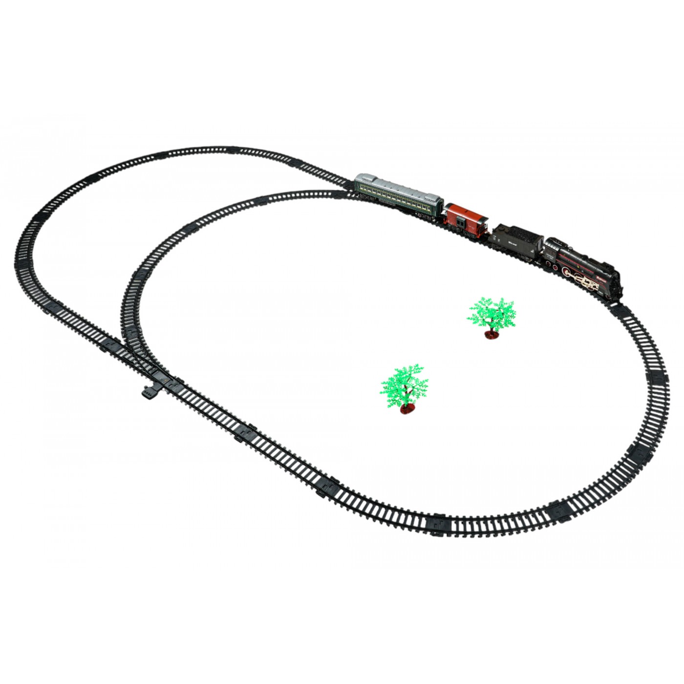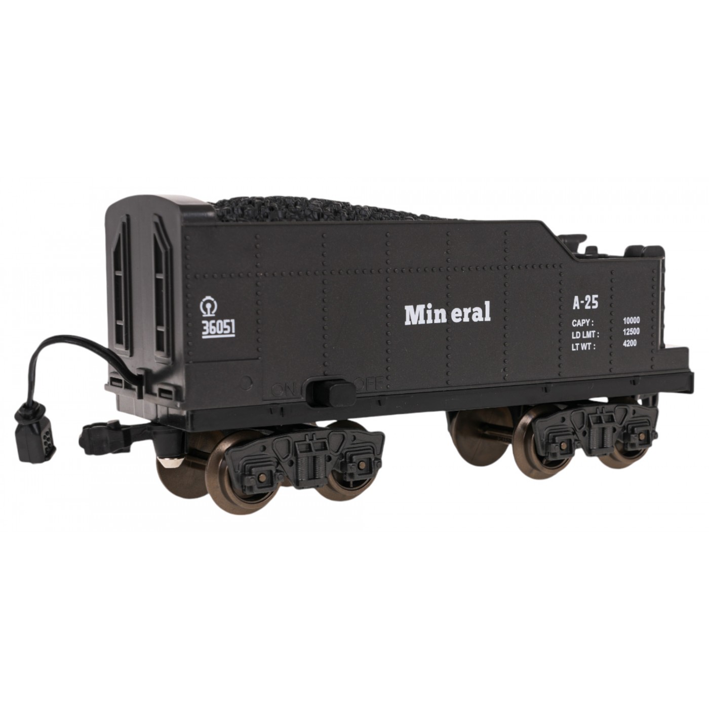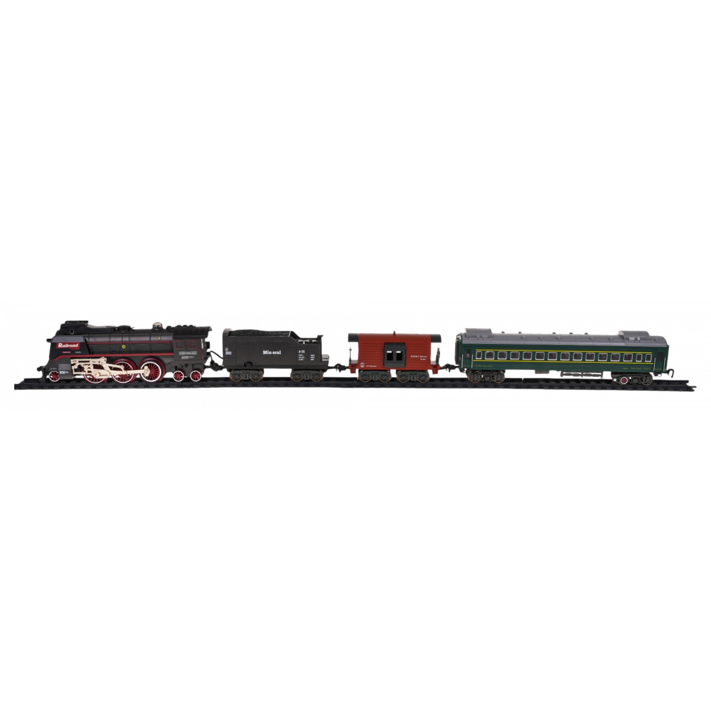 - lokomotíva, - osobné auto, - vagón na uhlie, - zvierací voz, - koľajové komponenty, - USB nabíjací kábel, - skrutkovač, - vodná pipeta, - USB nabíjací kábel. |