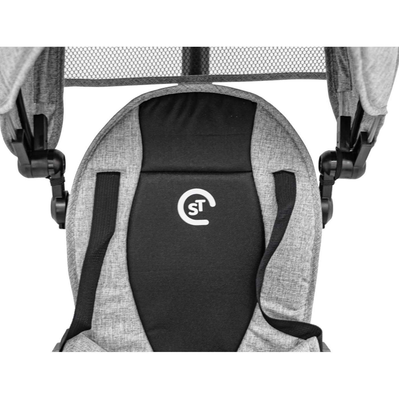 - veľmi veľká plocha na sedenie; 27 x 38 cm, - mäkký poťah sedadla, - trojbodové, nastaviteľné bezpečnostné pásy (dodatočné chrániče pásu a rozkrokového popruhu), - odnímateľná, penová ochranná bariéra, - rýchle odnímanie kapucne a striešky (západky), - možnosť otáčania sedadla. |