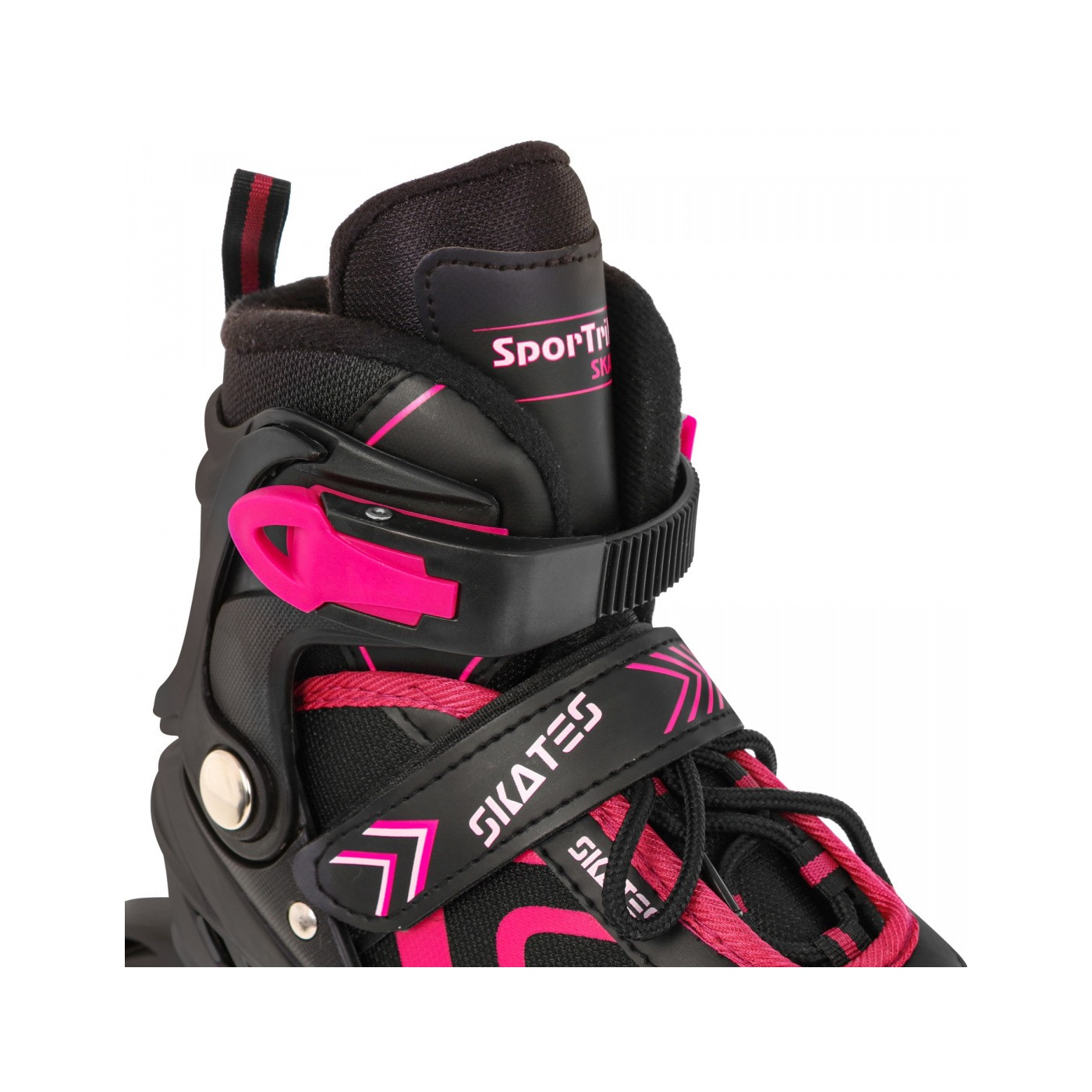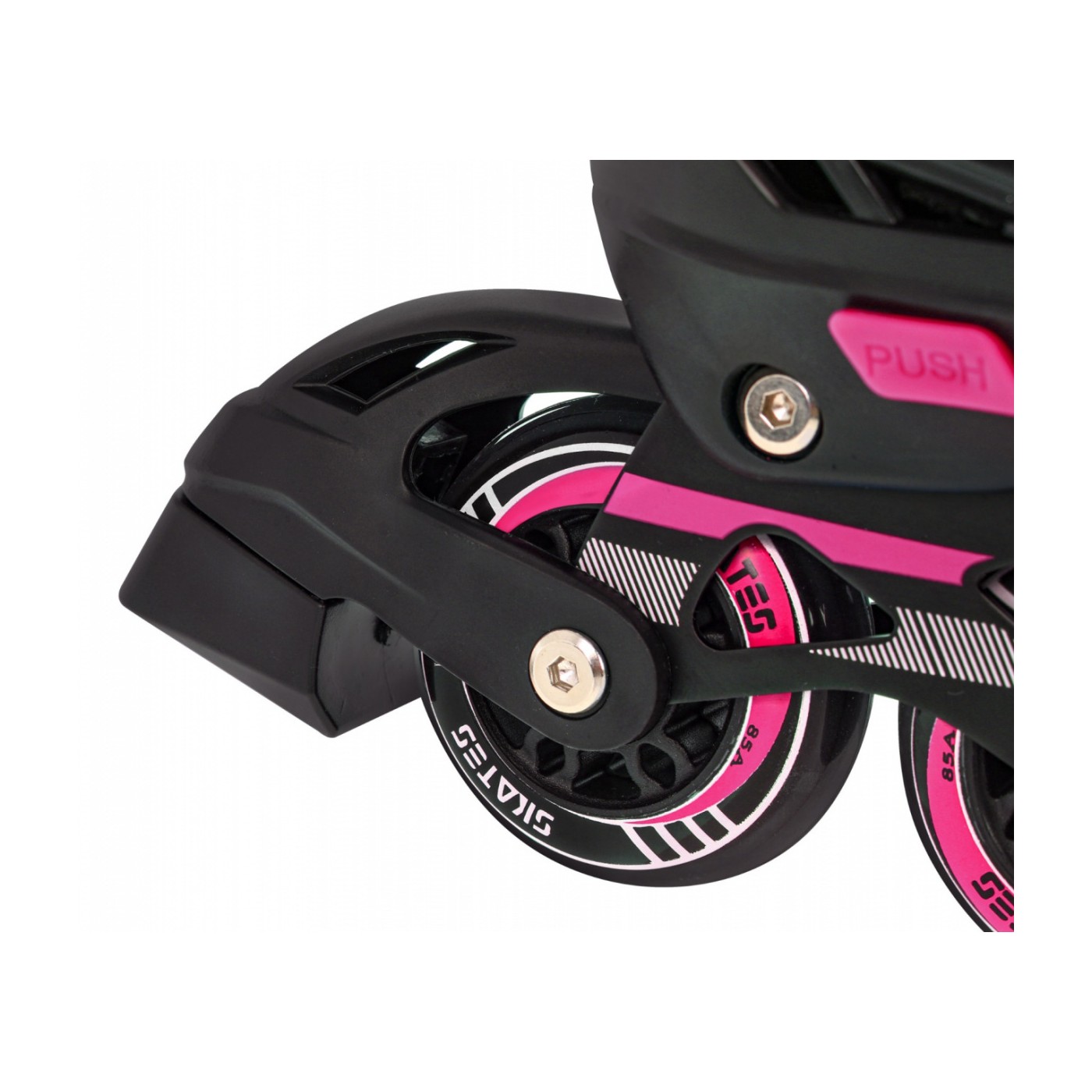 | Buty | - 5 stopniowy system regulacji rozmiaru za pomocą przycisku (39-43) - wewnętrzna długość buta od 24 cm do 27,5 cm, - półtwarda konstrukcja zapewniająca elastyczność buta i bezpieczeństwo kostki - zapięcie trzy sekwencyjne: - sznurowadła - pasek na rzep - klamra (regulacja + zabezpieczenie przed otwarciem) - hamulec w prawej rolce - system wentylacji - półprzepuszczalna membrana - wkładka profilowana - wkładka rolki wypełniona miękką pianką EVA pokryta zewnętrzna warstwą materiału Velvet |