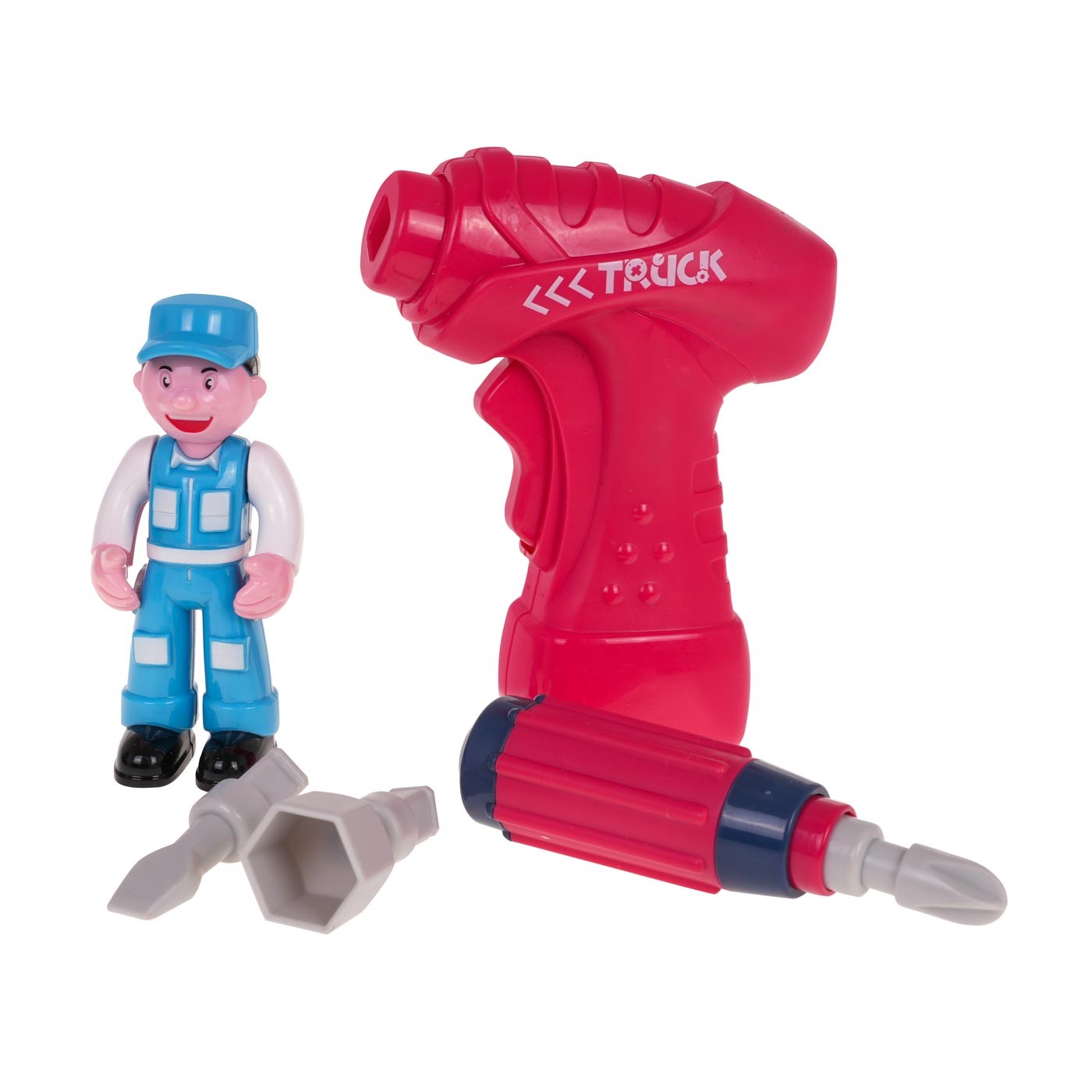 - rýpadlo cca 27 cm x 20,5 cm x 11,5 cm, - skrutkovač/vŕtačka cca 10 cm x 12,5 cm x 3,5 cm, - figúrka operátora rýpadla, cca 10 cm x 4,5 cm x 2,5 cm, - rukoväť skrutkovača cca 8 cm x 2,5 cm, - bity dlhé cca 5 cm, - balenie cca 26 cm x 19,5 cm x 11,6 cm. |