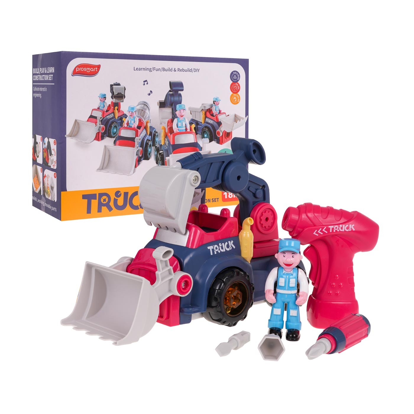 Farebný, interaktívny bager v rozloženom stave, pre deti od 18 mesiacov. Hračka je vyrobená z kvalitných materiálov bezpečných pre deti a v živých farbách. Vozidlo je možné ľubovoľne rozložiť a otočiť. Má zvukové efekty, po zapnutí počuť veselú melódiu a má svetelné efekty v podobe blikajúcich svetiel na kolieskach. Bager sa pohybuje všetkými smermi a keď narazí na prekážku, vyhne sa jej. Horná a spodná lyžica vozidla sa dá posúvať ručne. Okrem toho je rameno rýpadla pohyblivé o 360 stupňov. Keď je rýpadlo zapnuté, zadné rameno rýpadla sa jemne pohybuje doľava a doprava. Sada obsahuje príslušenstvo, ako je figúrka operátora bagra, vŕtačka/skrutkovač, skrutkovač a vymeniteľné bity na skrutkovač alebo skrutkovač. Skrutkovač/vŕtačka je napájaná 2 x AAA batériami (nie sú súčasťou balenia), bager je napájaný 3 x AAA batériami (nie sú súčasťou balenia).