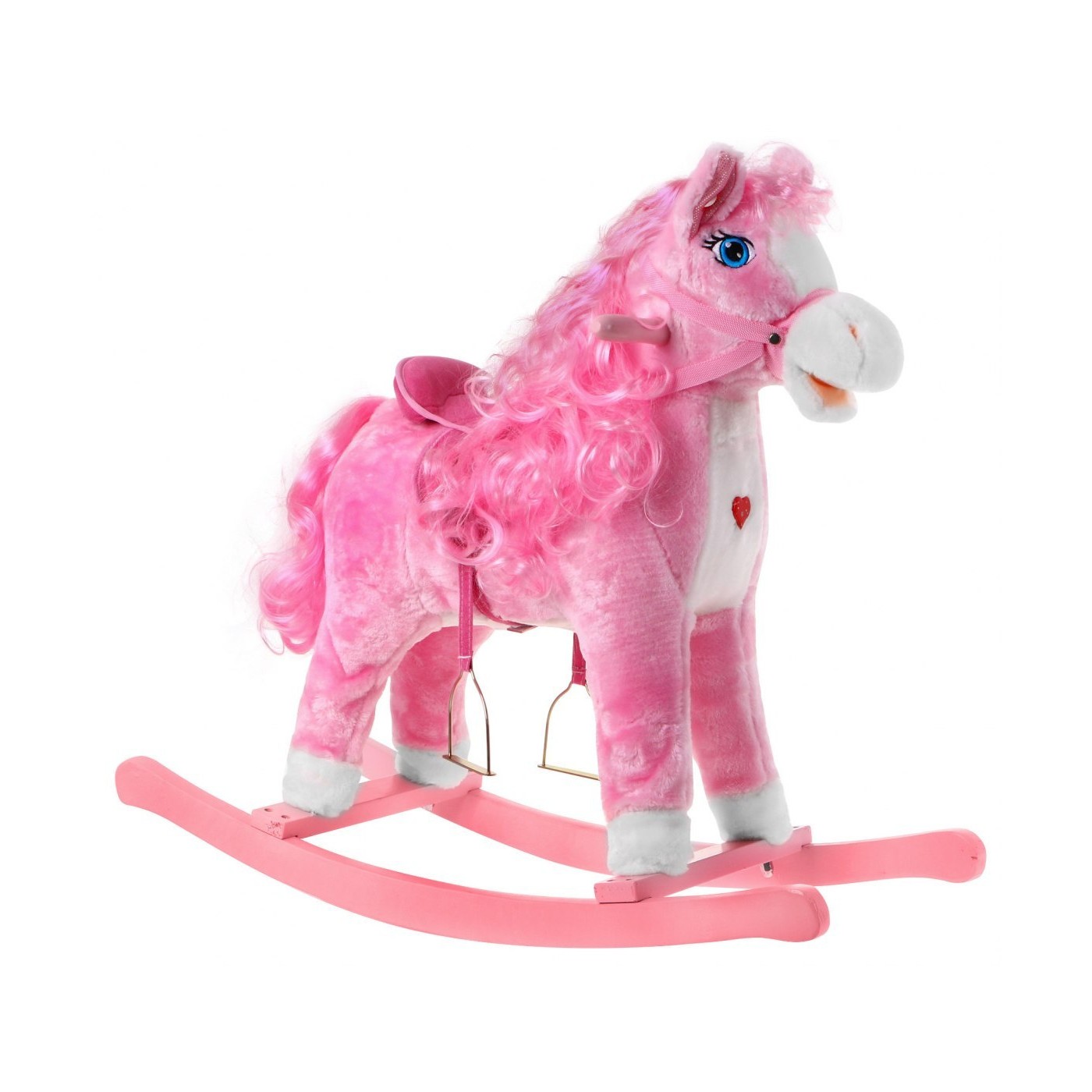Ružový hojdací pre dievčatá + Interaktívne funkcie + Plyš Drevo