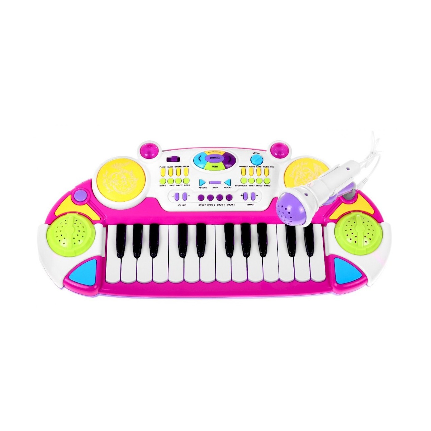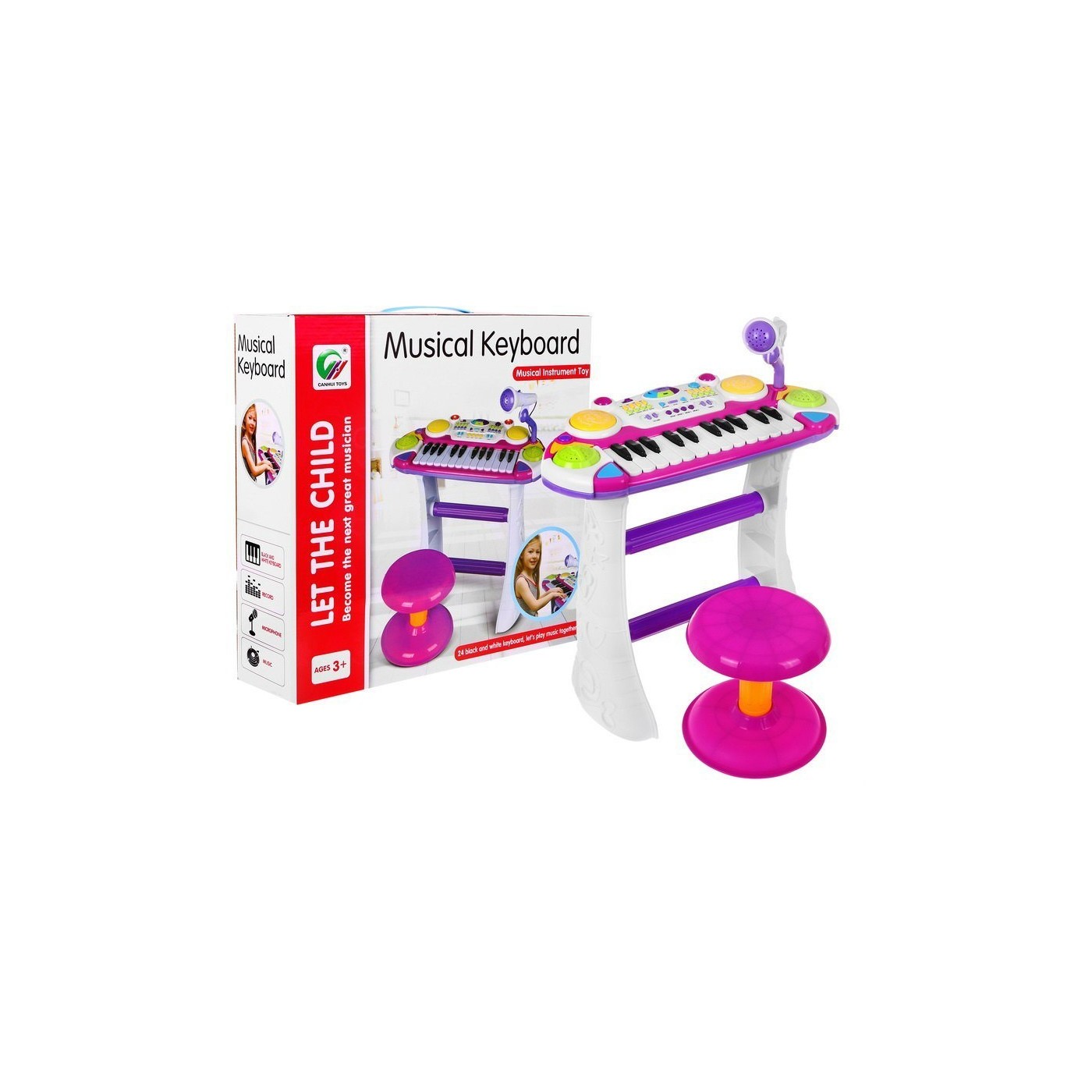Ružový hudobný set Kláves + Bubny + Mikrofón pre deti 3+ Svetlá + Zvuky 2 oktávy