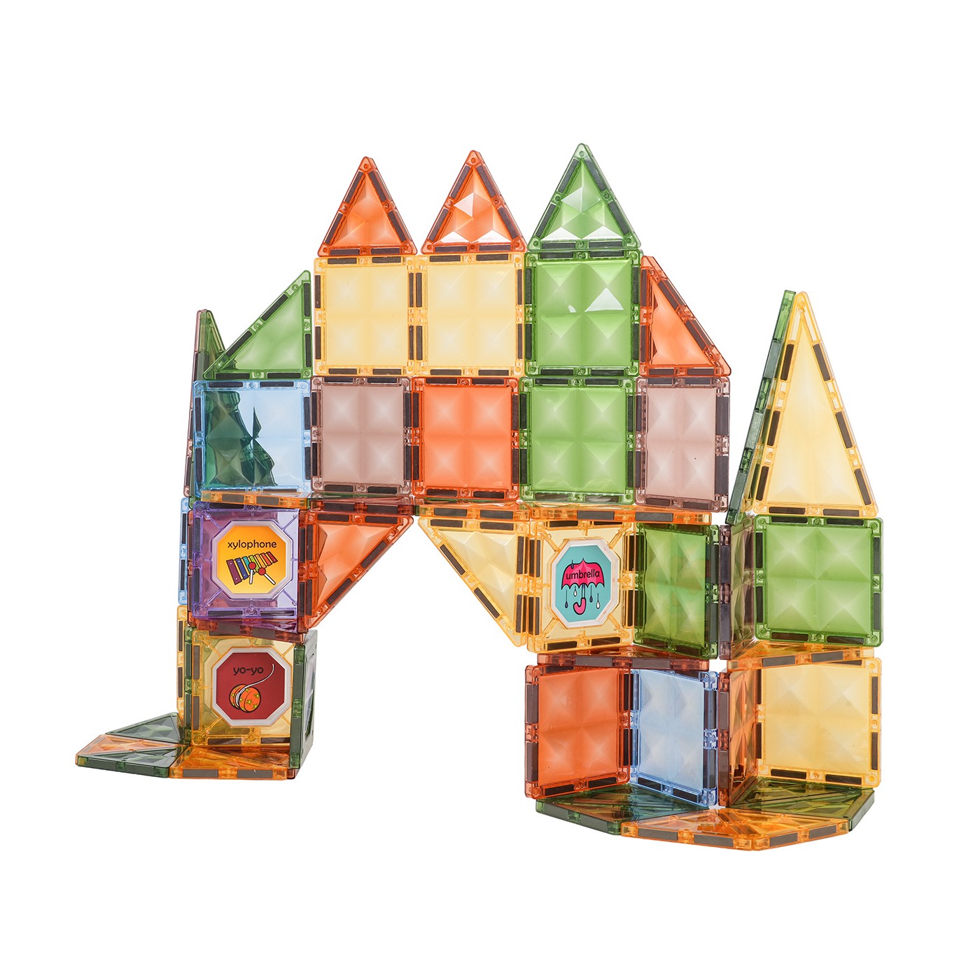 Komplexná sada magnetických kociek pre deti od troch rokov. Sada obsahuje magnetické kocky, nálepky a samolepky. Magnetické kocky sú vyrobené z odolného plastu a sú spojené pomocou neodýmových magnetov. Dajú sa spájať v rôznych konfiguráciách a pod rôznymi uhlami, čím vytvárajú 3D štruktúry. Skladanie kociek na seba pozitívne ovplyvňuje kreativitu a učí trpezlivosti a sústredeniu.