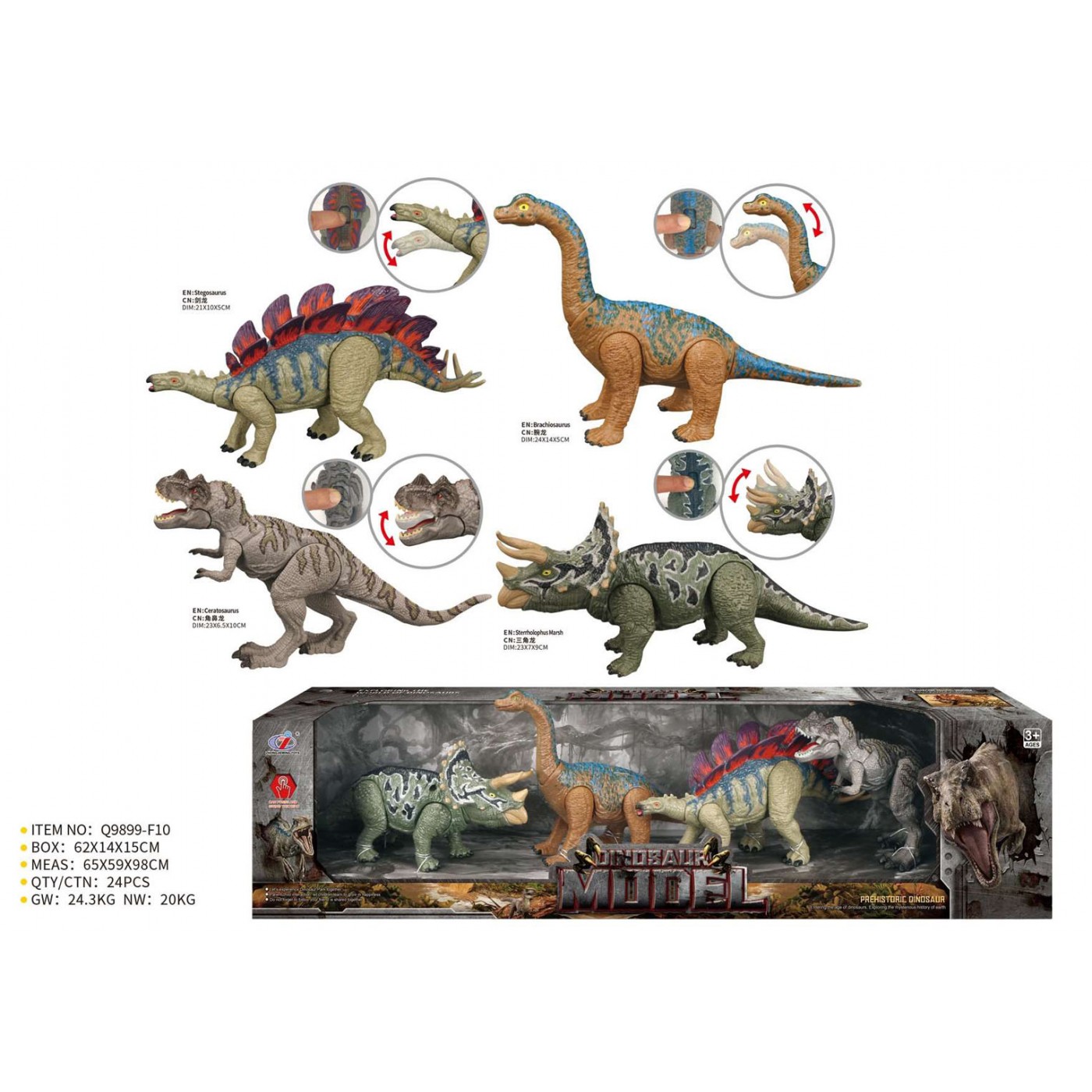 Sada 4 pohyblivých prvkov s dinosaurami