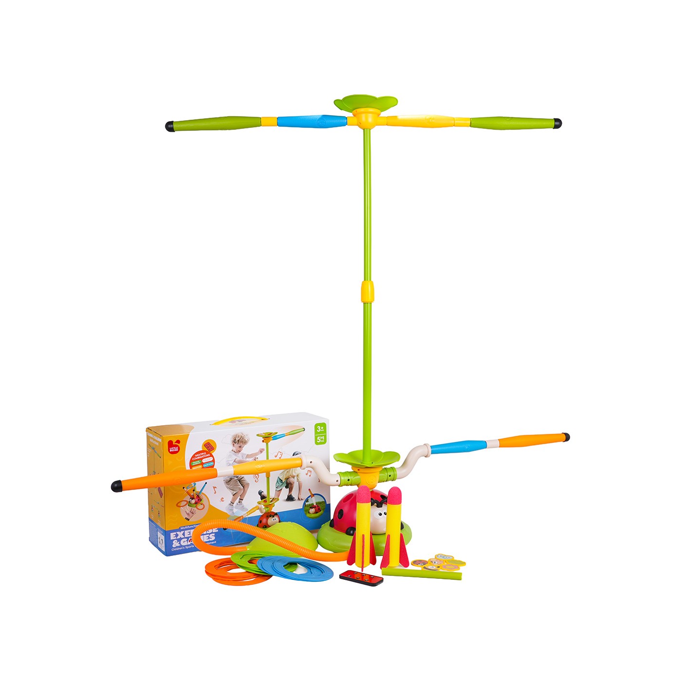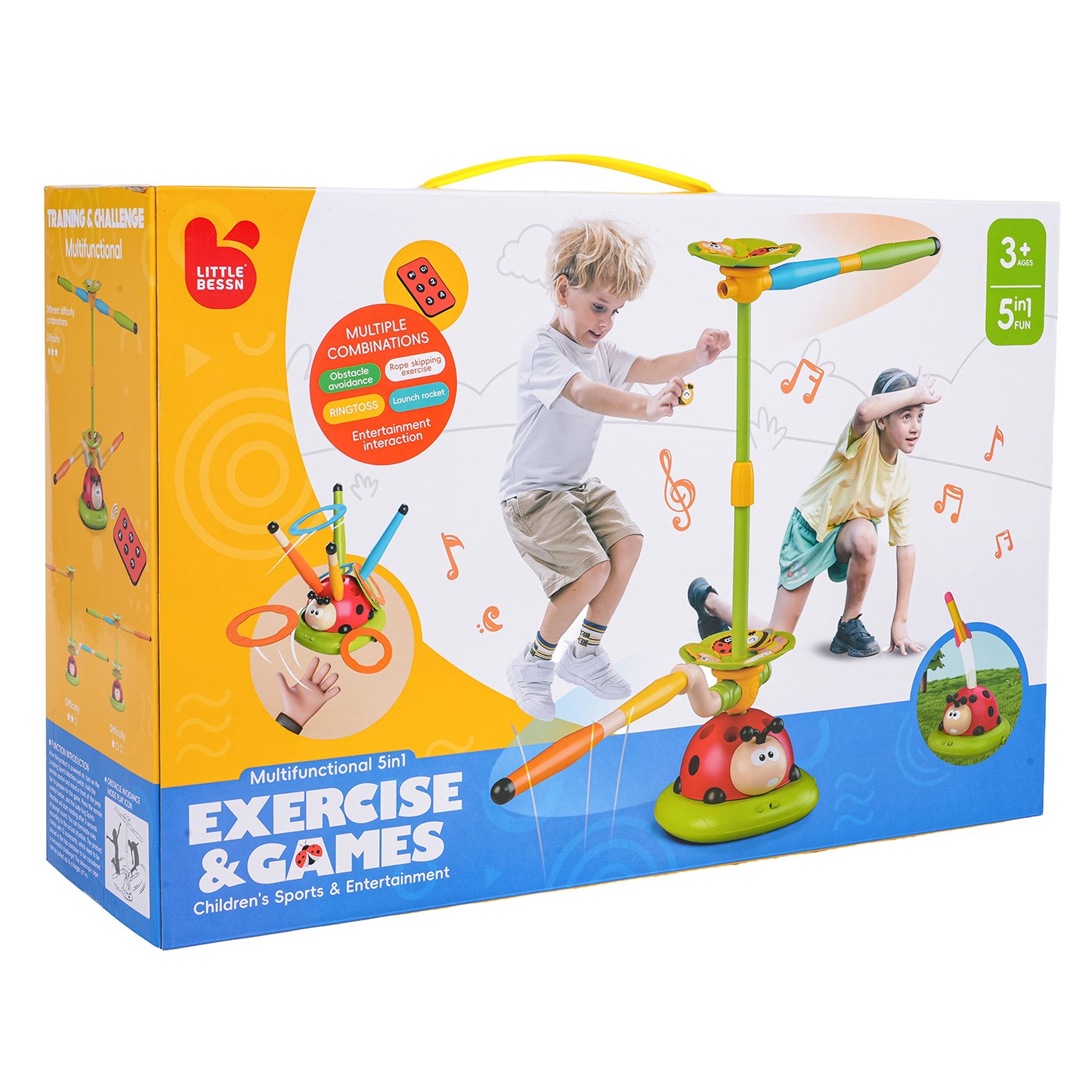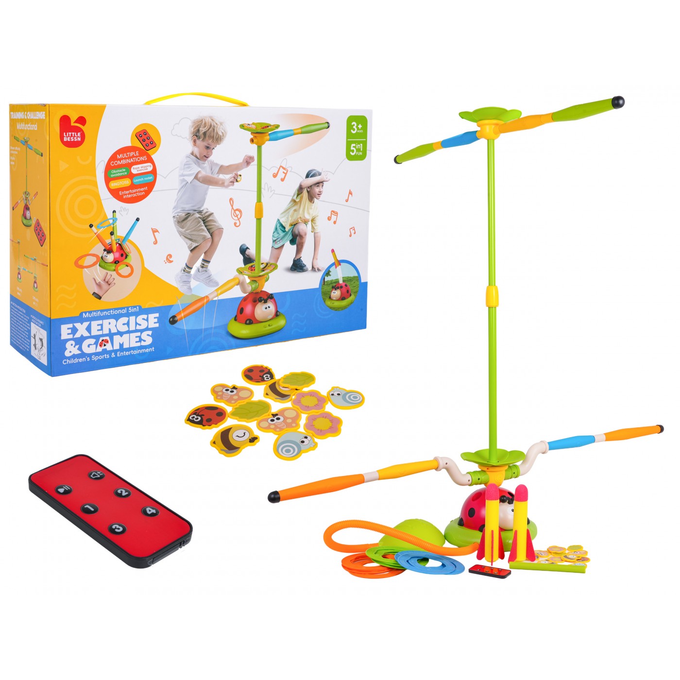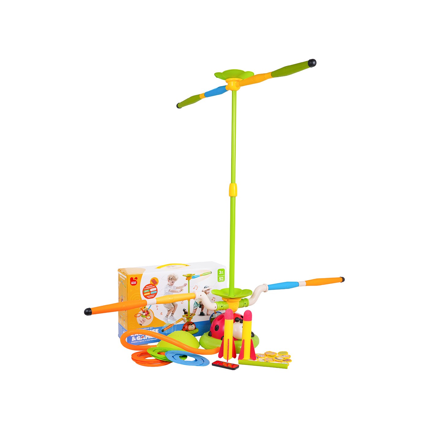 Funkcie sady: - vhodné pre deti od troch rokov, - vyrobené z najkvalitnejších materiálov, - živé farby spracovania, - sada ponúka 5 hier na výber: automaticky sa otáčajúce švihadlo, raketa vystrelená do vzduchu, hra hádzania na cieľ, hra vyhýbania sa prekážkam, hra vyhýbania sa prekážkam a hra zbierania zvieratiek. - možnosť ovládať úroveň obtiažnosti pomocou diaľkového ovládača, ktorý je súčasťou sady, - možnosť zabaviť sa pri hudbe, - skvelá sada na trávenie aktívneho času vonku. |