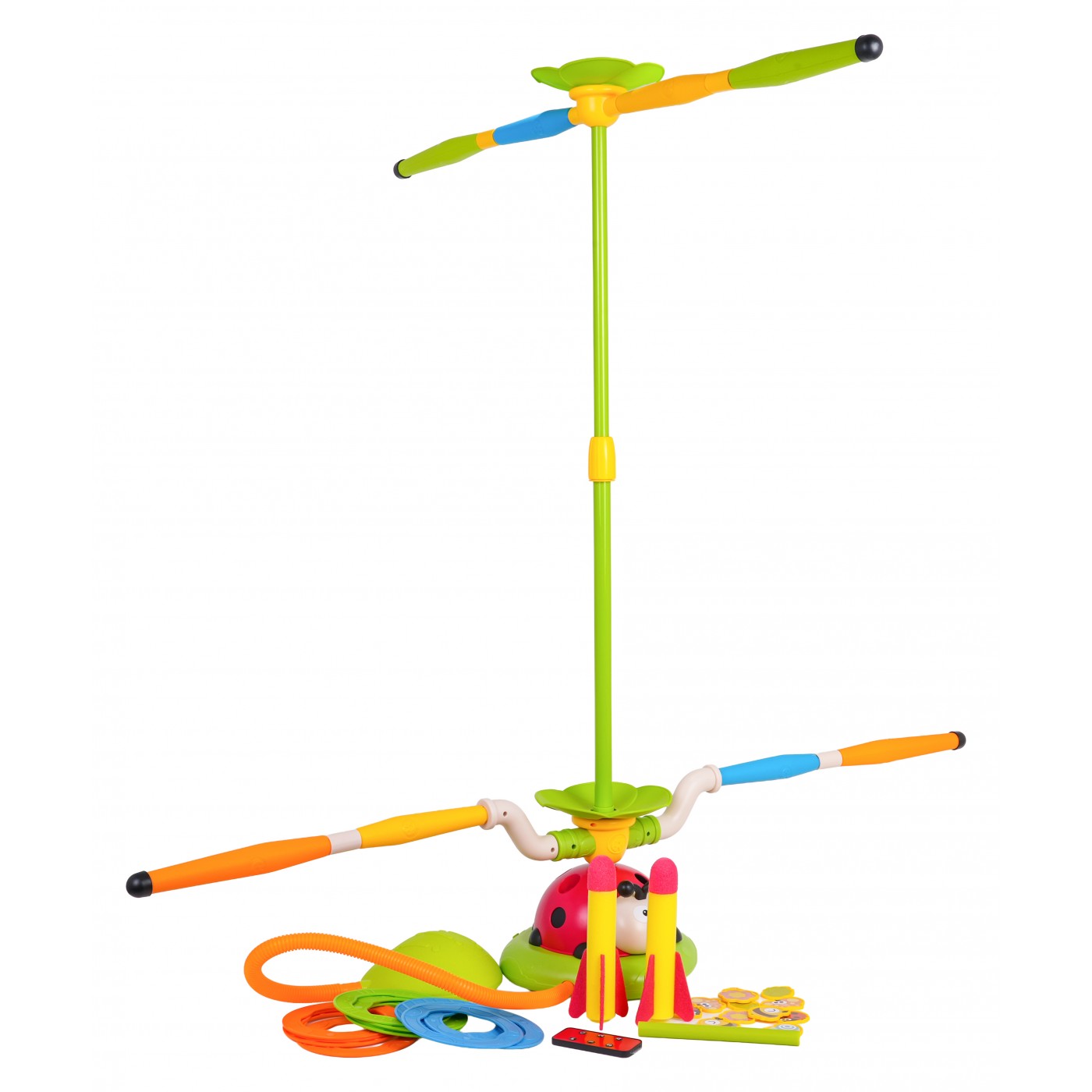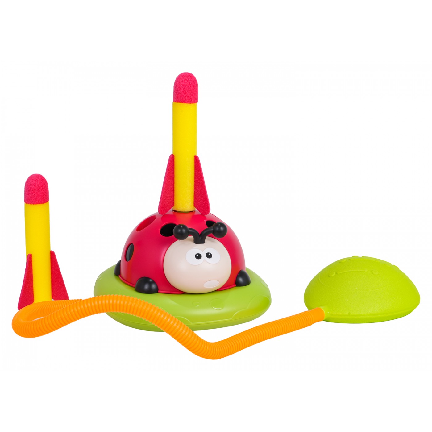 2. Raketa vystrelená do vzduchu Hra spočíva v odpálení rakety umiestnenej v strede lienky pomocou pumpy. Deti skáču na pumpu a raketa sa tak vynára vysoko do vzduchu.