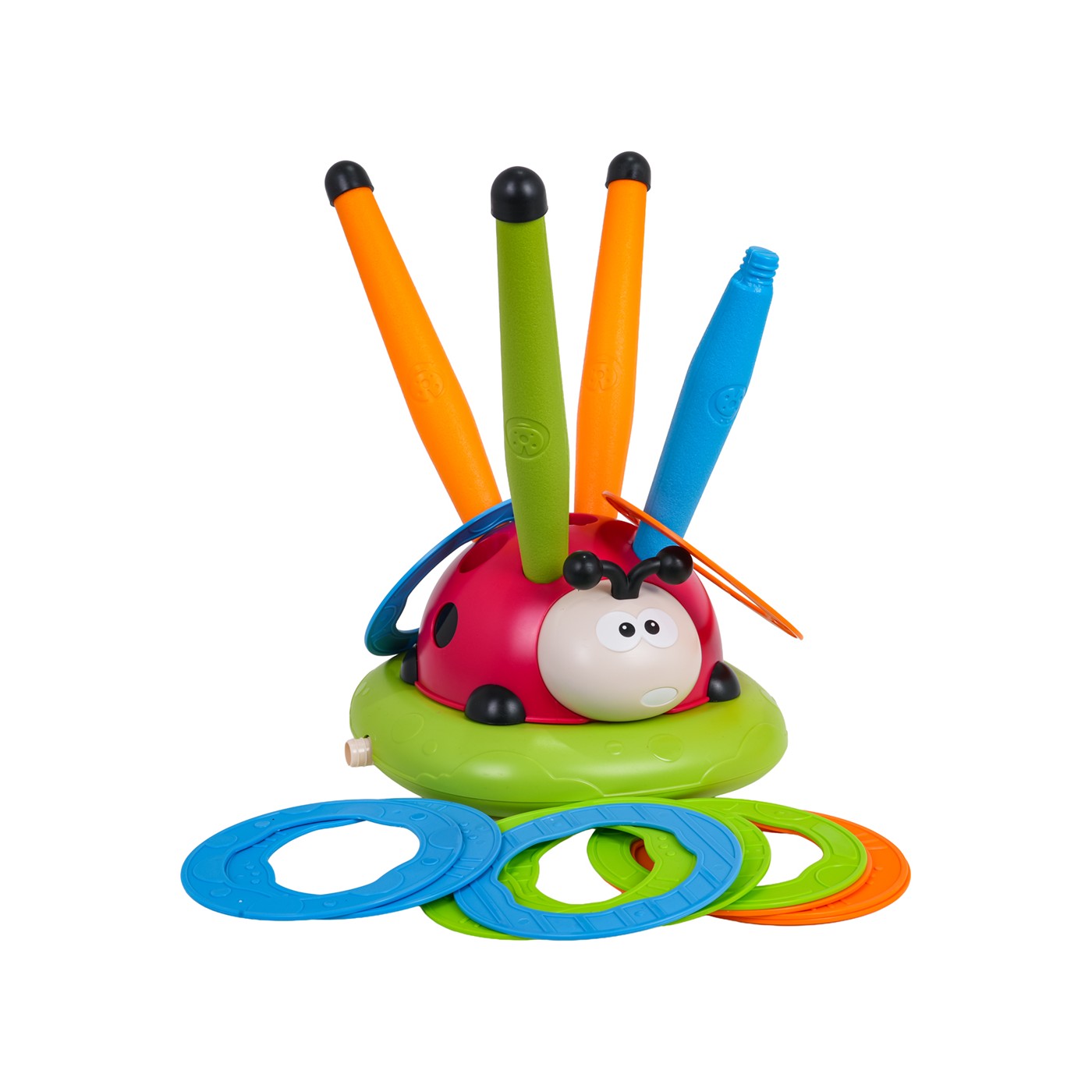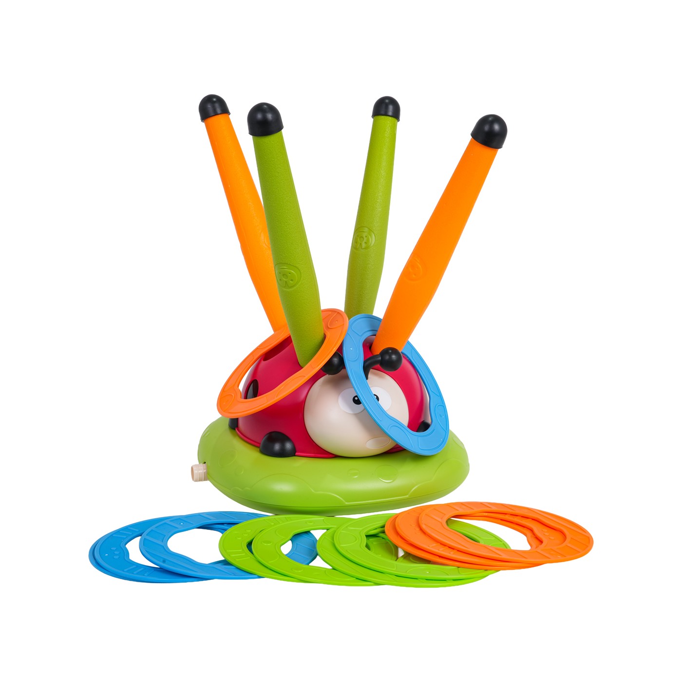 Sada 5 arkádových hier v 1 pre deti od troch rokov. Táto všestranná hračka je vyrobená z vysoko kvalitného plastu so žiarivými farbami a ponúka päť hier: automaticky sa otáčajúce švihadlo s tromi úrovňami obtiažnosti, raketomet, hru s hádzaním na cieľ a hru s rotujúcimi prekážkami s tromi úrovňami obtiažnosti. Táto hračka je ideálna na aktívne hranie vonku. Lienka je napájaná 4 batériami typu AA 1,5 V (nie sú súčasťou balenia), zatiaľ čo diaľkové ovládanie je napájané 1 batériou CR2025 (súčasťou balenia).